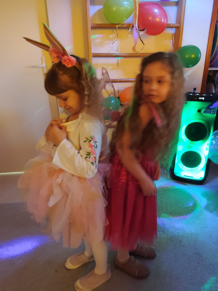 Nie zabrakło wspólnych tańców i zabaw przy muzyce, które wywołały mnóstwo uśmiechów i pozytywnej energii. W trakcie balu dzieci mogły również skosztować małego, słodkiego poczęstunku, który dodał sił do dalszej zabawy.