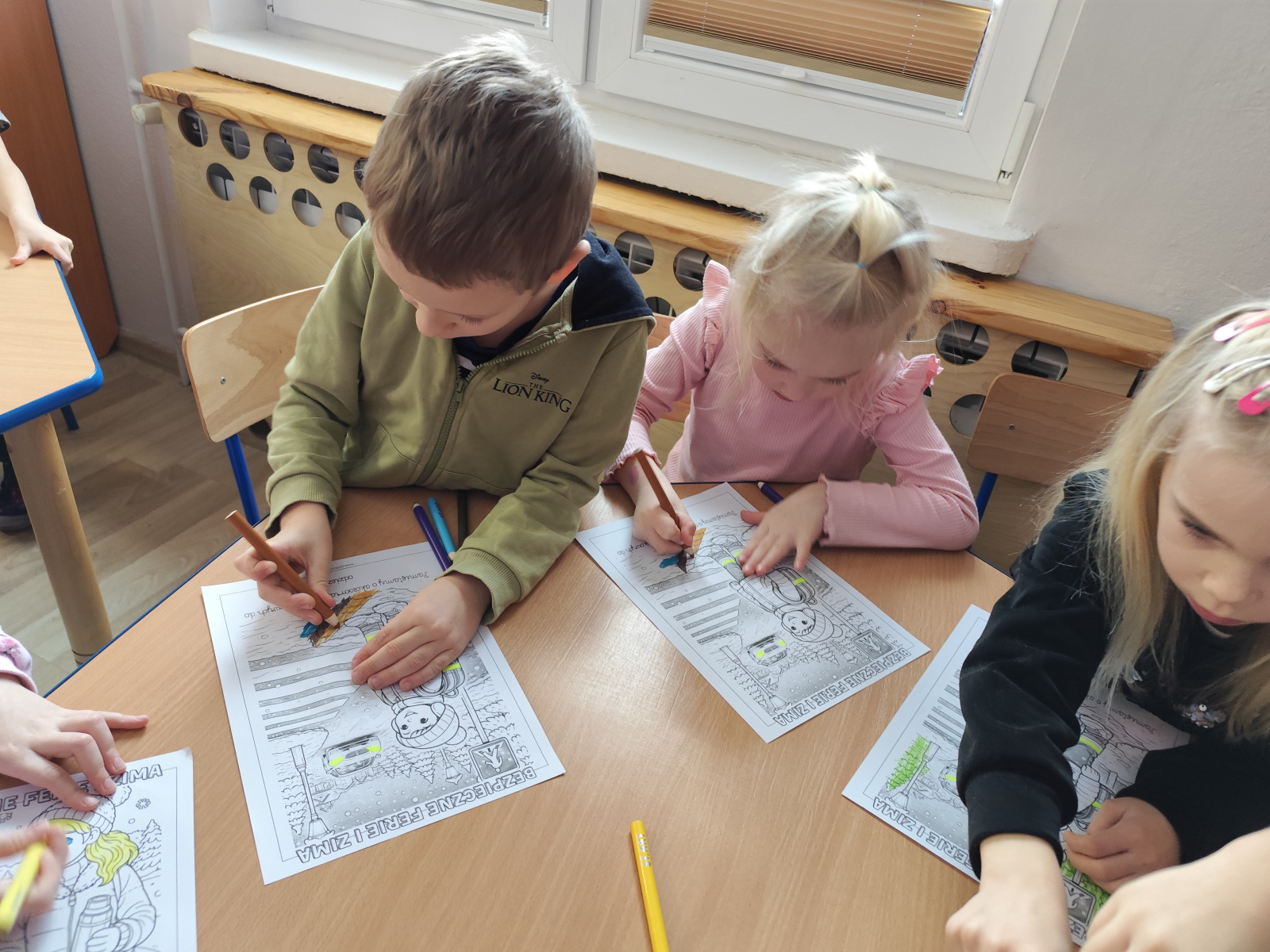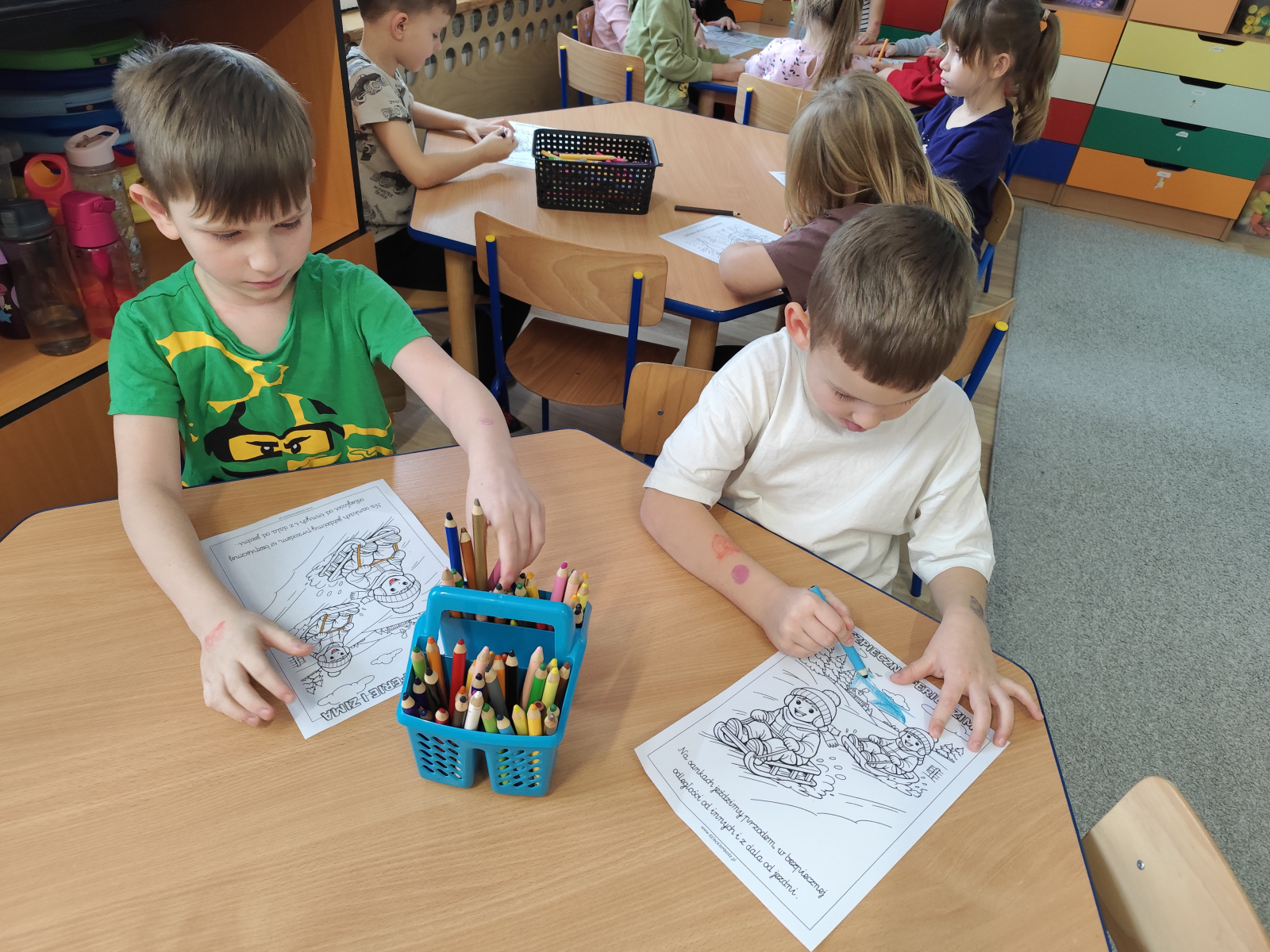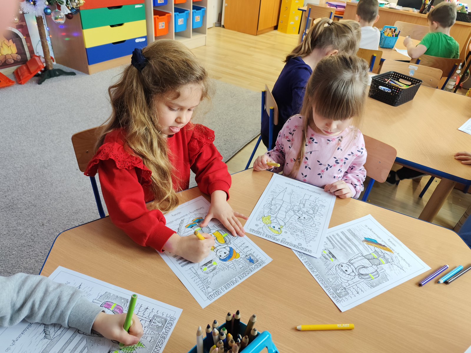 Podczas zajęć rozmawialiśmy m.in. o bezpiecznych zabawach na śniegu i lodzie, właściwym ubiorze, zasadach poruszania się w pobliżu dróg oraz konieczności słuchania dorosłych. Mamy nadzieję, że zdobyta wiedza pomoże naszym przedszkolakom spędzić ferie radośnie i bezpiecznie.