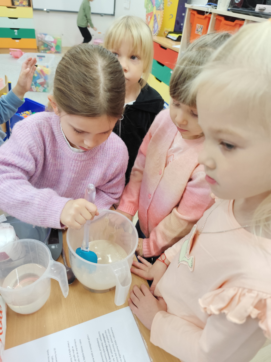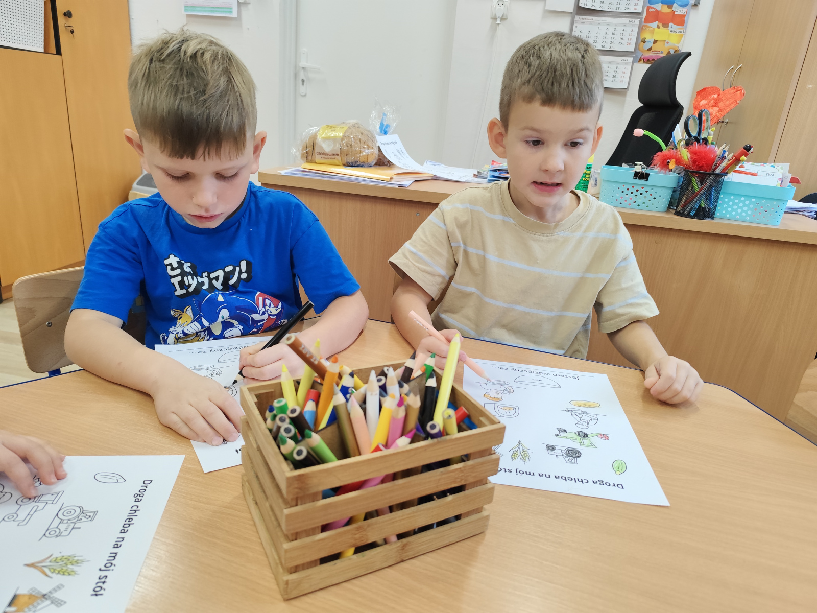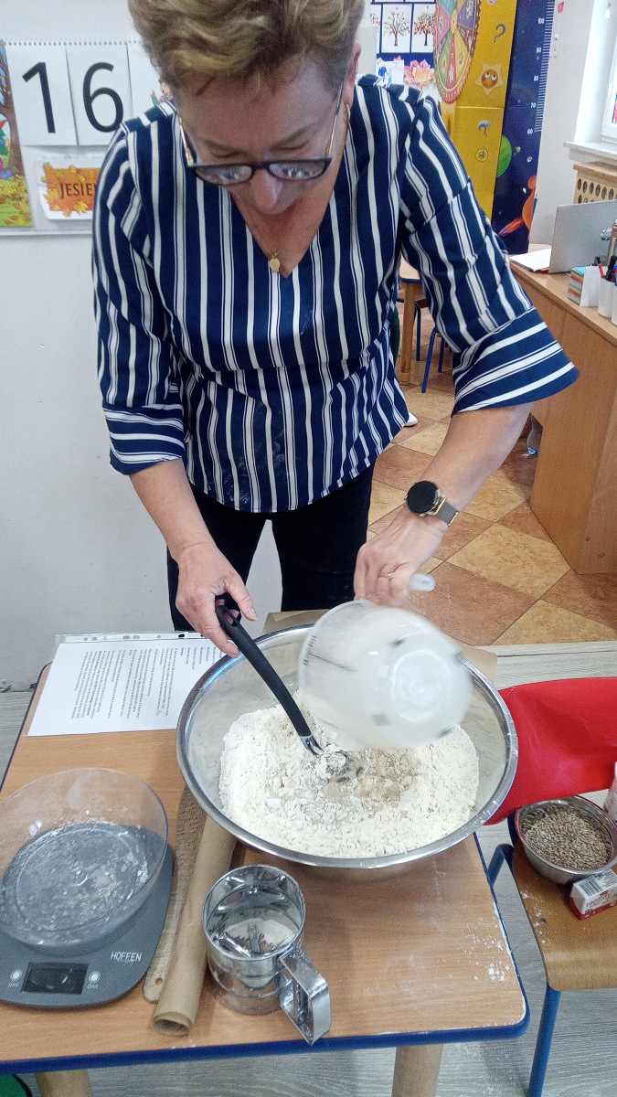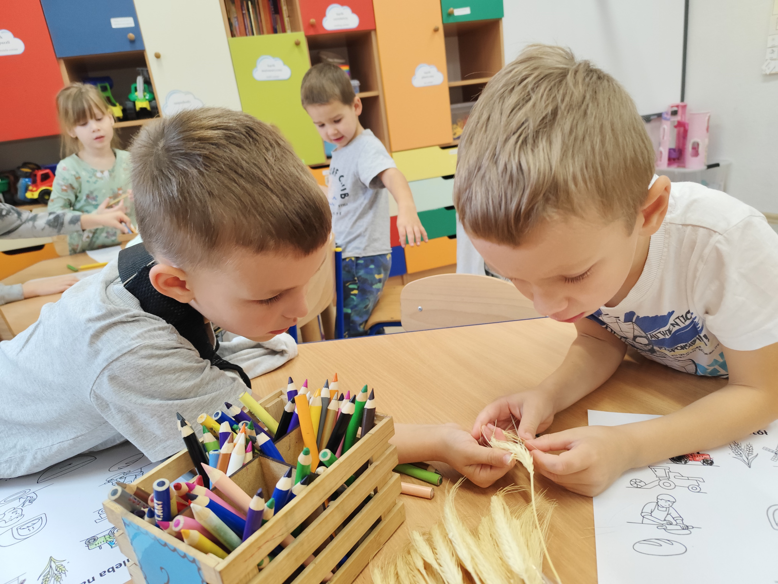 16 października w naszym przedszkolu zapachniało… chlebem! Z okazji Dnia Chleba rozmawialiśmy o tym, skąd pochodzi chleb, jak powstaje i dlaczego warto go szanować. Dzieci z wielkim zaangażowaniem oglądały różne rodzaje pieczywa, poznawały składniki potrzebne do wypieku oraz… same zamieniły się w małych piekarzy! Było wyrabianie ciasta, formowanie chleba i dużo radości! Nie zabrakło też wspólnej degustacji świeżo upieczonego chleba — smakował wyjątkowo, bo przygotowany własnoręcznie i z sercem. To był piękny, pachnący dzień pełen nauki i wspólnego świętowania.