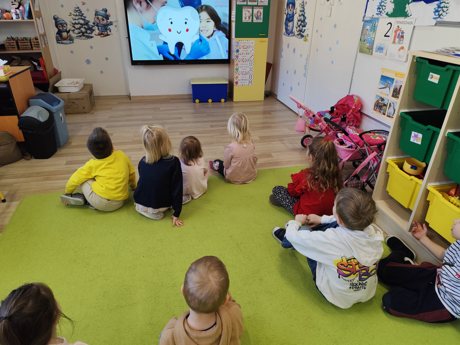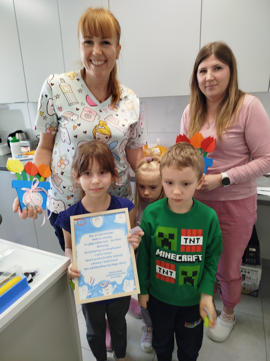 Z okazji Dnia Dentysty dzieci miały okazję bliżej poznać ten bardzo ważny zawód. Dowiedziały się, na czym polega praca dentysty oraz dlaczego tak ważne jest dbanie o zdrowie naszych ząbków. Podczas zajęć przedszkolaki uczyły się, jak prawidłowo myć zęby, co pomaga utrzymać je w dobrej kondycji oraz czego lepiej unikać, aby uśmiech był zdrowy i piękny. To była bardzo ciekawa i pouczająca lekcja, dzięki której dzieci wiedzą już, jak dbać o swoje ząbki każdego dnia!