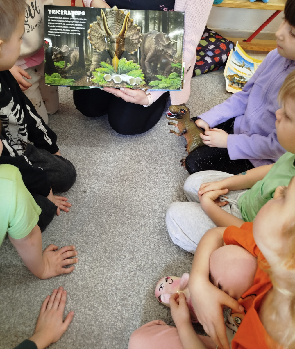 Dzieci z ogromnym entuzjazmem świętowały Dzień Dinozaura, bawiąc się wspólnie przy muzyce i naśladując ruchy swoich ulubionych dinozaurów – były groźne miny, donośne ryki i ciężkie, „dinozaurowe” kroki 🦕🎶.Nasi mali odkrywcy wcielili się również w rolę paleontologów – z wielkim zaangażowaniem poszukiwali „skamieniałości” i odkrywali prehistoryczne znaleziska 🦴🔎Nie zabrakło zabawy zmysłoplastycznej – dzieci z ciekawością „wykluwały” dinozaury z jaj, ćwicząc przy tym małą motorykę i rozwijając swoje zmysły 🥚🦖Z wielkim zainteresowaniem oglądały także książeczki o dinozaurach w 3D, które pozwoliły im jeszcze lepiej poznać świat prehistorycznych stworzeń 📚✨Powstały również piękne plakaty „Świat dinozaurów”, pełne kolorowych, niezwykłych okazów 🖍️🎨 A na koniec przedszkolaki układały dinozaurowe puzzle z obrazka, ćwicząc spostrzegawczość i współpracę 🧩🦕To był dzień pełen radości, śmiechu i fascynujących odkryć! 🌟Dziękujemy naszym małym badaczom za wspólną podróż do świata dinozaurów! 🦕💚