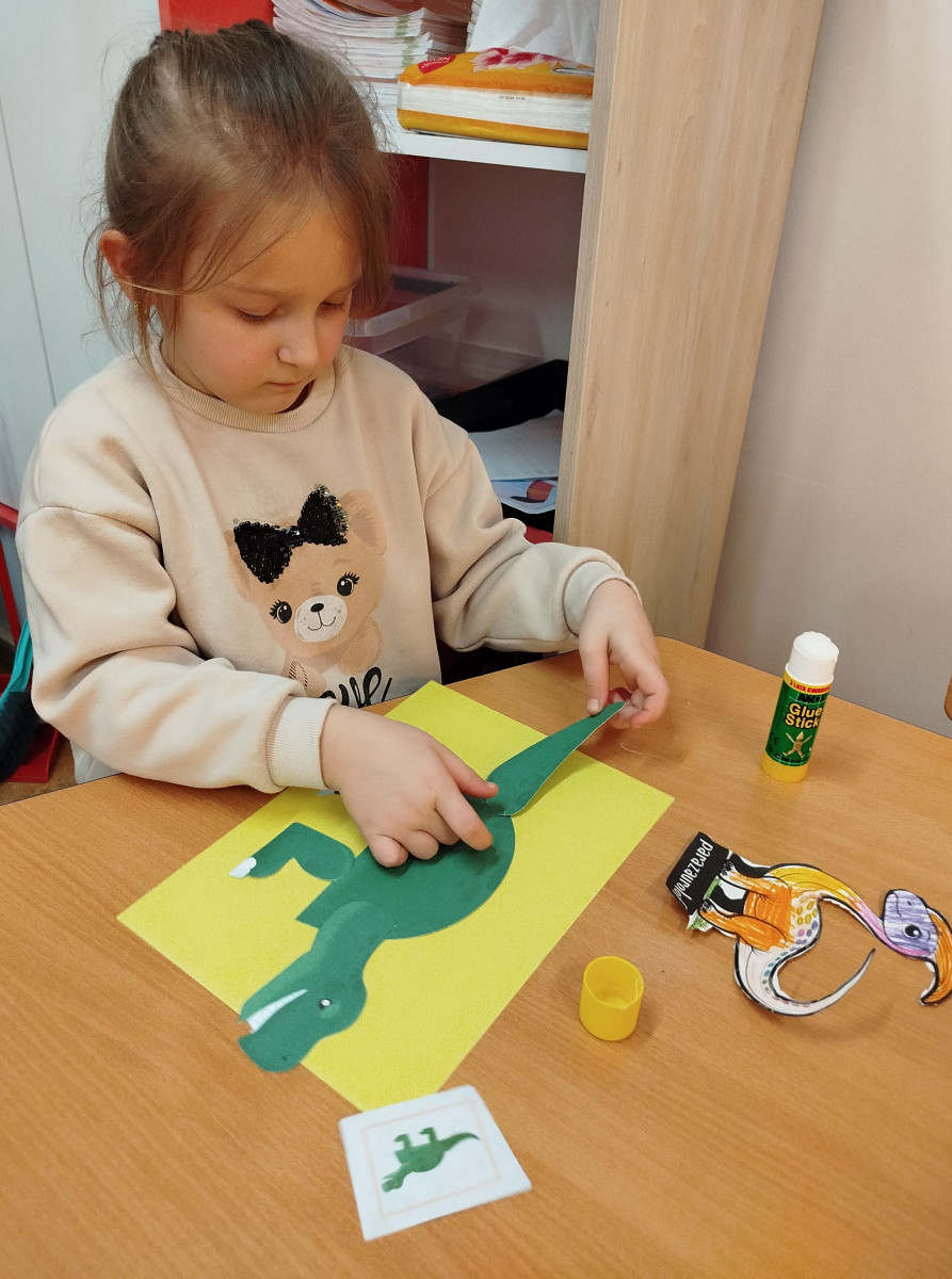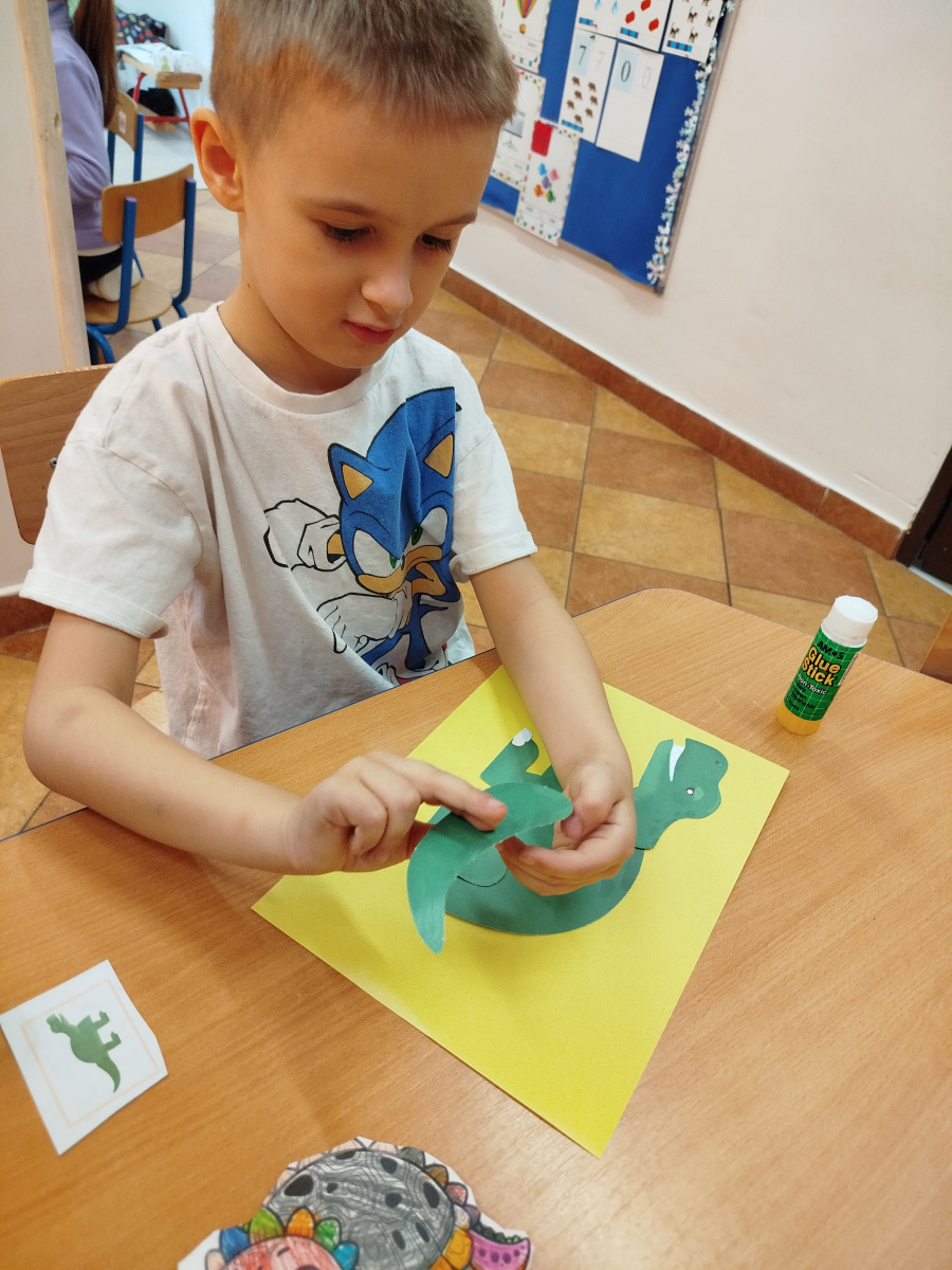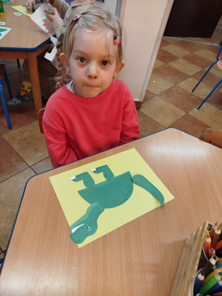 Dzieci z ogromnym entuzjazmem świętowały Dzień Dinozaura, bawiąc się wspólnie przy muzyce i naśladując ruchy swoich ulubionych dinozaurów – były groźne miny, donośne ryki i ciężkie, „dinozaurowe” kroki 🦕🎶.Nasi mali odkrywcy wcielili się również w rolę paleontologów – z wielkim zaangażowaniem poszukiwali „skamieniałości” i odkrywali prehistoryczne znaleziska 🦴🔎Nie zabrakło zabawy zmysłoplastycznej – dzieci z ciekawością „wykluwały” dinozaury z jaj, ćwicząc przy tym małą motorykę i rozwijając swoje zmysły 🥚🦖Z wielkim zainteresowaniem oglądały także książeczki o dinozaurach w 3D, które pozwoliły im jeszcze lepiej poznać świat prehistorycznych stworzeń 📚✨Powstały również piękne plakaty „Świat dinozaurów”, pełne kolorowych, niezwykłych okazów 🖍️🎨 A na koniec przedszkolaki układały dinozaurowe puzzle z obrazka, ćwicząc spostrzegawczość i współpracę 🧩🦕To był dzień pełen radości, śmiechu i fascynujących odkryć! 🌟Dziękujemy naszym małym badaczom za wspólną podróż do świata dinozaurów! 🦕💚