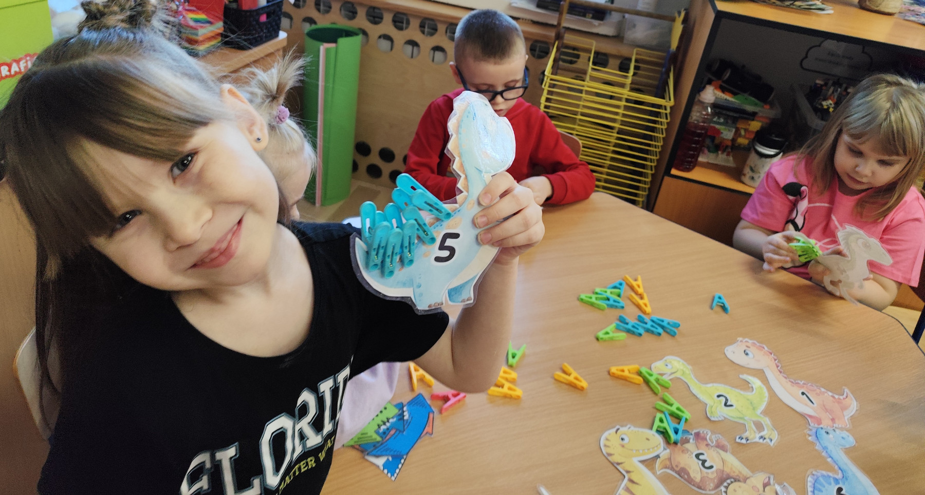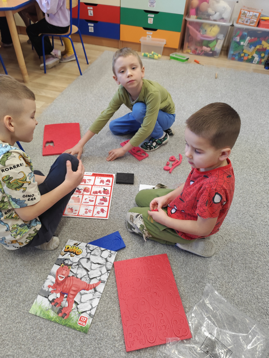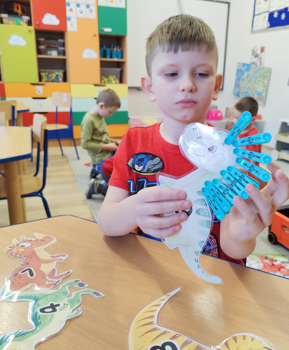Dzieci z ogromnym entuzjazmem świętowały Dzień Dinozaura, bawiąc się wspólnie przy muzyce i naśladując ruchy swoich ulubionych dinozaurów – były groźne miny, donośne ryki i ciężkie, „dinozaurowe” kroki 🦕🎶.Nasi mali odkrywcy wcielili się również w rolę paleontologów – z wielkim zaangażowaniem poszukiwali „skamieniałości” i odkrywali prehistoryczne znaleziska 🦴🔎Nie zabrakło zabawy zmysłoplastycznej – dzieci z ciekawością „wykluwały” dinozaury z jaj, ćwicząc przy tym małą motorykę i rozwijając swoje zmysły 🥚🦖Z wielkim zainteresowaniem oglądały także książeczki o dinozaurach w 3D, które pozwoliły im jeszcze lepiej poznać świat prehistorycznych stworzeń 📚✨Powstały również piękne plakaty „Świat dinozaurów”, pełne kolorowych, niezwykłych okazów 🖍️🎨 A na koniec przedszkolaki układały dinozaurowe puzzle z obrazka, ćwicząc spostrzegawczość i współpracę 🧩🦕To był dzień pełen radości, śmiechu i fascynujących odkryć! 🌟Dziękujemy naszym małym badaczom za wspólną podróż do świata dinozaurów! 🦕💚