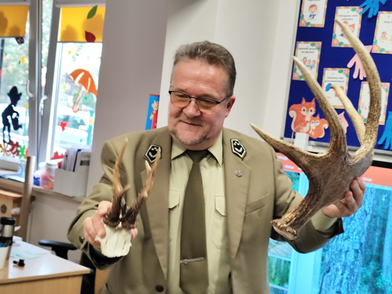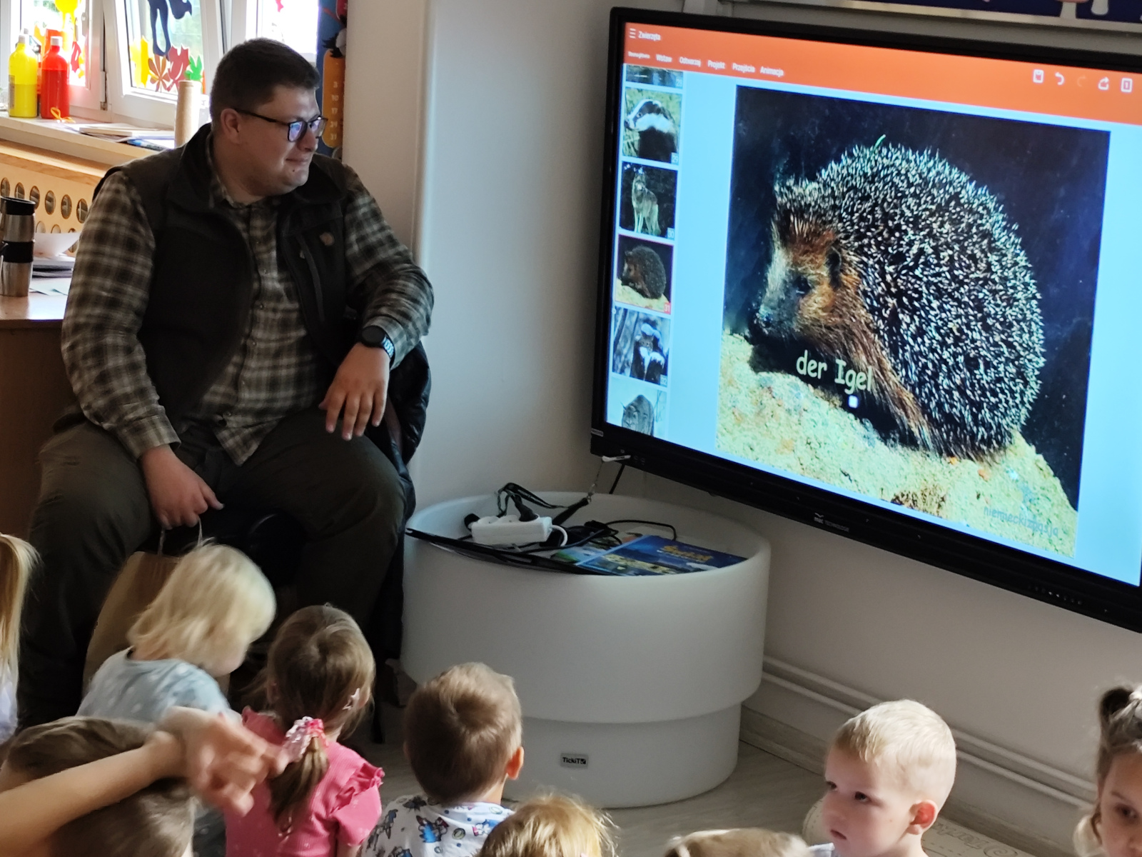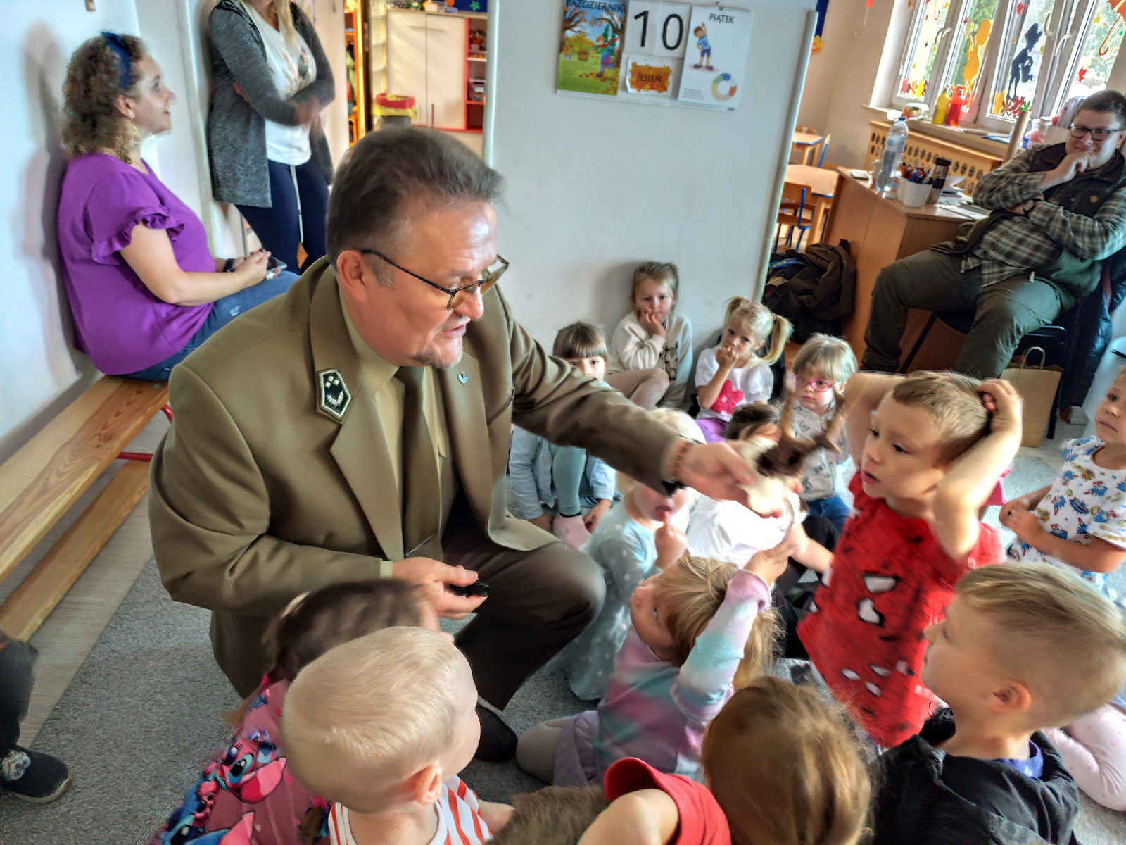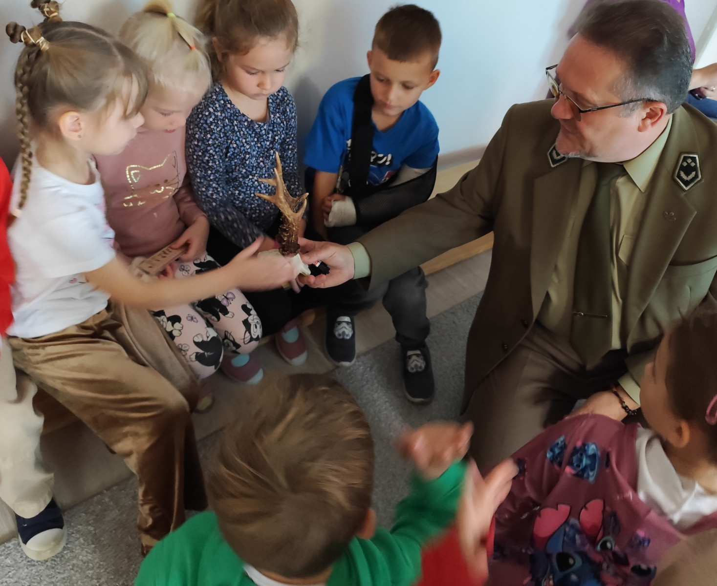 10 października nasze przedszkolaki miały wyjątkowych gości – odwiedzili nas panowie Ryszard Stańczyk oraz Paweł Rutkowski leśniczy! W ramach obchodów Dnia Drzewa dzieci dowiedziały się, jak ważną rolę pełnią drzewa w przyrodzie, jak o nie dbać i dlaczego warto je chronić. Leśniczy opowiedział o swojej pracy, pokazał ciekawe eksponaty z lasu Nie zabrakło też zagadek przyrodniczych, które wywołały mnóstwo radości i śmiechu! Dziękujemy naszym gościom za fascynujące spotkanie i już nie możemy się doczekać kolejnych leśnych przygód!
