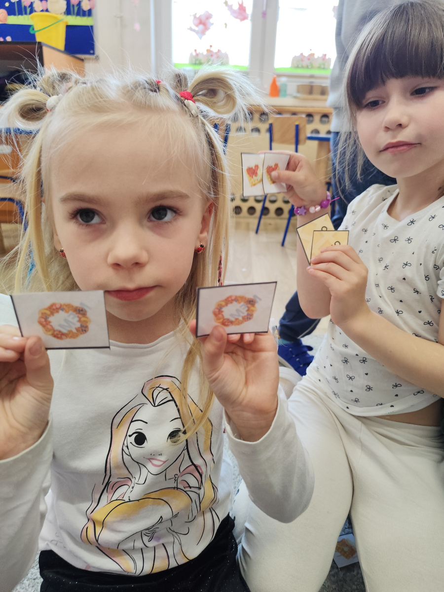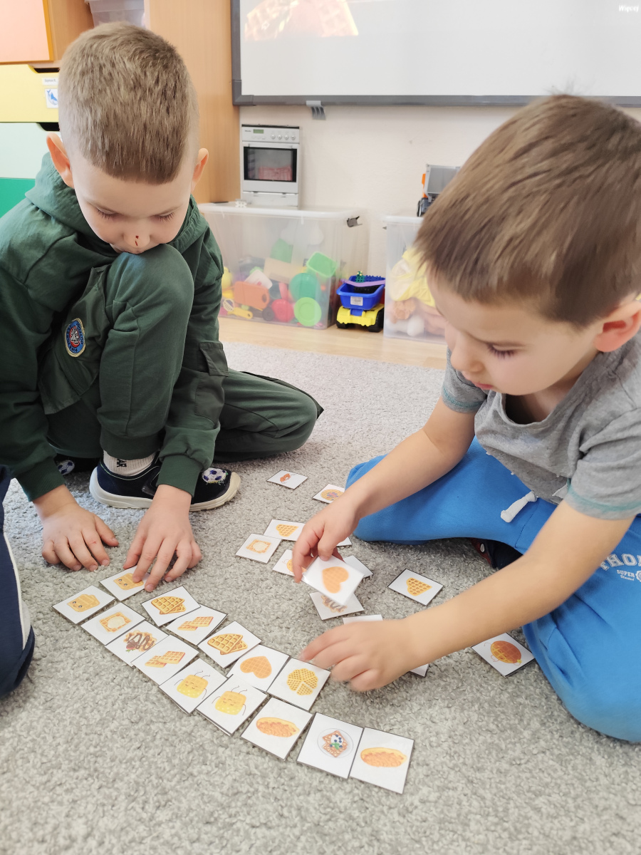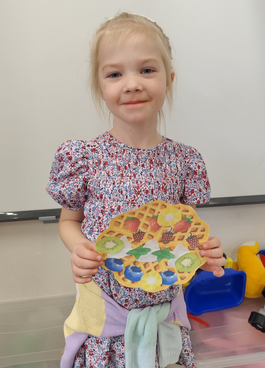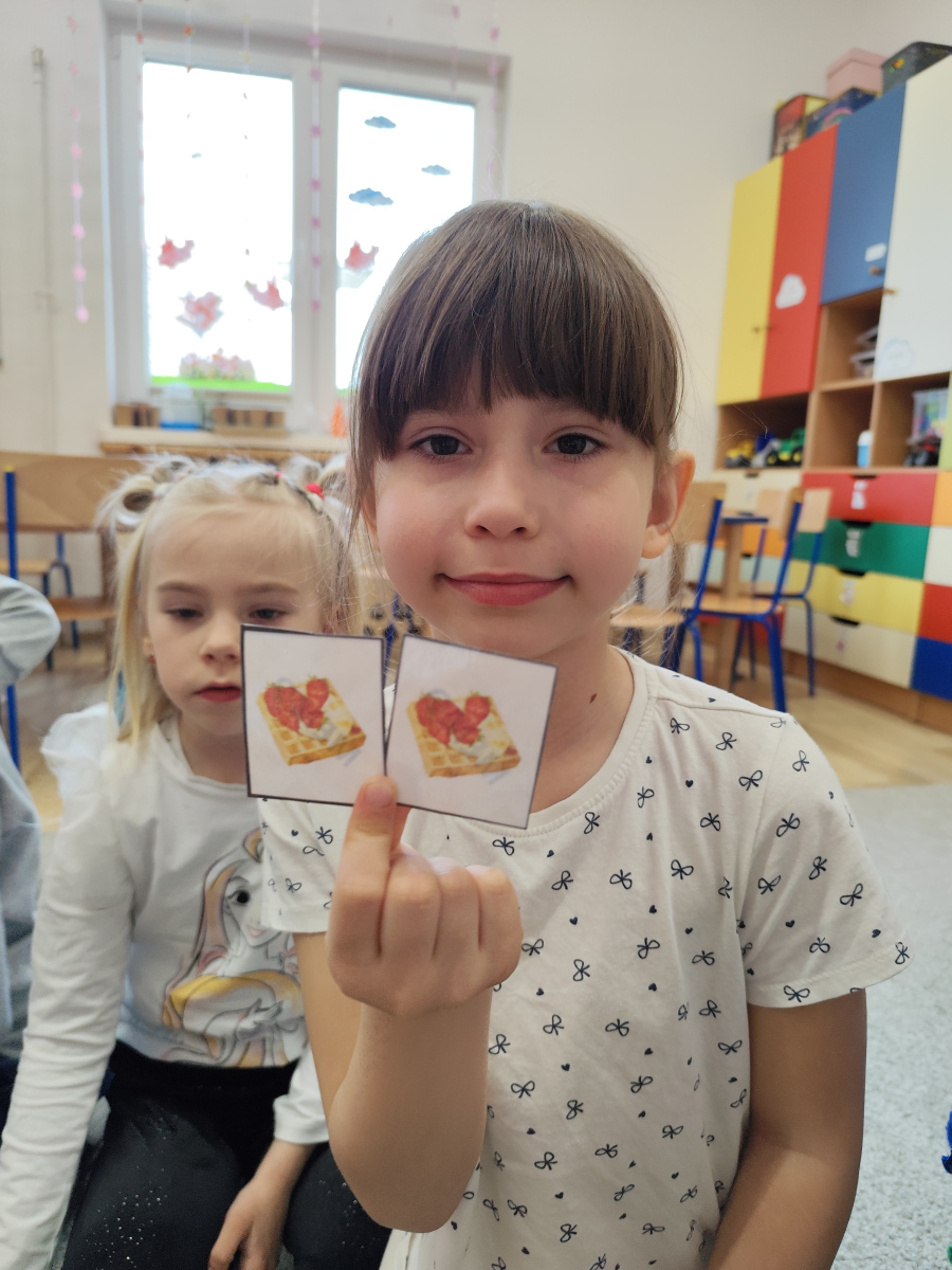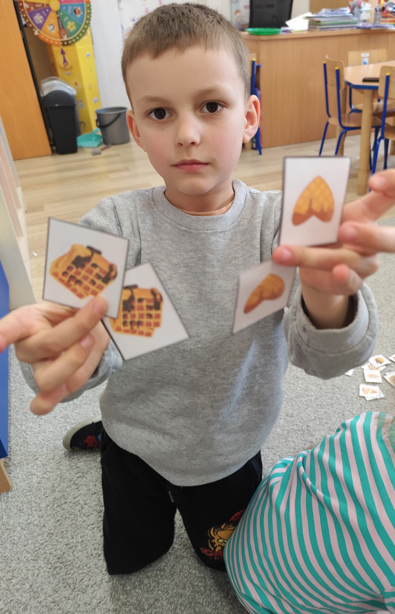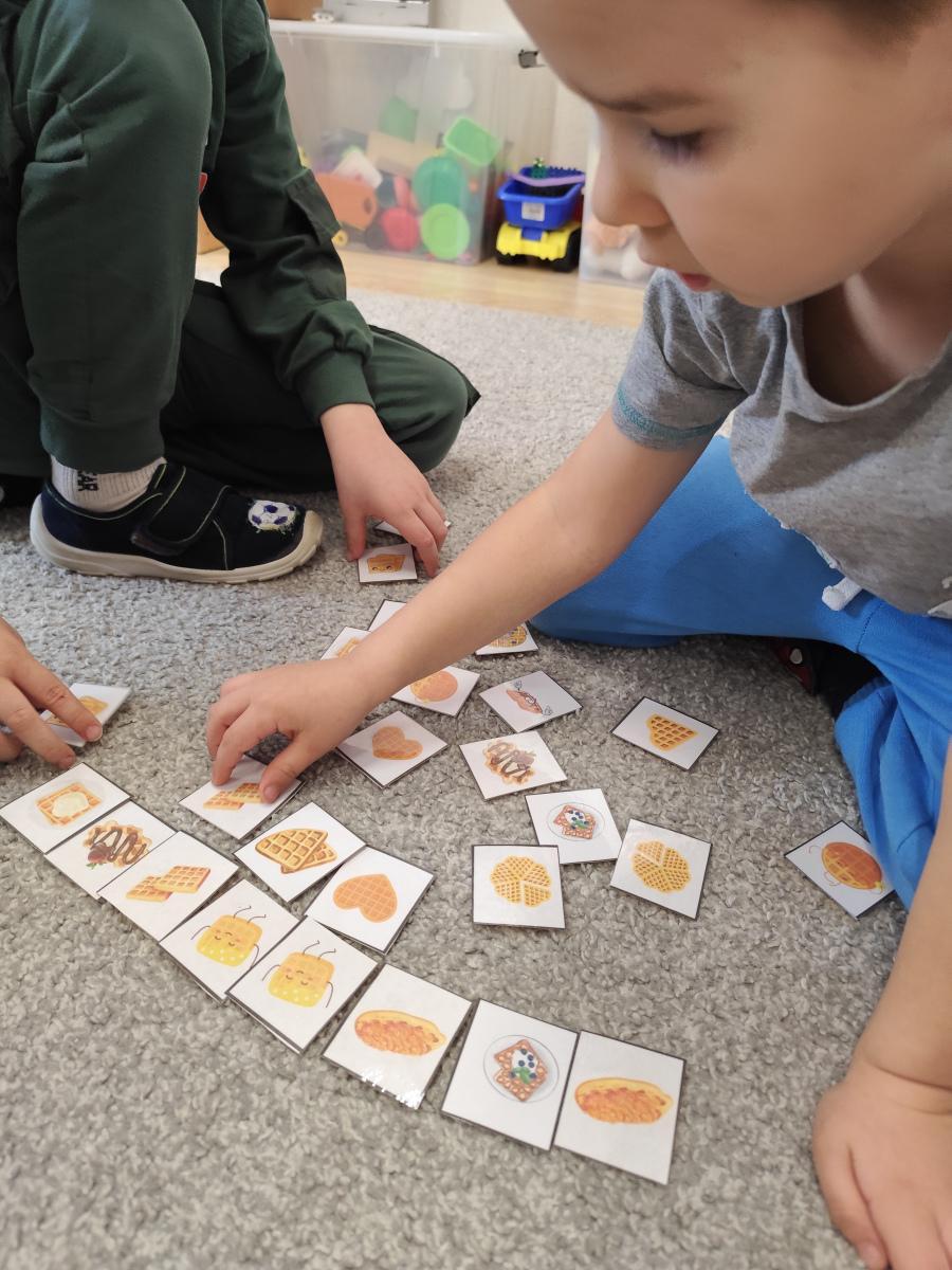 Przedszkolaki: poznawały składniki potrzebne do przygotowania gofra, bawiły się w gofrowe memory, liczyły gofry, tworzyły własne prace plastyczne o gofrowej tematyce, a także grały w zabawę „Ja mam, kto ma?” i na koniec próbowały gofry z dżemem i cukrem pudrem. 😋Było mnóstwo śmiechu, radości i kreatywnej zabawy – dzieci uczyły się przez doświadczenie i zabawę! 💛