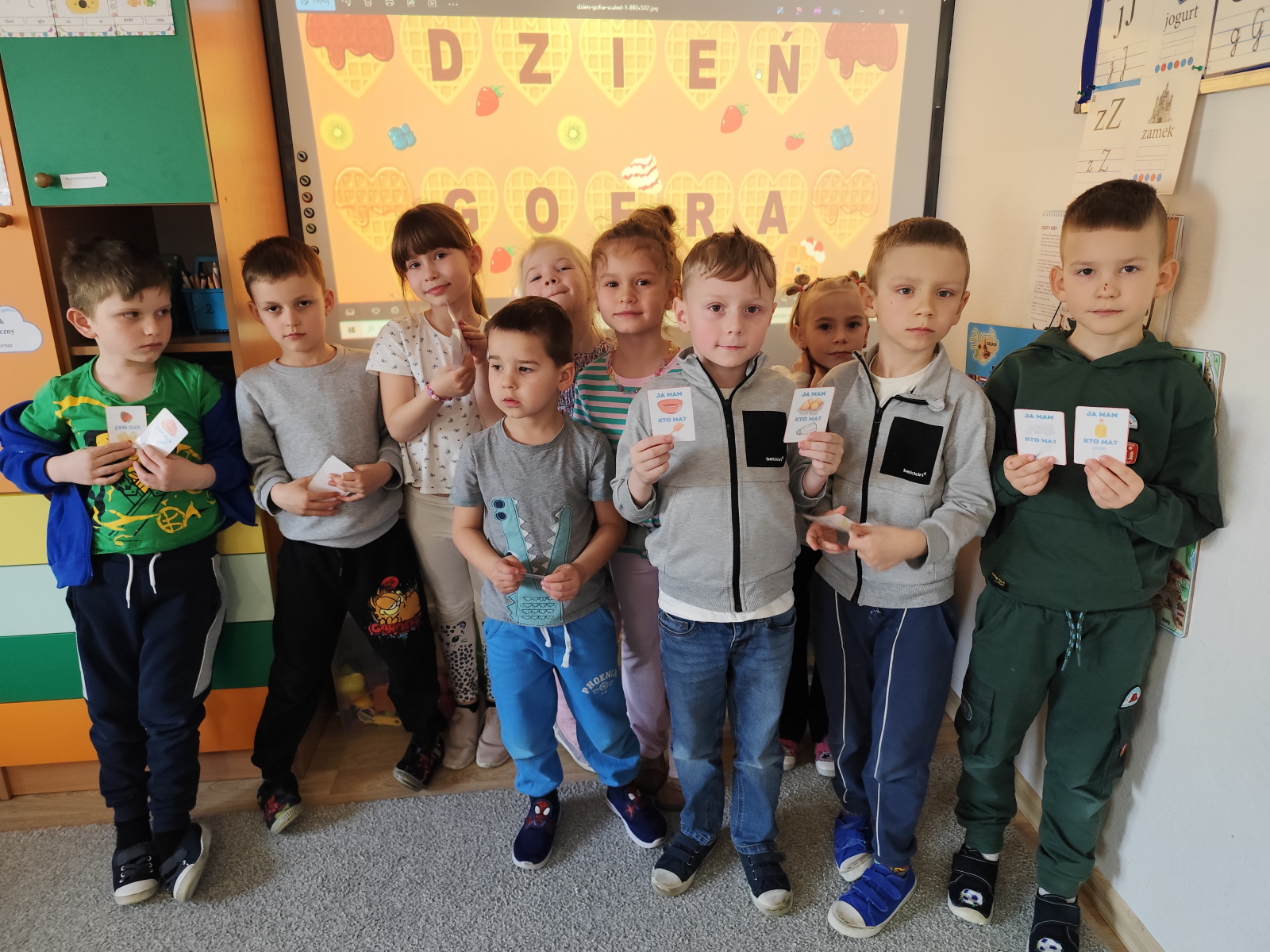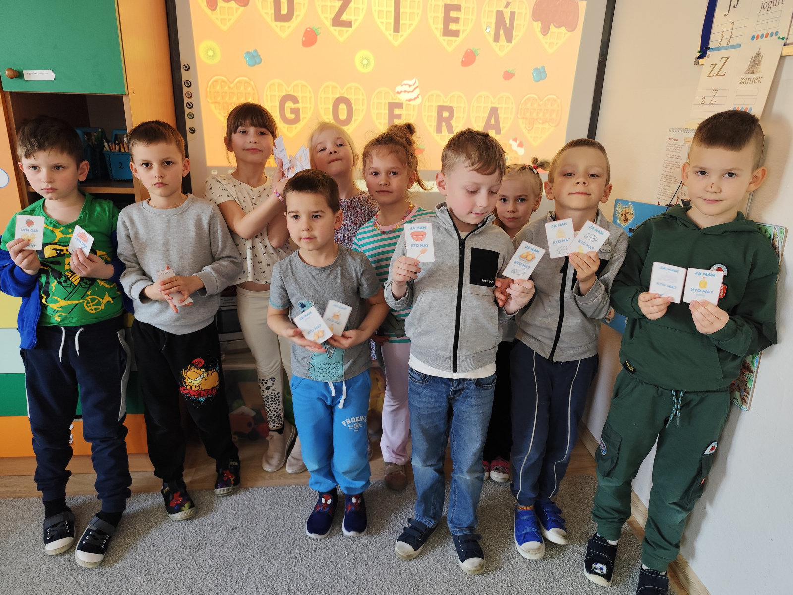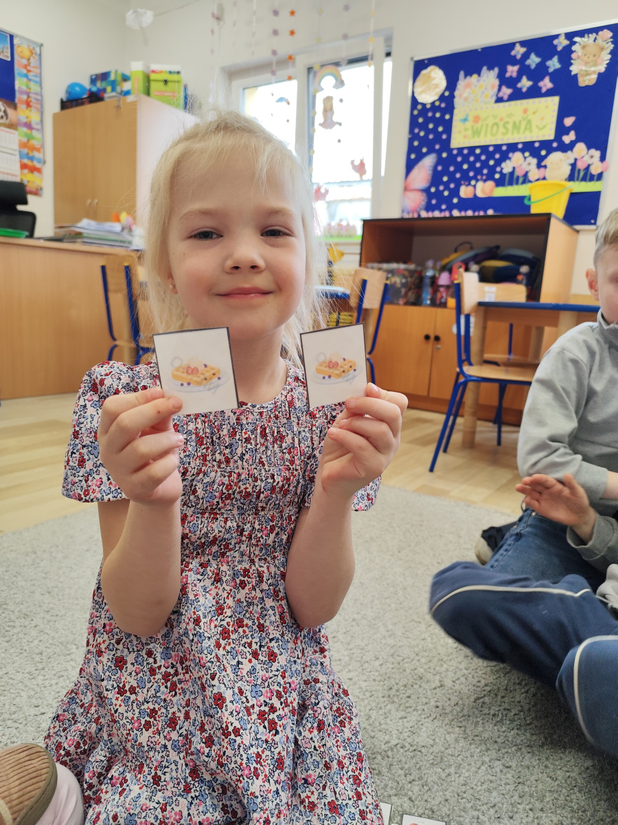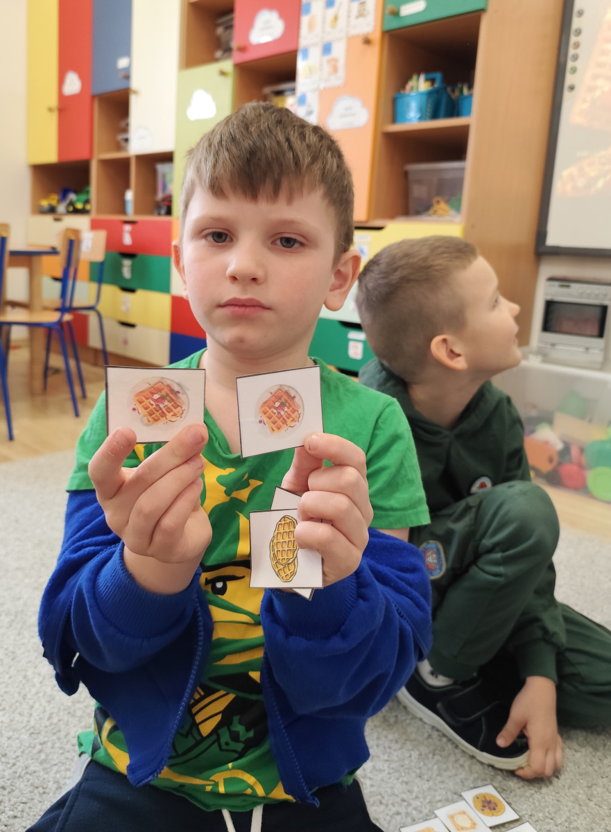 Przedszkolaki: poznawały składniki potrzebne do przygotowania gofra, bawiły się w gofrowe memory, liczyły gofry, tworzyły własne prace plastyczne o gofrowej tematyce, a także grały w zabawę „Ja mam, kto ma?” i na koniec próbowały gofry z dżemem i cukrem pudrem. 😋Było mnóstwo śmiechu, radości i kreatywnej zabawy – dzieci uczyły się przez doświadczenie i zabawę! 💛