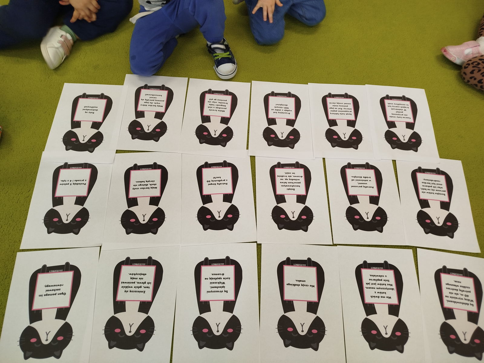 17 lutego w naszym przedszkolu obchodziliśmy nietypowe święto – „Dzień Kota”. Zajęcia zostały zorganizowane w celu przekazania dzieciom informacji na temat prawidłowej opieki nad zwierzętami, wyrabiania szacunku dla zwierząt, uwrażliwienia i zwrócenia uwagi na los porzuconych i bezdomnych zwierząt. W tym dniu wszystkie przedszkolaki wcielały się w swoich ulubieńców i brały udział w „kocich zabawach”. Tańczyły przy piosenkach o kotach, rozwiązywały zagadki, wykonywały kocie zabawy ruchowe. Dzieci poznały różne rasy kotów. Zapoznały się z kocimi obyczajami. Poznały sposoby pielęgnacji kotów oraz ciekawostki na ich temat. Dowiedziały się, jakie koty występują w bajkach i książkach. Wykonały prace plastyczne, maski oraz opaski.