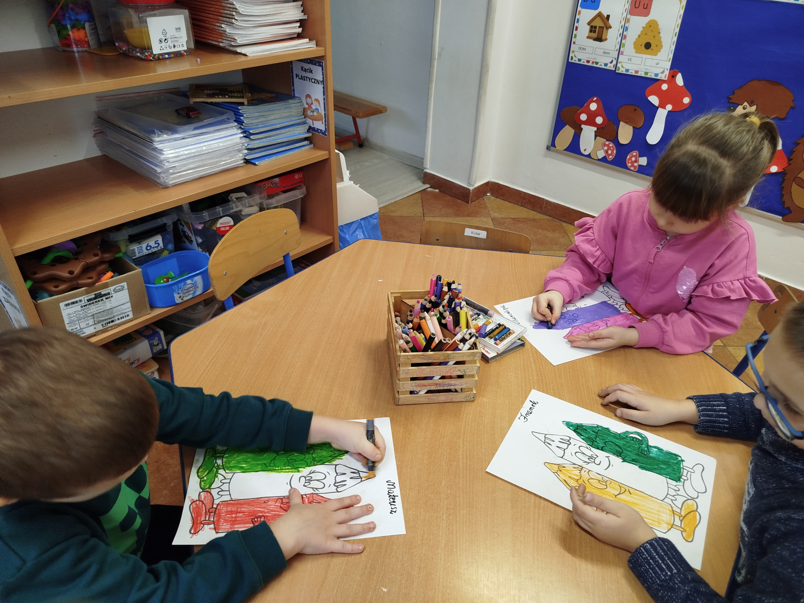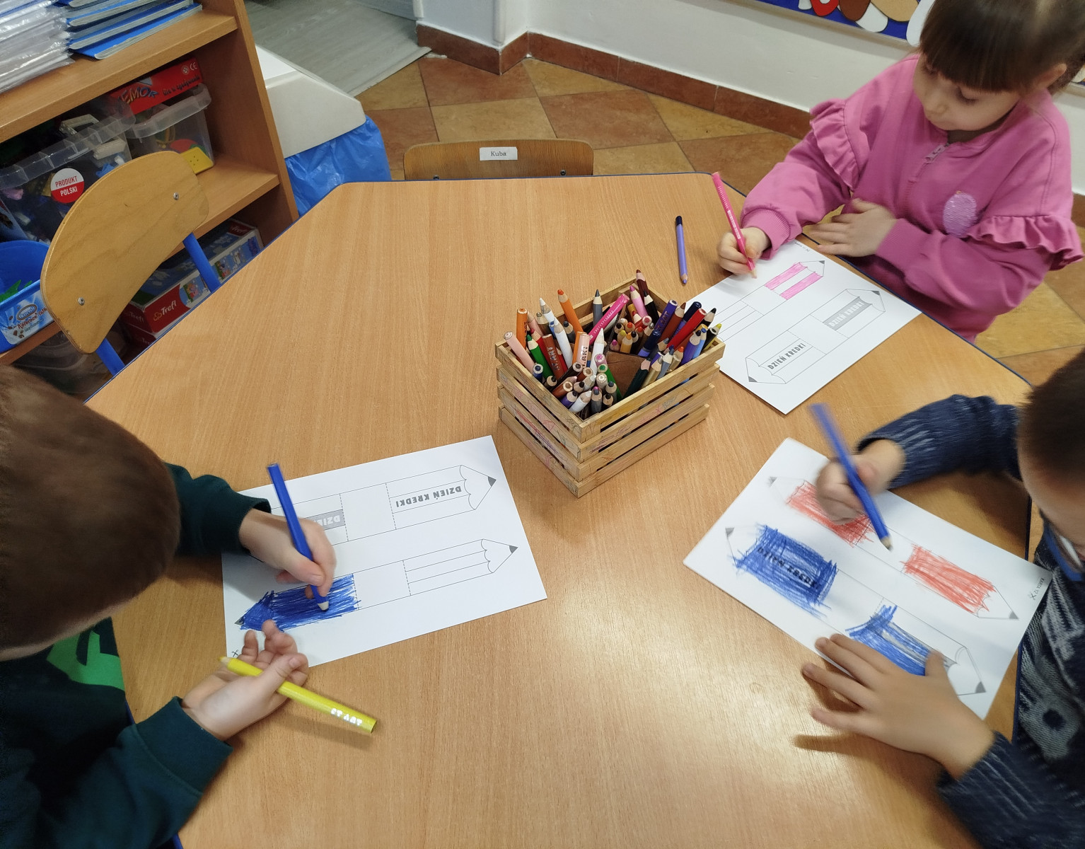 21 listopada z okazji Dnia Kredki w naszym przedszkolu przygotowaliśmy dla dzieci wiele inspirujących aktywności, które pozwoliły im odkrywać świat barw oraz wyrażać siebie poprzez sztukę. Już od rana w salach unosiła się atmosfera twórczego podekscytowania. Dzieci miały okazję poznać różne rodzaje kredek – od klasycznych ołówkowych, przez pastele, aż po grube kredki idealne dla najmłodszych. Rozmawialiśmy o tym, jak powstają kolory, co możemy dzięki nim wyrazić i dlaczego warto rozwijać swoją wyobraźnię.