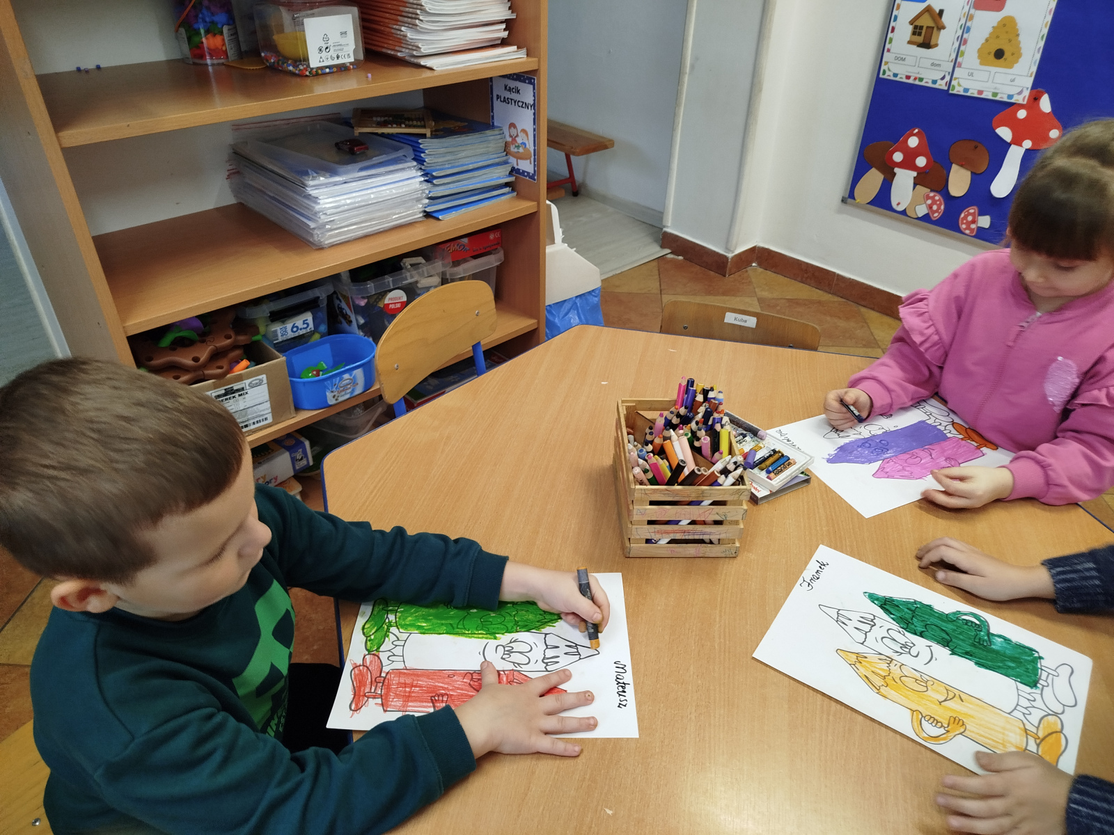 W programie znalazły się m.in.: zajęcia plastyczne, podczas których każdy stworzył swoją własną, kolorową pracę, zabawy z kolorami i łączeniem barw, ćwiczenia rozwijające motorykę małą i sprawność dłoni. Dzieci nie tylko świetnie się bawiły, ale także uczyły się współpracy, cierpliwości i dokładności. Z wielkim zaangażowaniem pracowały nad swoimi dziełami, a efekty ich pracy były naprawdę imponujące! Cały dzień minął nam w niezwykle radosnej atmosferze. Dziękujemy naszym małym artystom za fantastyczne pomysły i piękne prace, które pokazały, jak ogromny potencjał kreatywny drzemie w każdym z nich.