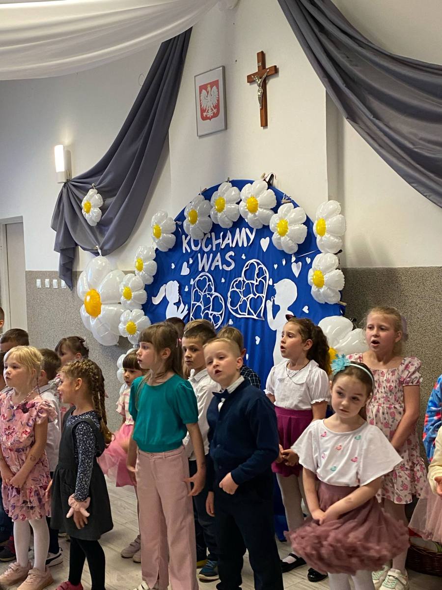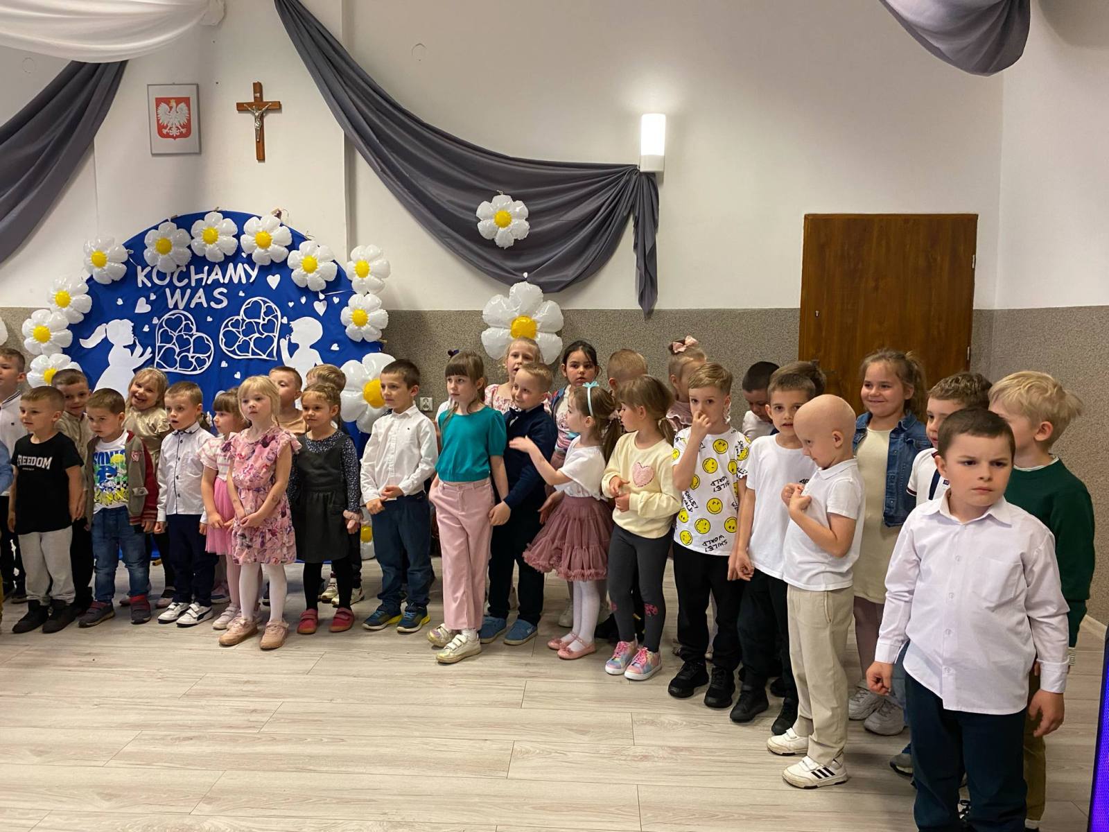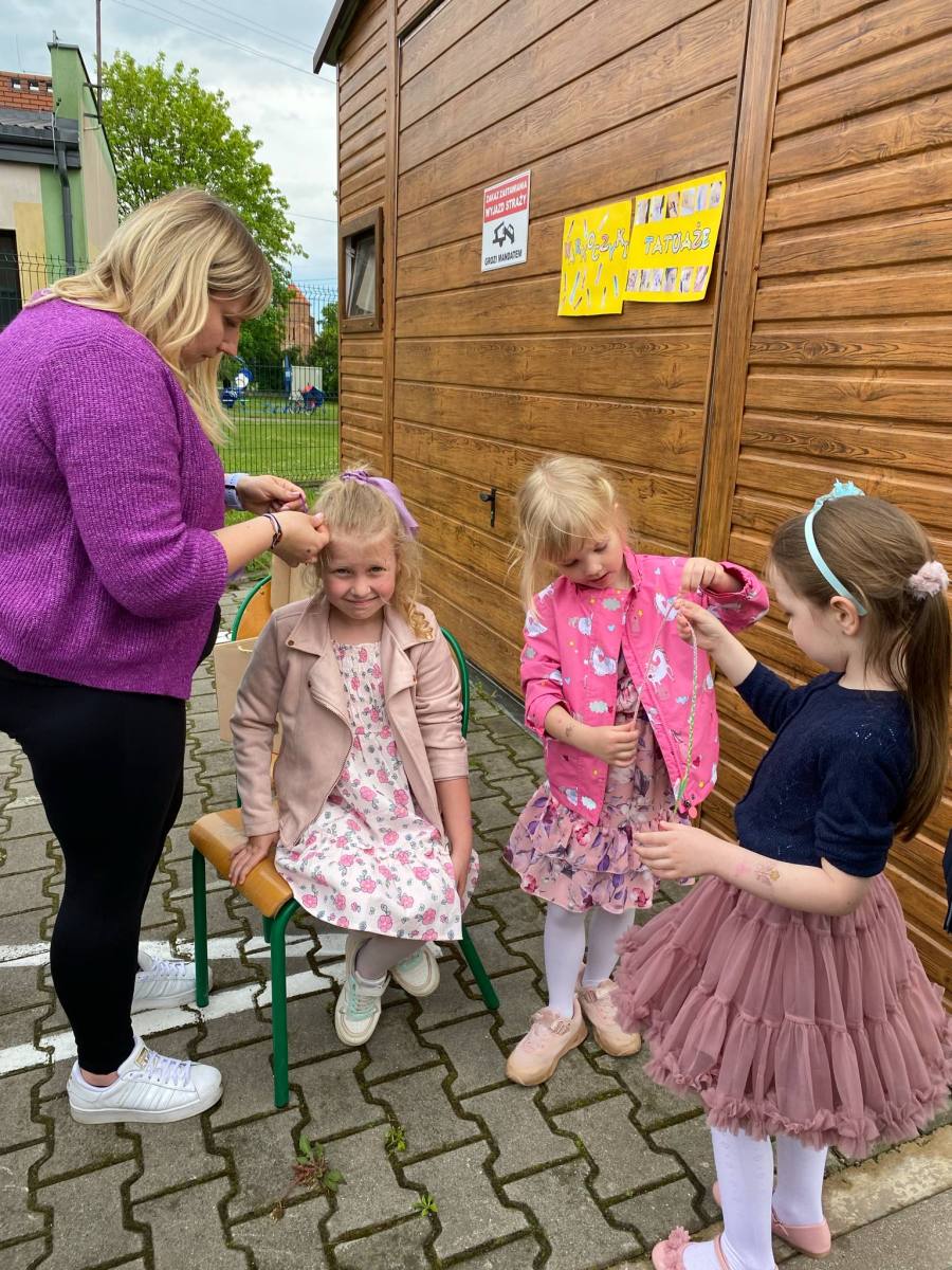 22 maja w naszym przedszkolu świętowaliśmy „Dzień Mamy i Taty”. Przedszkolaki przygotowały dla swoich rodziców piękny koncert podczas, którego wyśpiewaly rodzicom jak bardzo ich kochają. Po zaśpiewaniu „Sto lat” dzieci wręczyły swoim rodzicom własnoręczne wykonane upominki. Po części artystycznej przyszedł czas na wspólne świętowanie. Na placu czekały na dzieci i rodziców grillowane kiełbaski, wata cukrowa, tatuaże brokatowe, warkoczyki, gra kółko-krzyżyk oraz malowanie kamieni. Każdy mógł wybrać coś dla siebie z przygotowanych atrakcji. Był to również czas wspólnych rozmów.