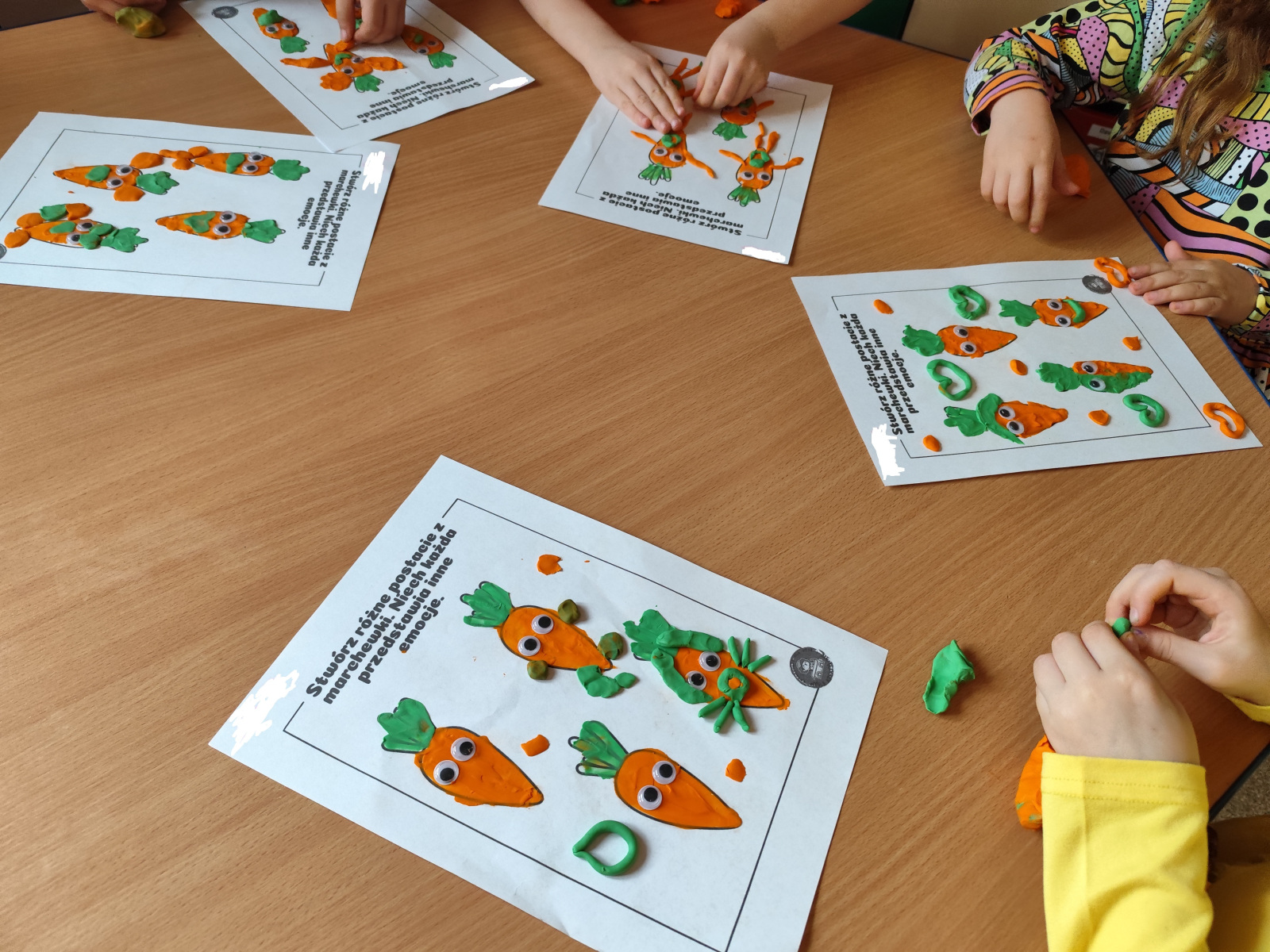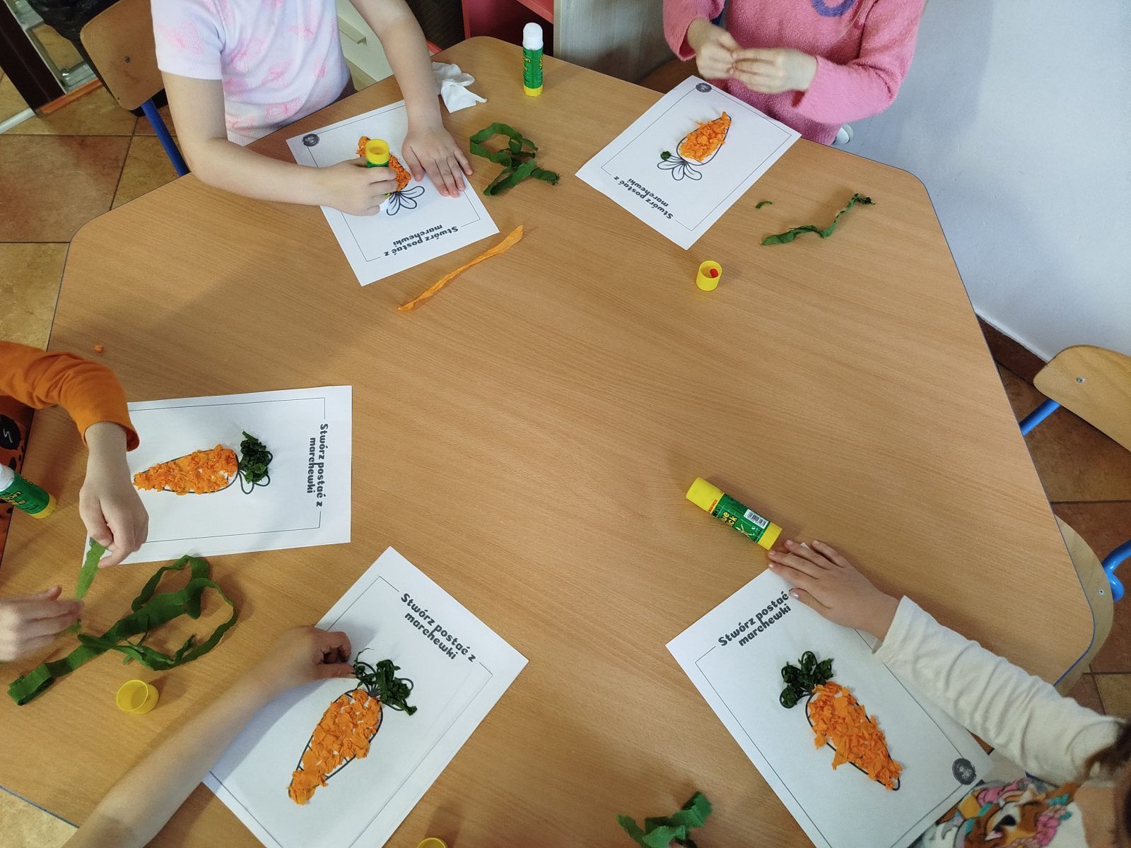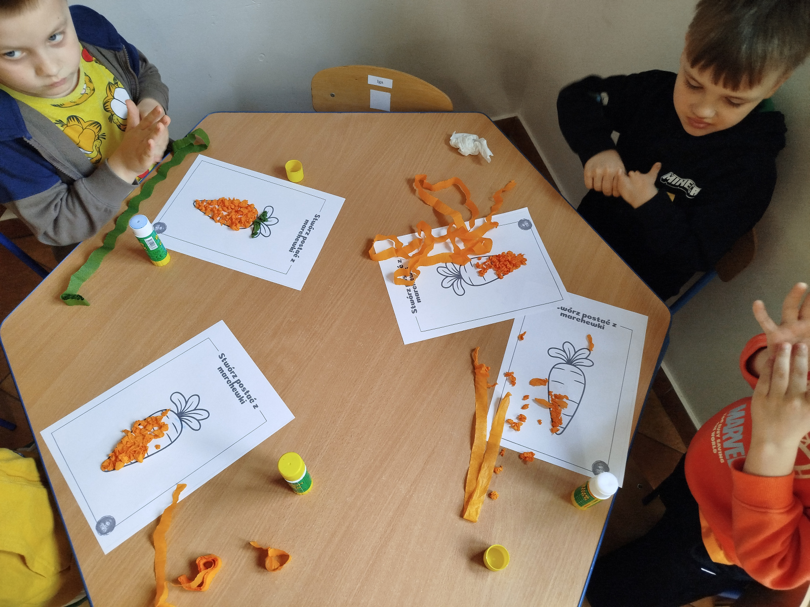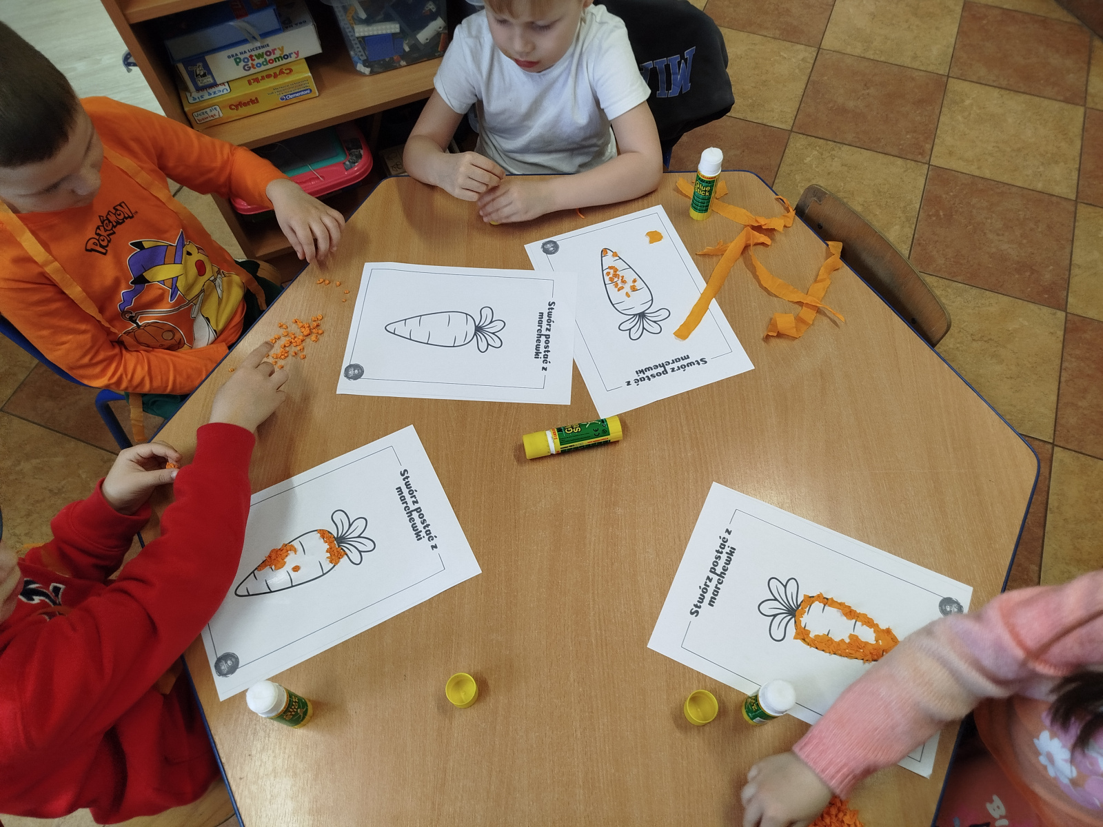 8 kwietnia nasze przedszkolaki obchodziły Dzień Marchewki, który miał  na celu uświadomienie dzieciom walorów smakowych i wartości odżywczych jakie zawiera marchewka oraz zachęcenie dzieci do jedzenia tego warzywa. Dzieci w tym dniu przyszły do przedszkola ubrane na pomarańczowo. Przedszkolaki wspólnie robiły sok marchewkowo-jabłkowy, który bardzo dzieciom smakował. Na zajęciach rozwijały sprawność manualną wykonując prace plastyczne, utrwalały umiejętność przeliczania, poznały wartości odżywcze marchewki. Badały marchewkę zmysłem dotyku oraz je degustowały.