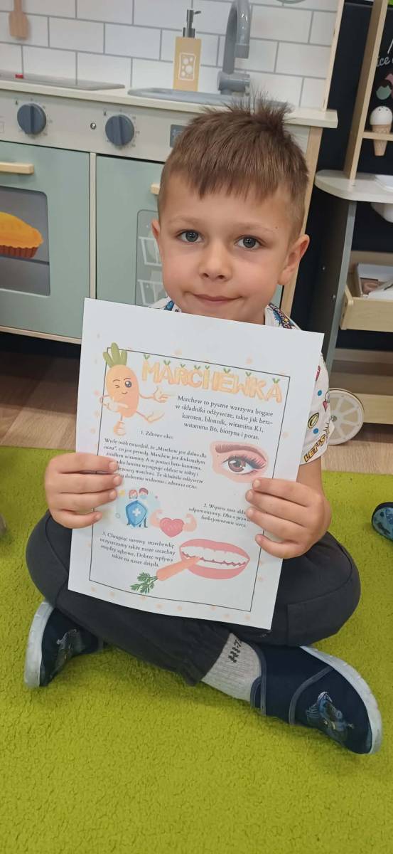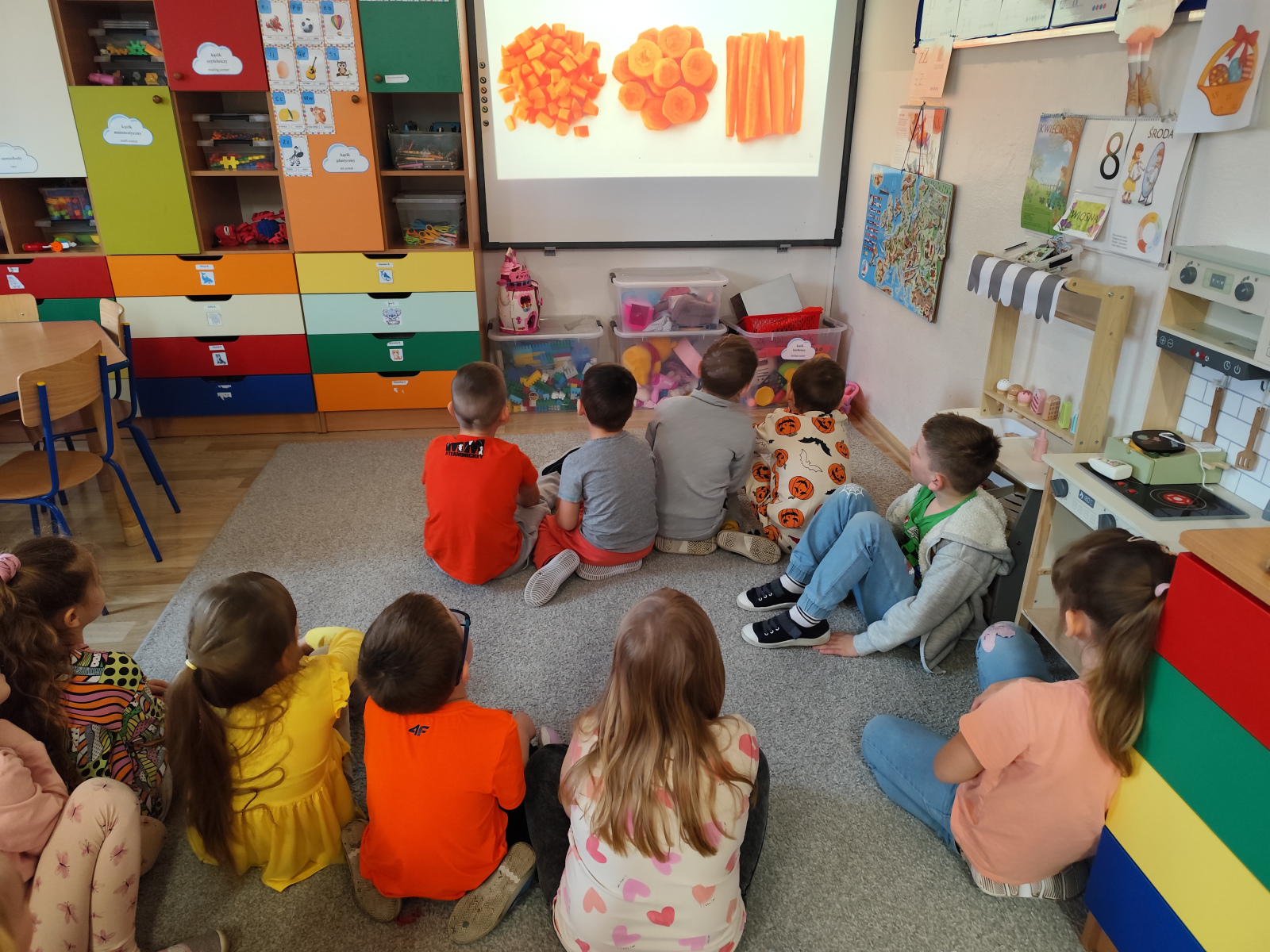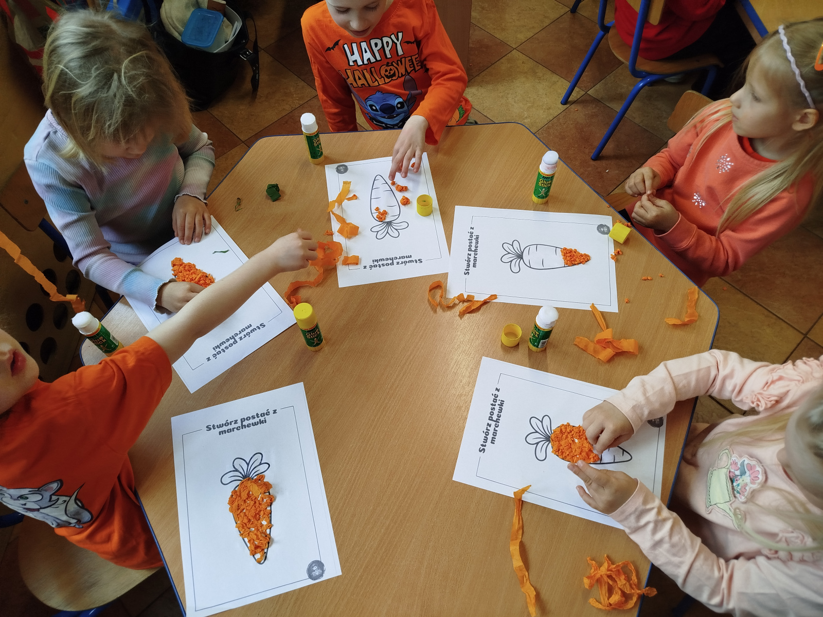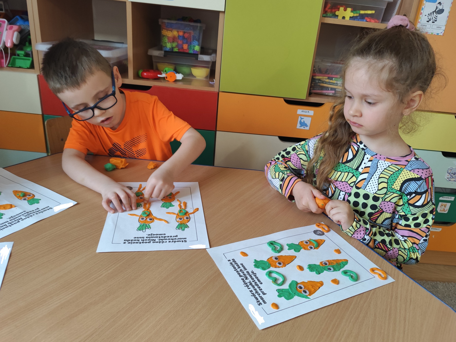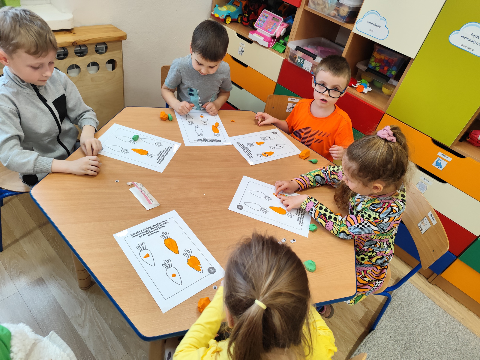 8 kwietnia nasze przedszkolaki obchodziły Dzień Marchewki, który miał  na celu uświadomienie dzieciom walorów smakowych i wartości odżywczych jakie zawiera marchewka oraz zachęcenie dzieci do jedzenia tego warzywa. Dzieci w tym dniu przyszły do przedszkola ubrane na pomarańczowo. Przedszkolaki wspólnie robiły sok marchewkowo-jabłkowy, który bardzo dzieciom smakował. Na zajęciach rozwijały sprawność manualną wykonując prace plastyczne, utrwalały umiejętność przeliczania, poznały wartości odżywcze marchewki. Badały marchewkę zmysłem dotyku oraz je degustowały.