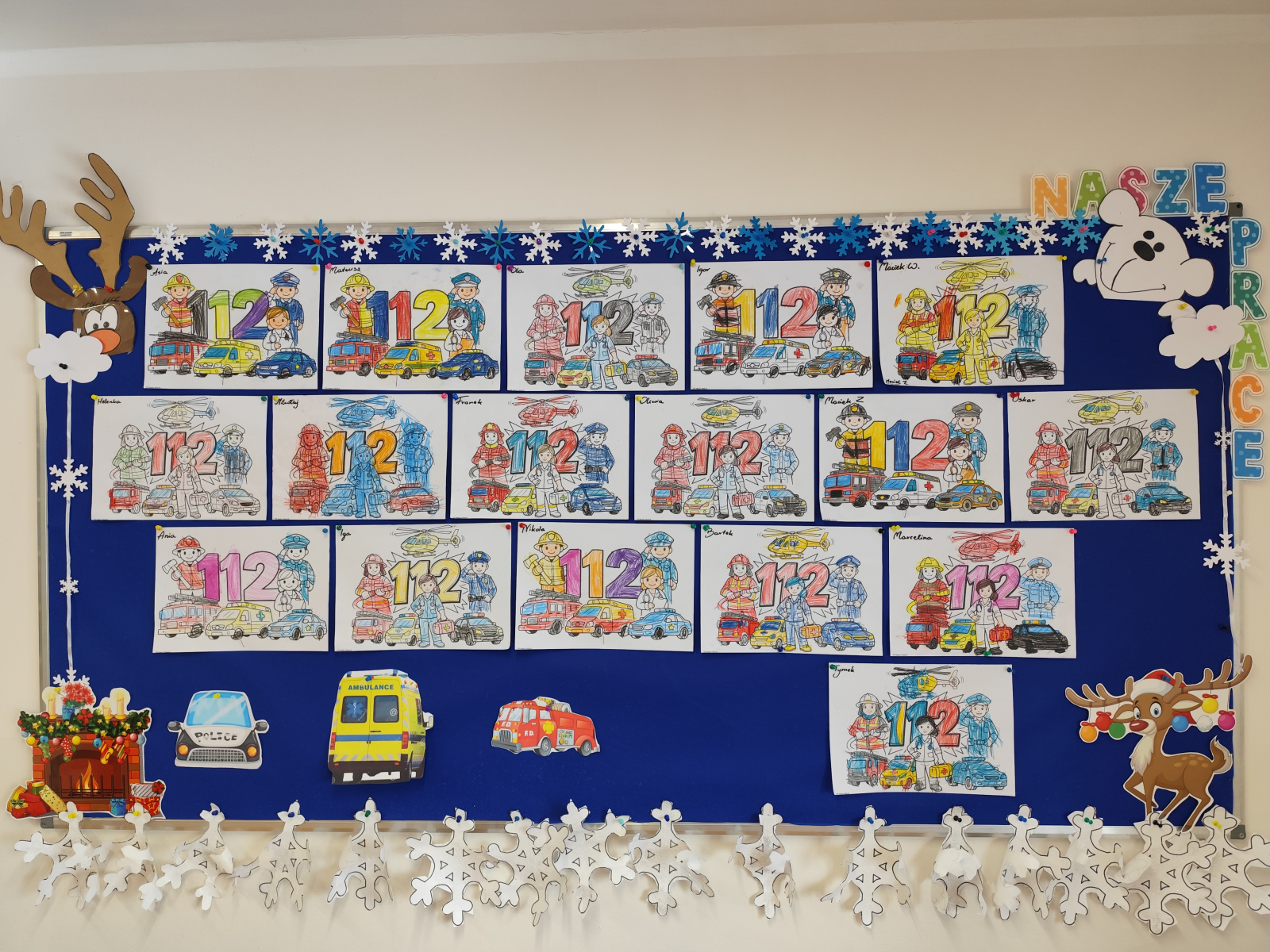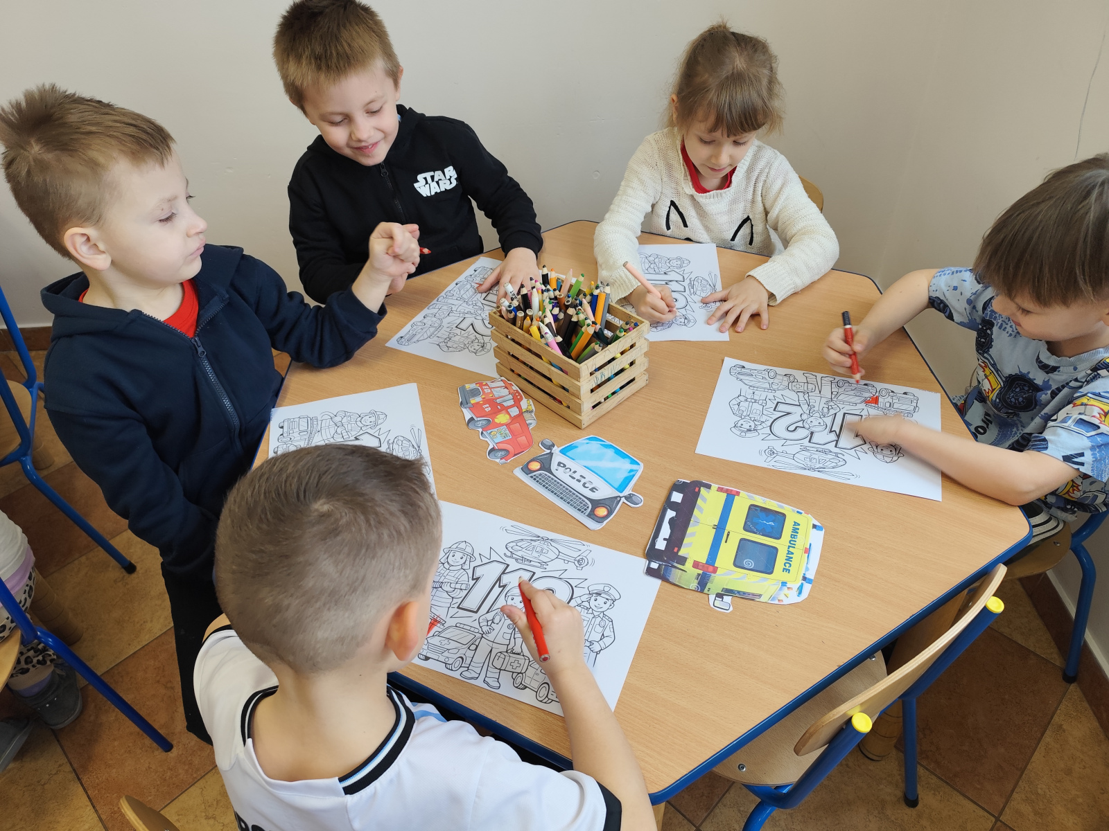 🐞🦉 W grupach Biedronki i Sówki dzieci wspólnie stworzyły plakat z numerem alarmowym.
