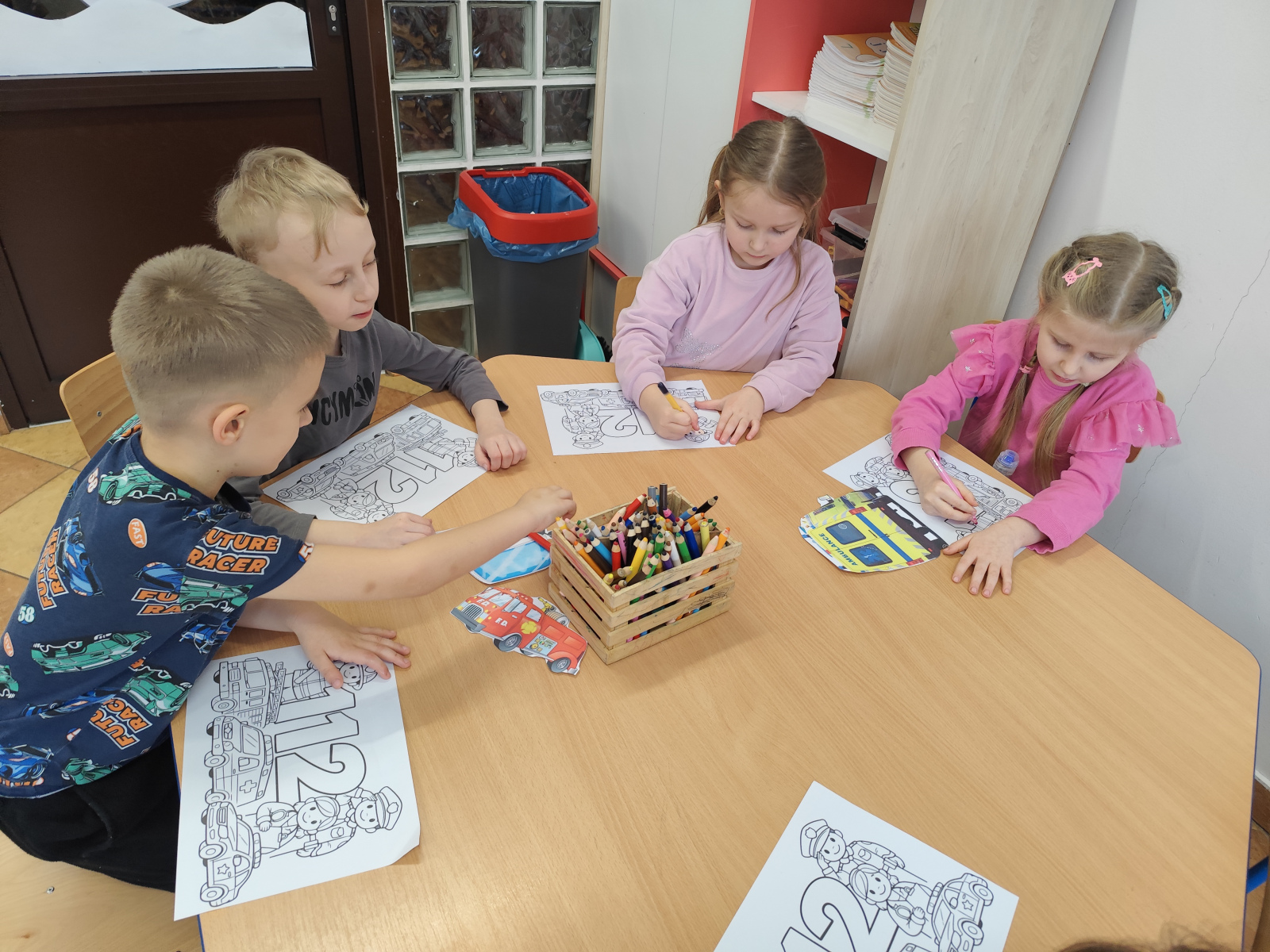 🎨 Przedszkolaki kolorowały kolorowanki zgodne z tematyką dnia.