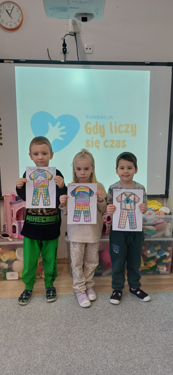 Dziś nasze przedszkole wypełniło się kolorowymi piżamkami, szlafrokami i kapciami. Wszystko za sprawą akcji organizowanej przez Fundacja Gdy Liczy się Czas – wyjątkowej inicjatywy, która jest wyrazem solidarności z dziećmi przebywającymi na oddziałach onkologicznych. Piżama to dla wielu z nas symbol ciepła i bezpieczeństwa, ale dla niektórych dzieci to codzienny strój w czasie walki o zdrowie. Podczas dzisiejszych zajęć dzieci miały okazję poznać świat małych pacjentów onkologicznych – dowiedziały się, z jakimi trudnościami mierzą się ich rówieśnicy oraz jak ważne jest wsparcie, życzliwość i dobre słowo 💛 Z tej okazji zorganizowaliśmy również zbiórkę na rzecz Fundacji. Dziękujemy wszystkim Rodzicom za otwartość, zaangażowanie i każdą przekazaną złotówkę. Razem uczymy dzieci empatii, wrażliwości i pomagania innym.