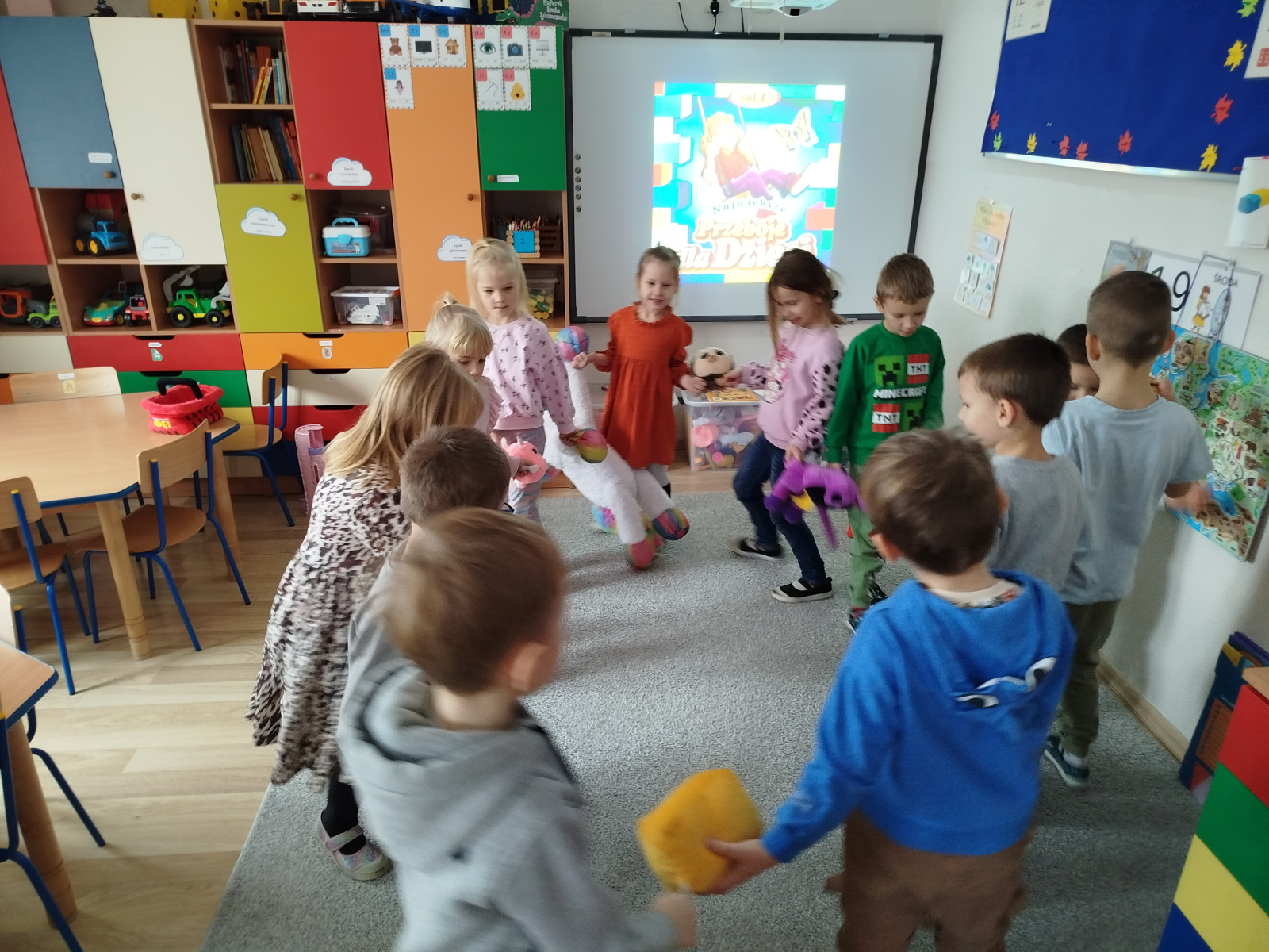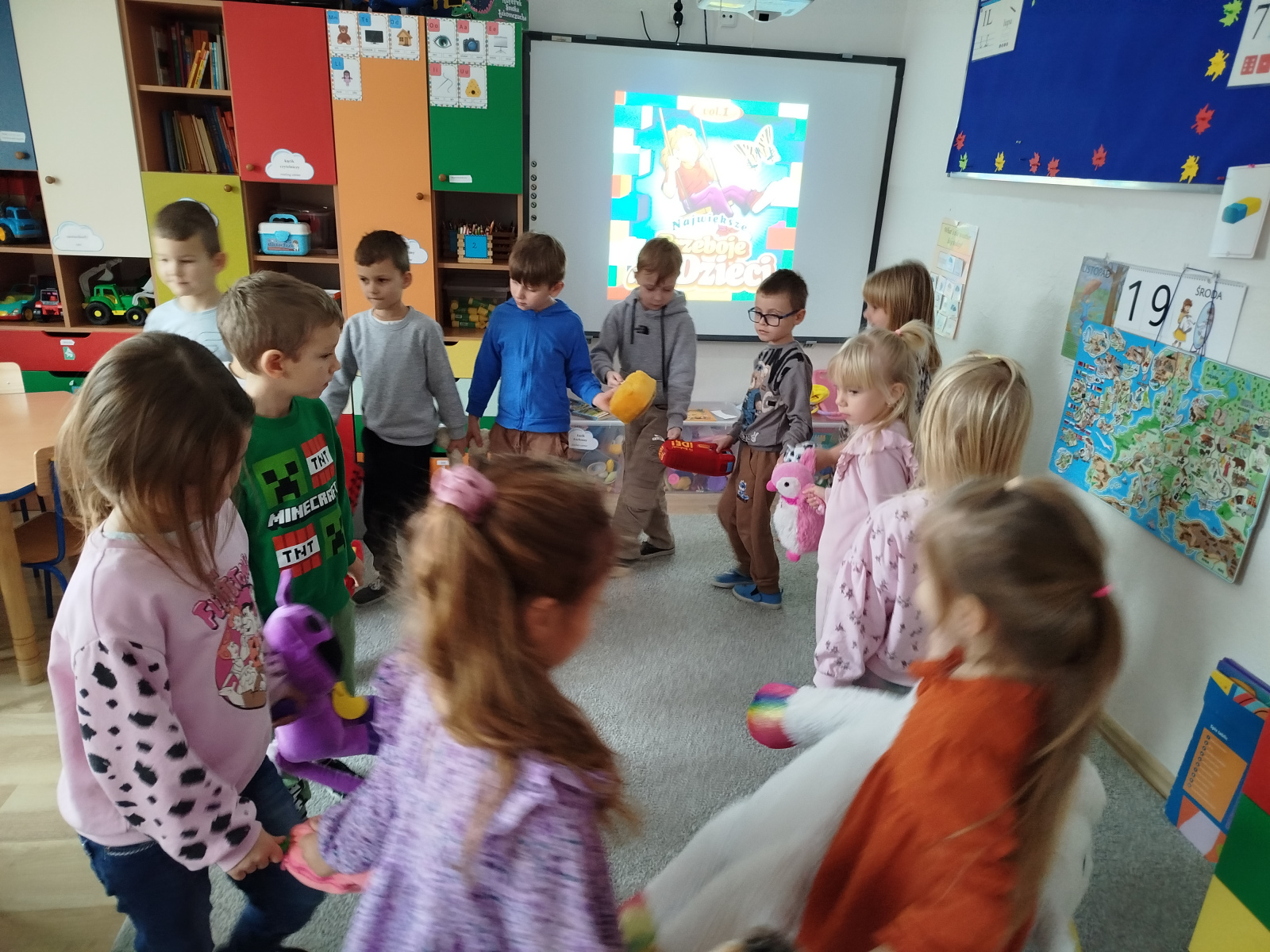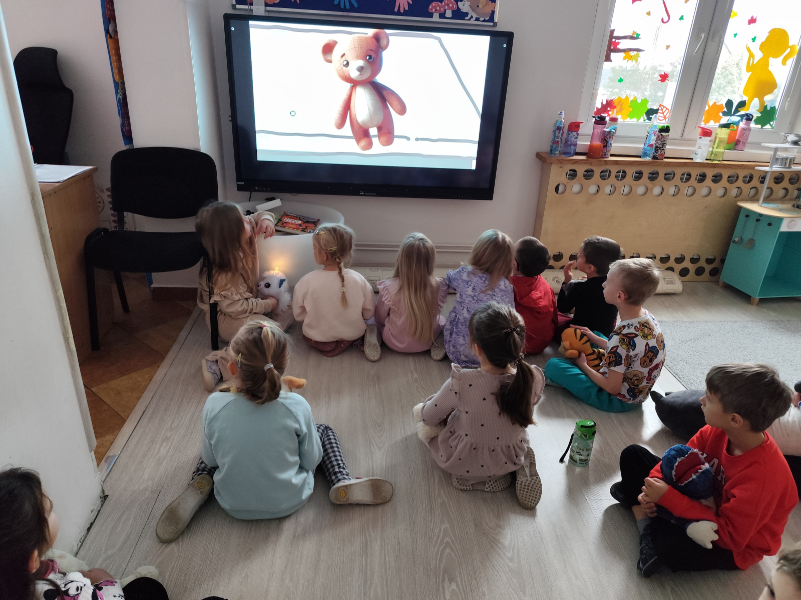 25 listopada był to dzień pełen uśmiechu, ciepła i… miodkowej słodyczy! Nasze przedszkole odwiedził wyjątkowy gość – Pluszowy Miś, który przyniósł ze sobą prawdziwy miodek do degustacji. 😋🍯Dzieci obejrzały również film edukacyjny o misiach, poznając wiele ciekawostek o tych sympatycznych zwierzakach.Potem czekały na nas zabawy na dywanie:✨ dopasowywanie cieni,✨ układanie sekwencji,✨ ćwiczenia logopedyczne z misiowymi elementami. Na zakończenie nie mogło zabraknąć misiowej sesji zdjęciowej 📸🧸 — dzieci pozowały z pluszakami, tworząc piękne, pełne radości pamiątki. A to jeszcze nie wszystko! Przedszkolaki wybrały się do biblioteki na wyjątkowy teatrzyk Teatru Maska pt. „Na misiowych urodzinach najważniejsza jest rodzina”. 🎭🐻 Spektakl pełen ciepła, humoru i ważnych wartości był cudownym dopełnieniem naszego misiowego święta.To był naprawdę wyjątkowy i pełen wrażeń dzień! 💛🧸