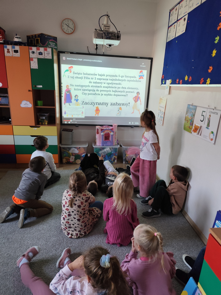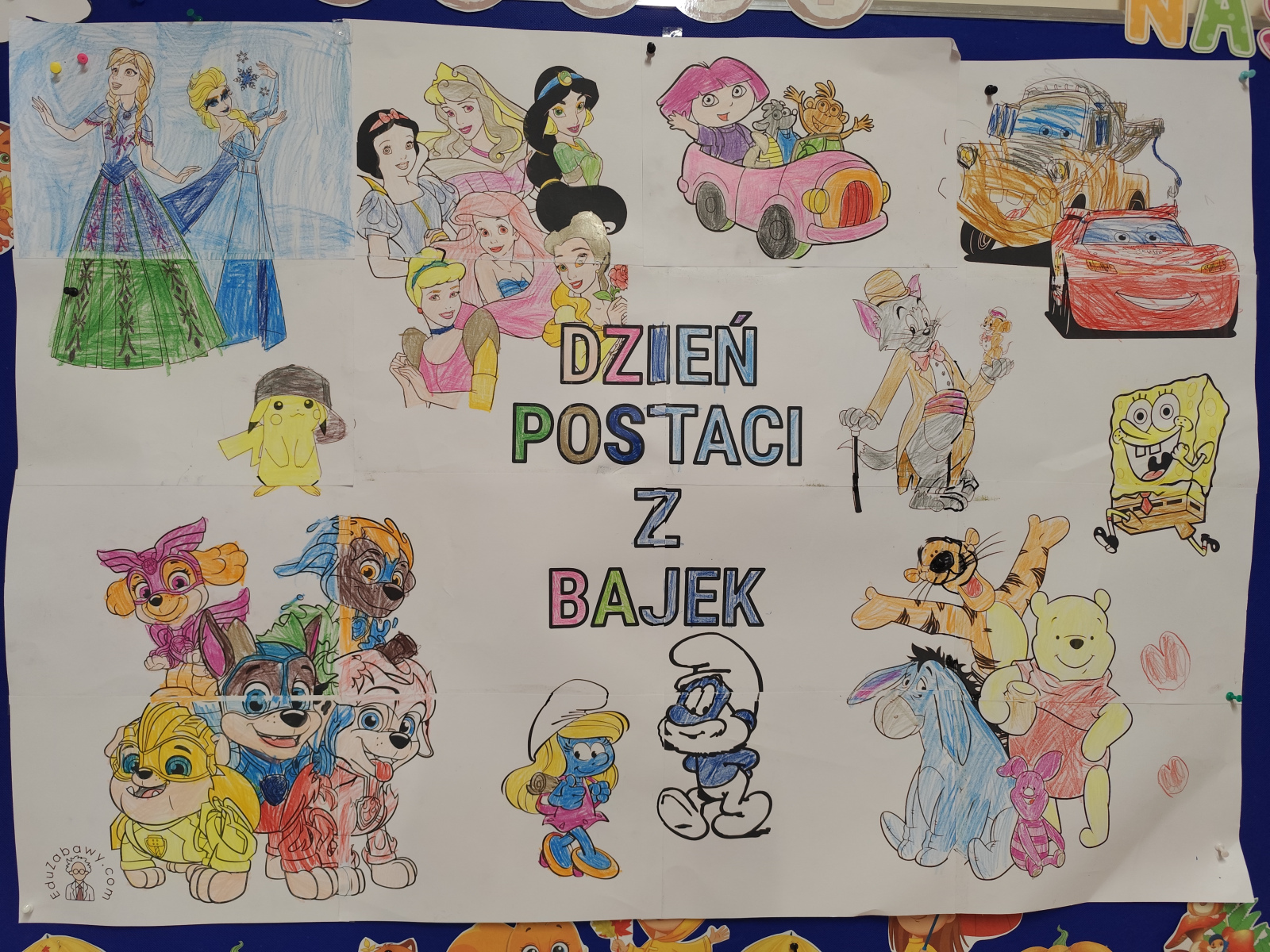 5 listopada wspólnie przenieśliśmy się do świata ulubionych bohaterów z książek i filmów animowanych. Dzieci z zainteresowaniem słuchały bajek, rozwiązywały zagadki, brały udział w zabawach i rozmowach o tym, czego możemy się nauczyć od naszych bajkowych przyjaciół.