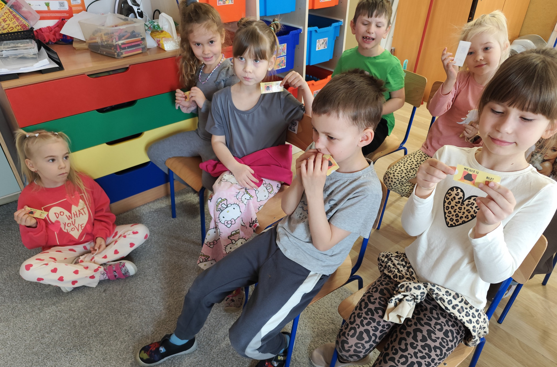 Nasze Pszczółki wykazały się też ogromną kreatywnością – samodzielnie stworzyły ilustrację do wymyślonej przez siebie sztuki teatralnej, której nadały tytuł „Przygody Jasia i Małgosi”. 🌈🎨To był dzień pełen zabawy, emocji i teatralnych wrażeń! 👏🎬