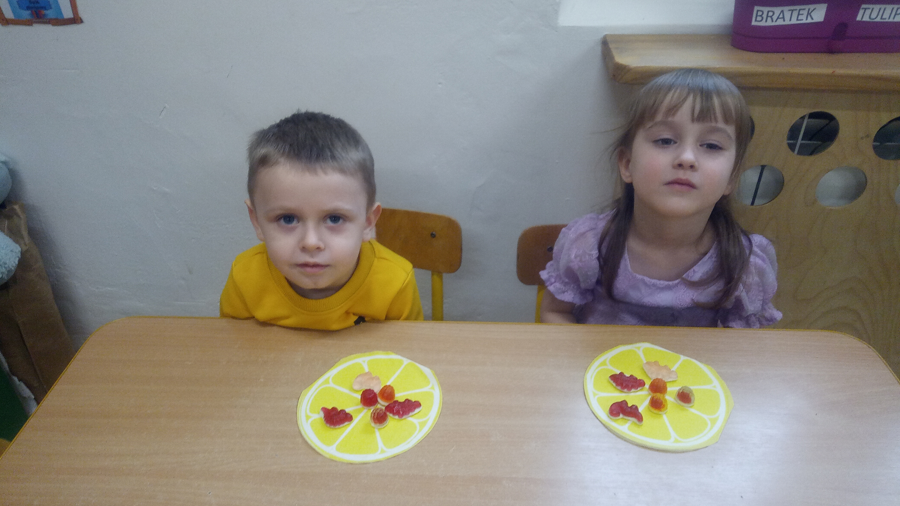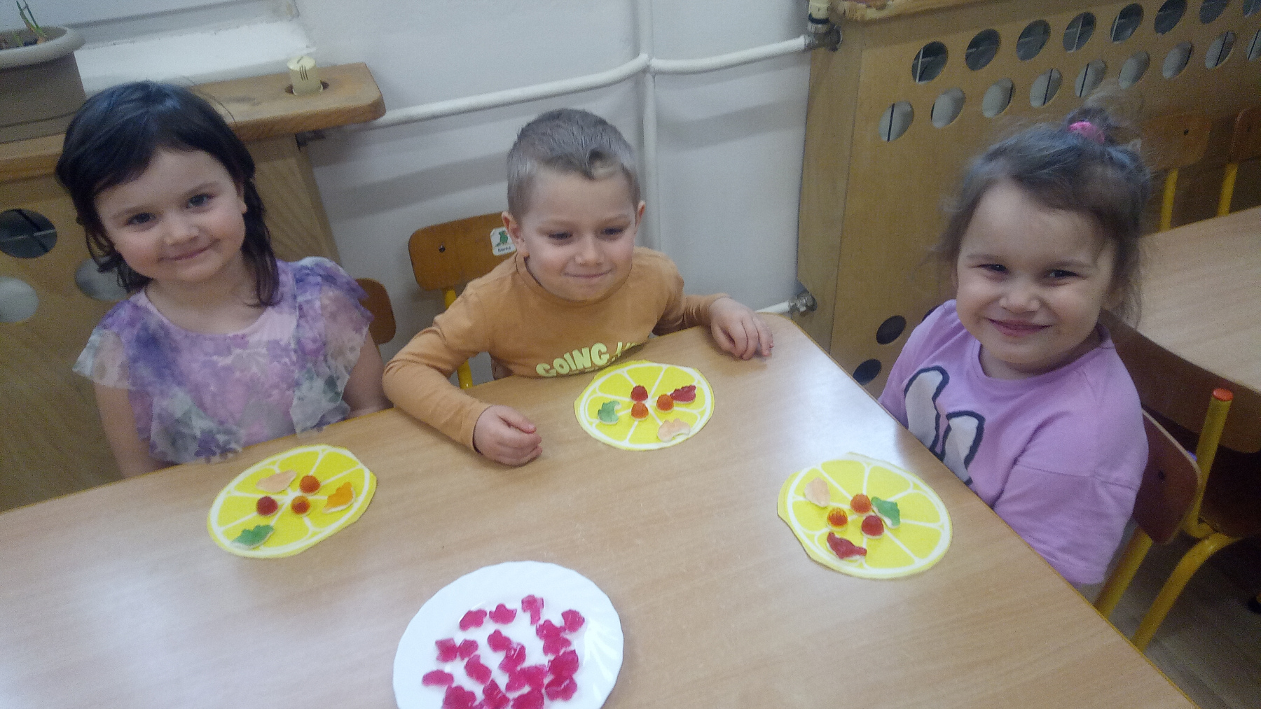 spróbowały zarówno kupnych żelków, jak i tych przygotowanych samodzielnie z galaretki 🍭, poznały historię powstania żelka 📖, a Tymek i Lila przynieśli swoje ulubione żelki, którymi poczęstowały kolegów i koleżanki 💛.Było słodko, kolorowo i pełno uśmiechów! 😄