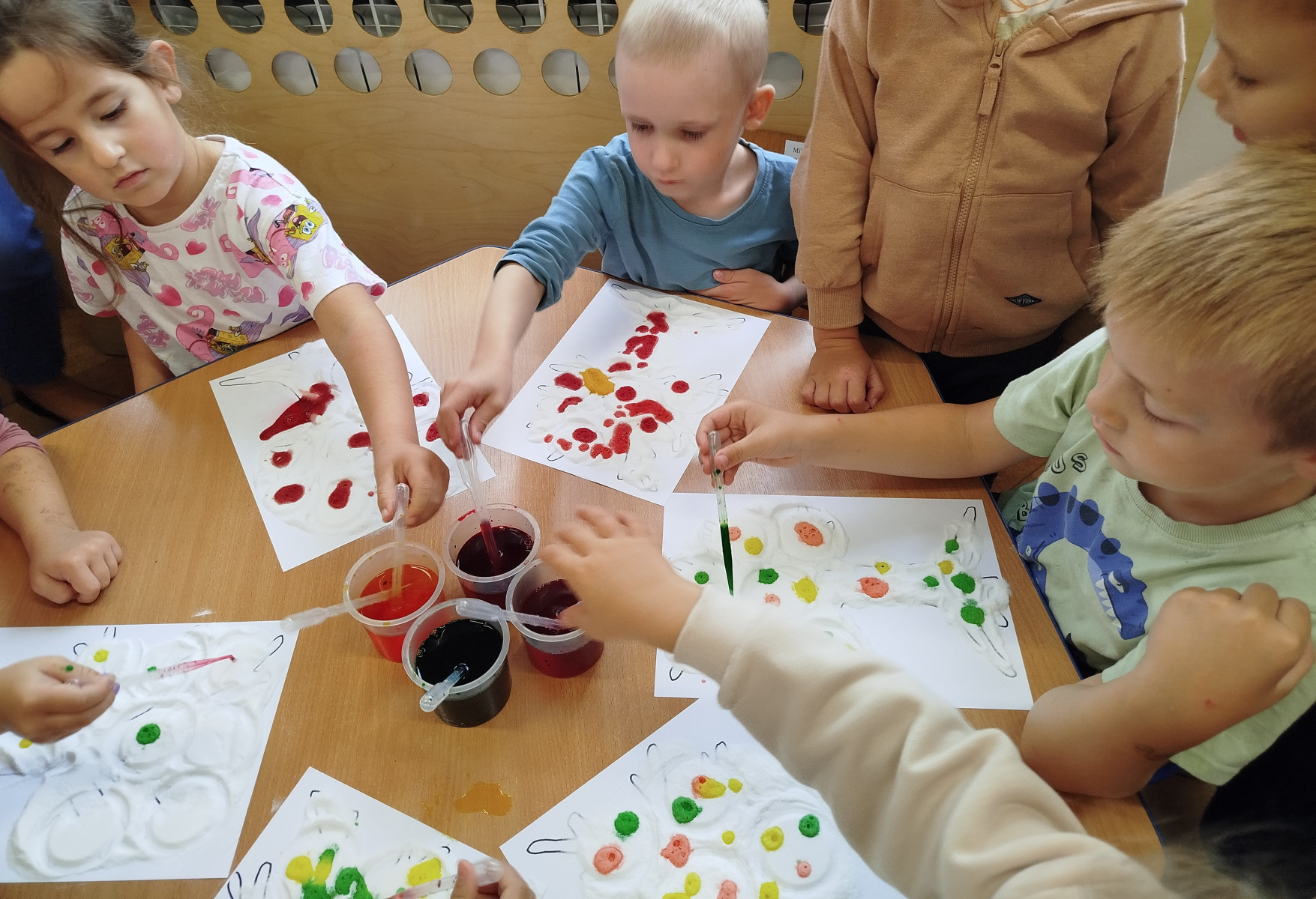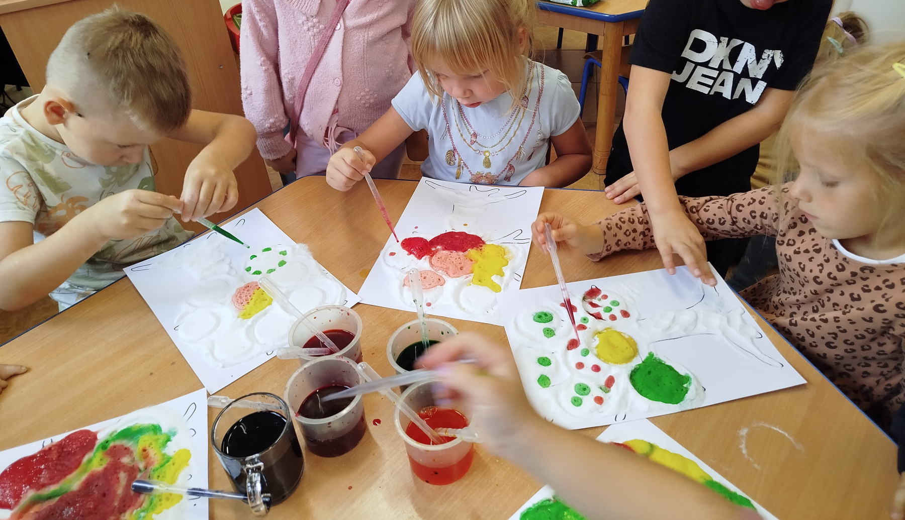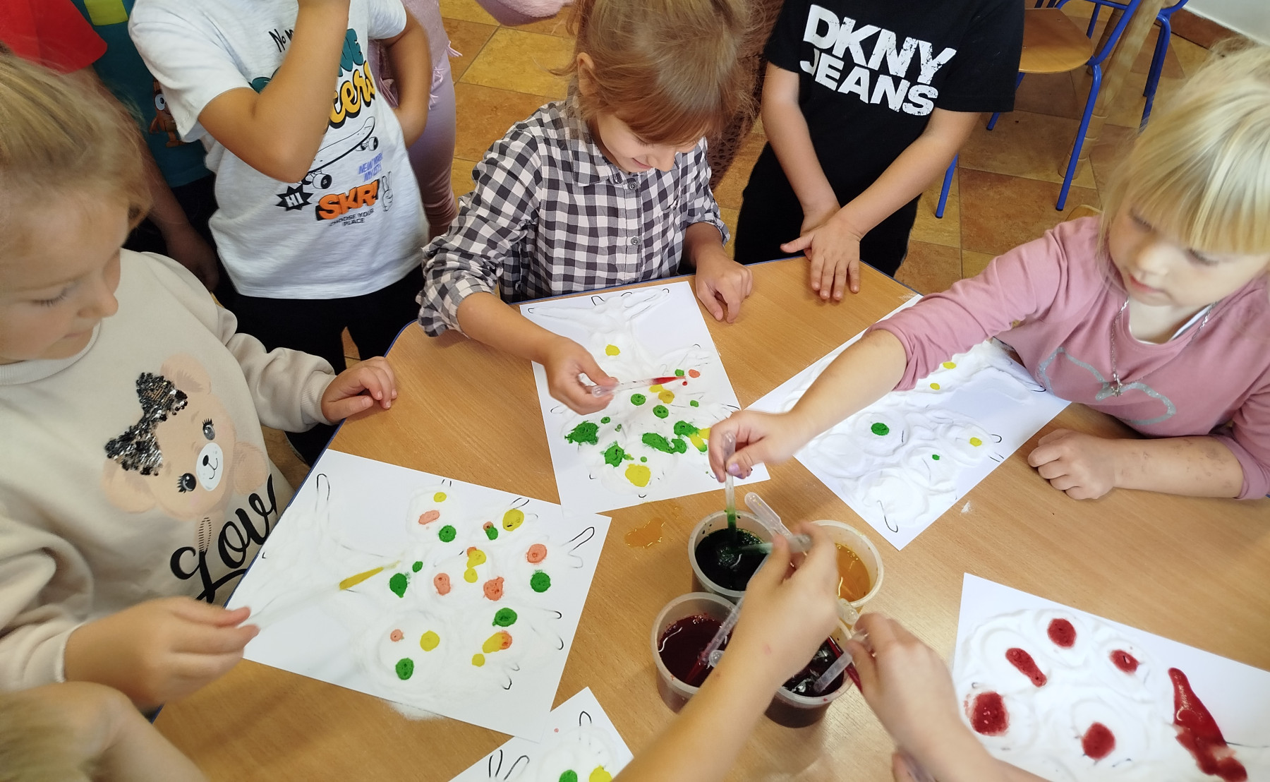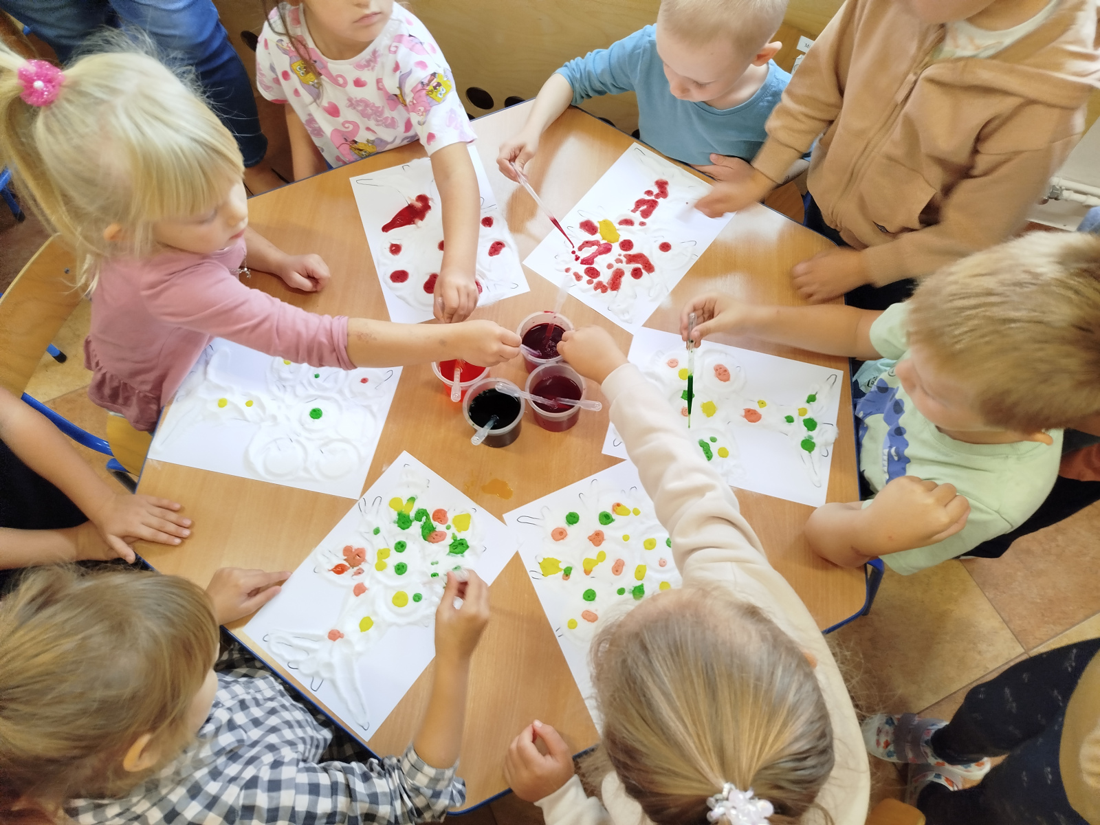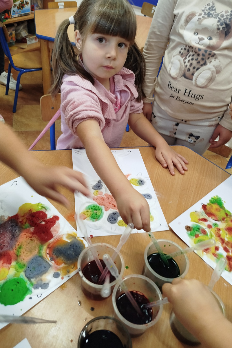 30 września przedszkolaki bawiły się w tworzenie kolorowych jesiennych drzew. Dzieci łączyły barwy- powstawały przepiękne , kolorowe korony w odcieniach jesieni: czerwone, żółte, pomarańcze i brązy. Zmysłoplastyka to świetna zabawa dla dzieci: rozwija wyobraźnię i kreatywność, ćwiczy sprawność dłoni i paluszków, pozwala poczuć kolory i faktury jesieni.