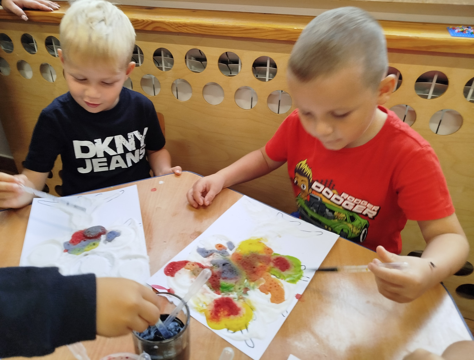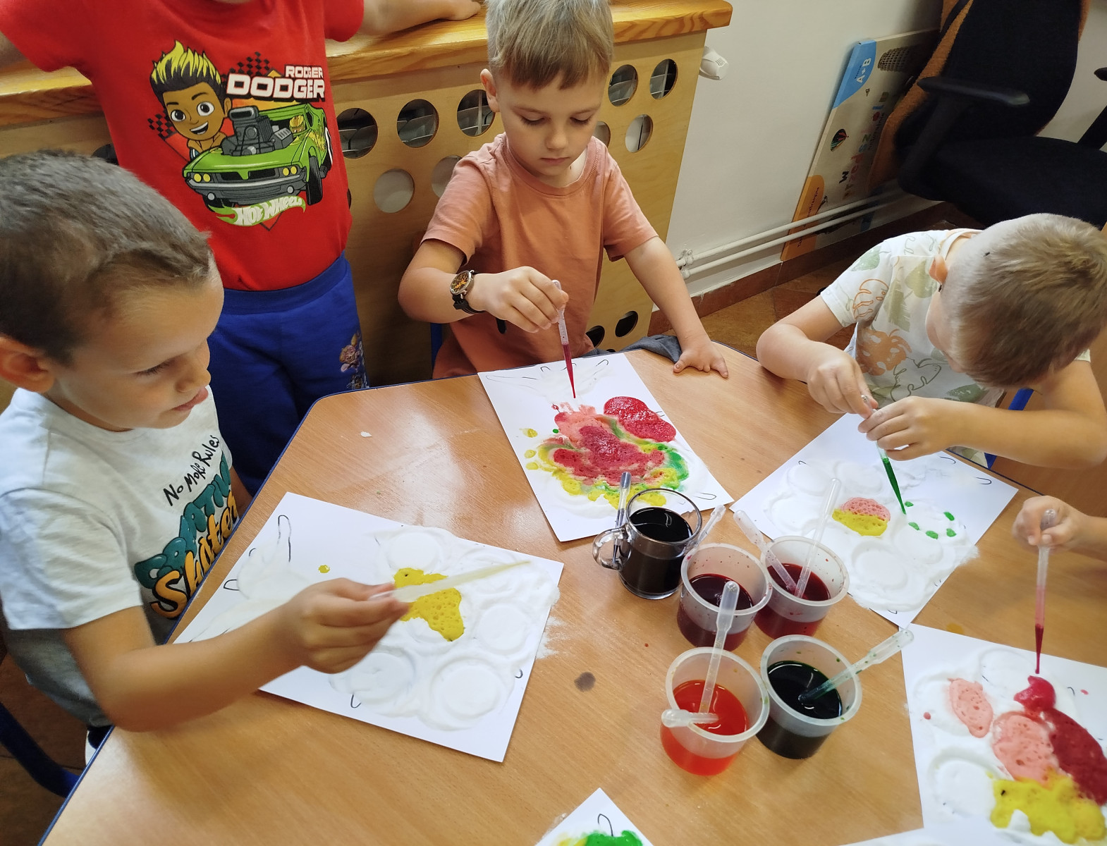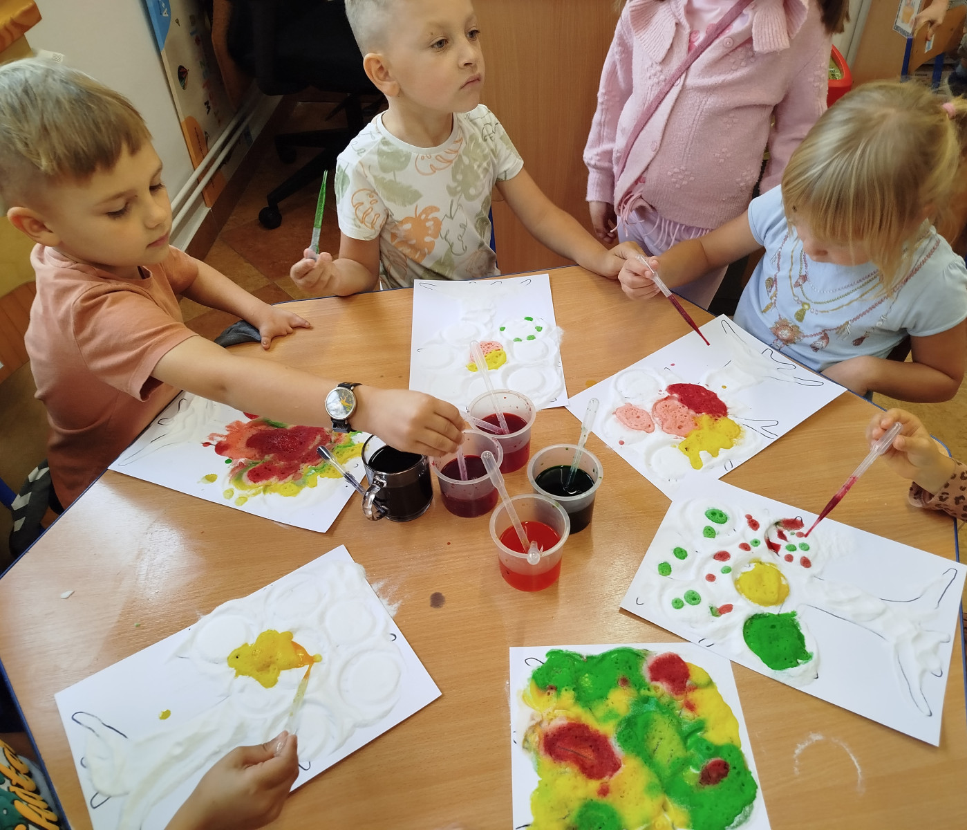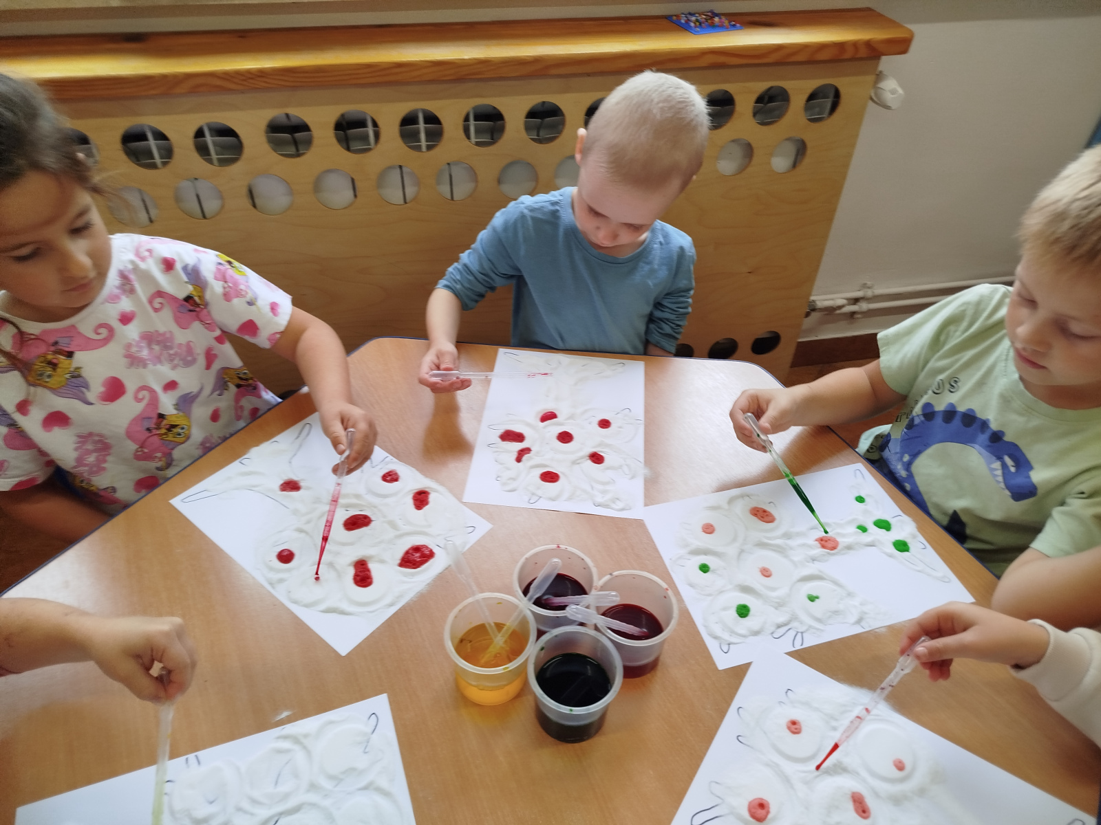 30 września przedszkolaki bawiły się w tworzenie kolorowych jesiennych drzew. Dzieci łączyły barwy- powstawały przepiękne , kolorowe korony w odcieniach jesieni: czerwone, żółte, pomarańcze i brązy. Zmysłoplastyka to świetna zabawa dla dzieci: rozwija wyobraźnię i kreatywność, ćwiczy sprawność dłoni i paluszków, pozwala poczuć kolory i faktury jesieni.