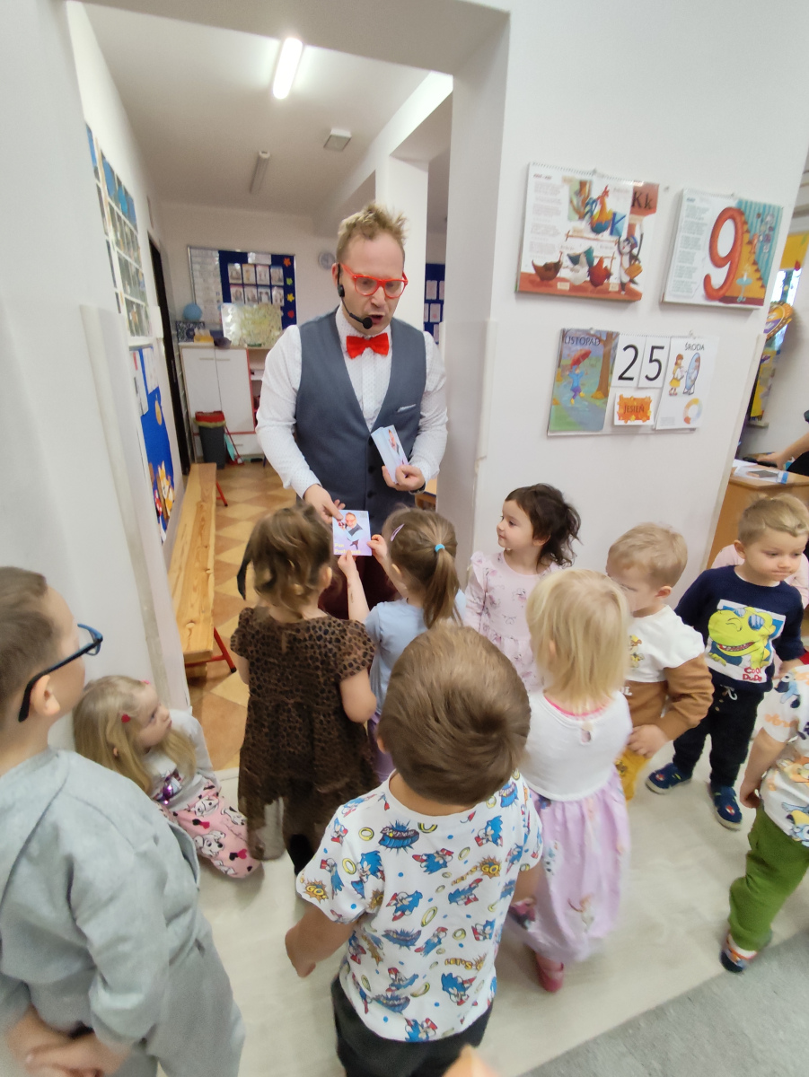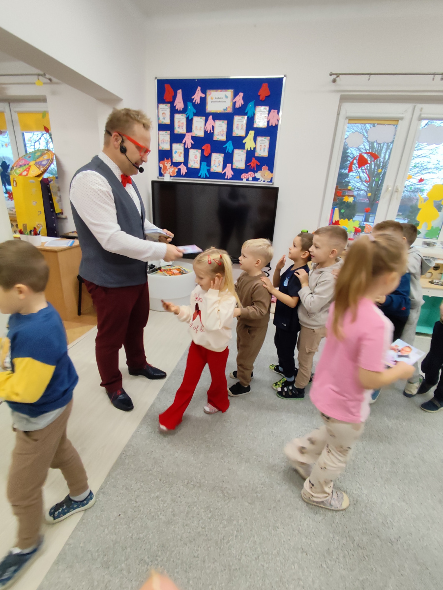 26 listopada w naszym przedszkolu gościliśmy wyjątkowego gościa – Pana Profesorka, który przeniósł dzieci w fascynujący świat nauki i eksperymentów! 🤩🧪 Przedszkolaki miały okazję:🔹 zobaczyć efektowne, kolorowe doświadczenia,🔹 dowiedzieć się, jak działają proste zjawiska fizyczne i chemiczne,🔹 aktywnie uczestniczyć w pokazach,🔹 a przede wszystkim – świetnie się bawić!Uśmiechy na twarzach dzieci mówiły wszystko ❤️ To była fantastyczna lekcja, która łączyła dobrą zabawę z odkrywaniem tajemnic świata.