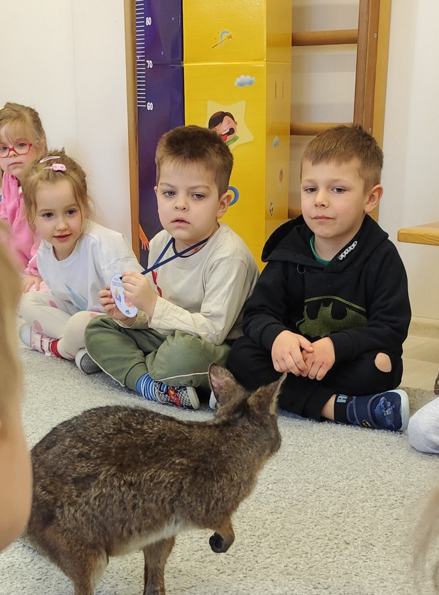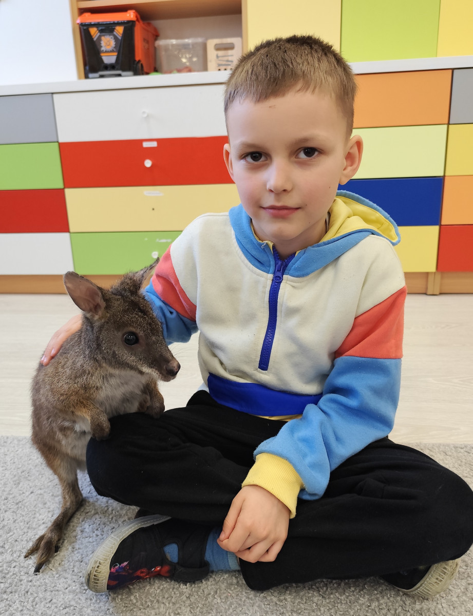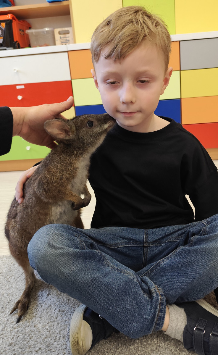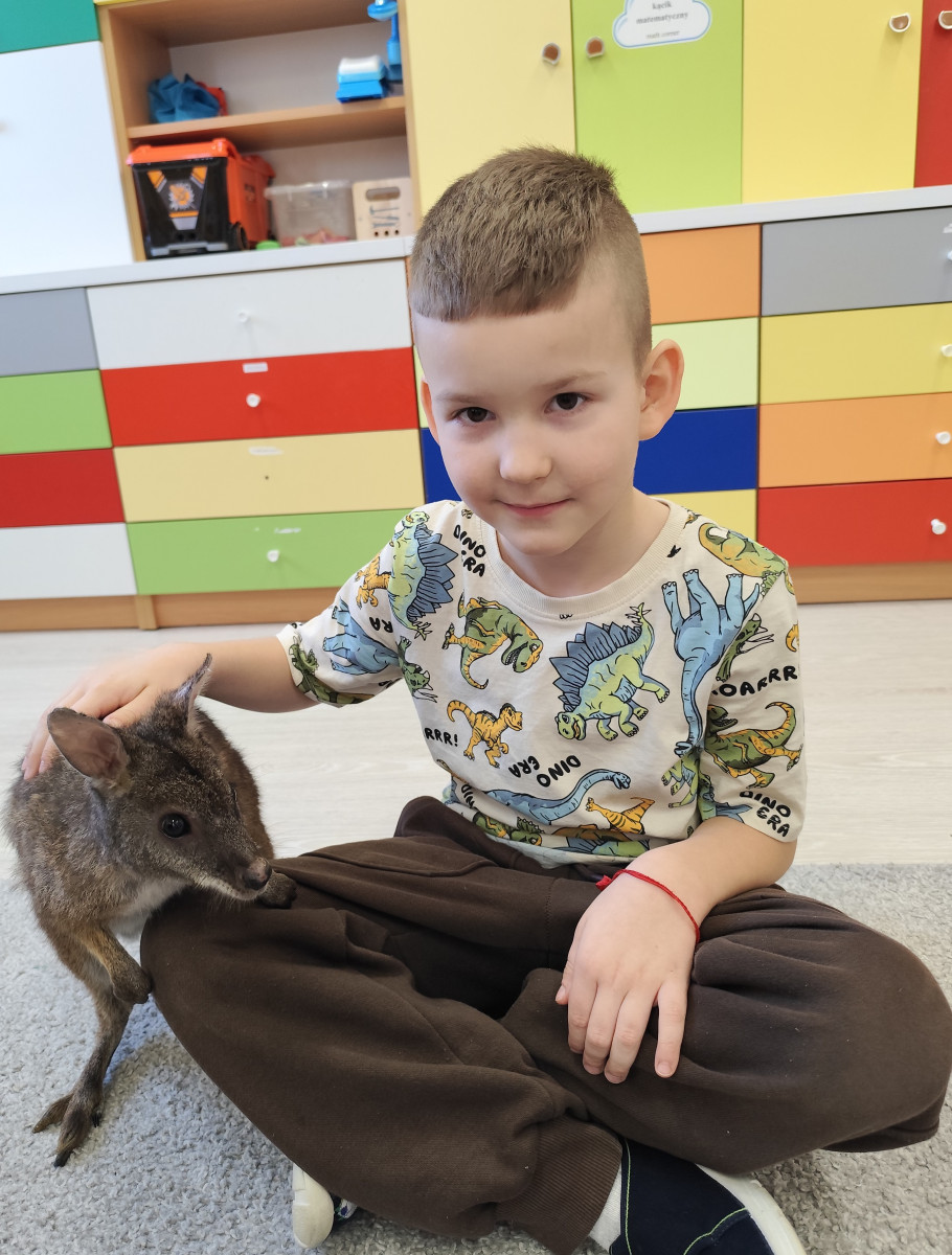 6 lutego nasze przedszkole odwiedził wyjątkowy gość – kangur Henio. Spotkanie wzbudziło wśród dzieci ogromne zainteresowanie i wiele radości. Przedszkolaki miały okazję z bliska zobaczyć kangura, dowiedzieć się wielu ciekawostek o jego życiu oraz zwyczajach. Nie zabrakło także wspólnych zdjęć, uśmiechów i niezapomnianych emocji. Dla wielu dzieci była to pierwsza okazja, aby zobaczyć tak niezwykłe zwierzę na żywo. To była bardzo ciekawa i radosna lekcja przyrody, która na długo pozostanie w pamięci naszych przedszkolaków! 🦘😊