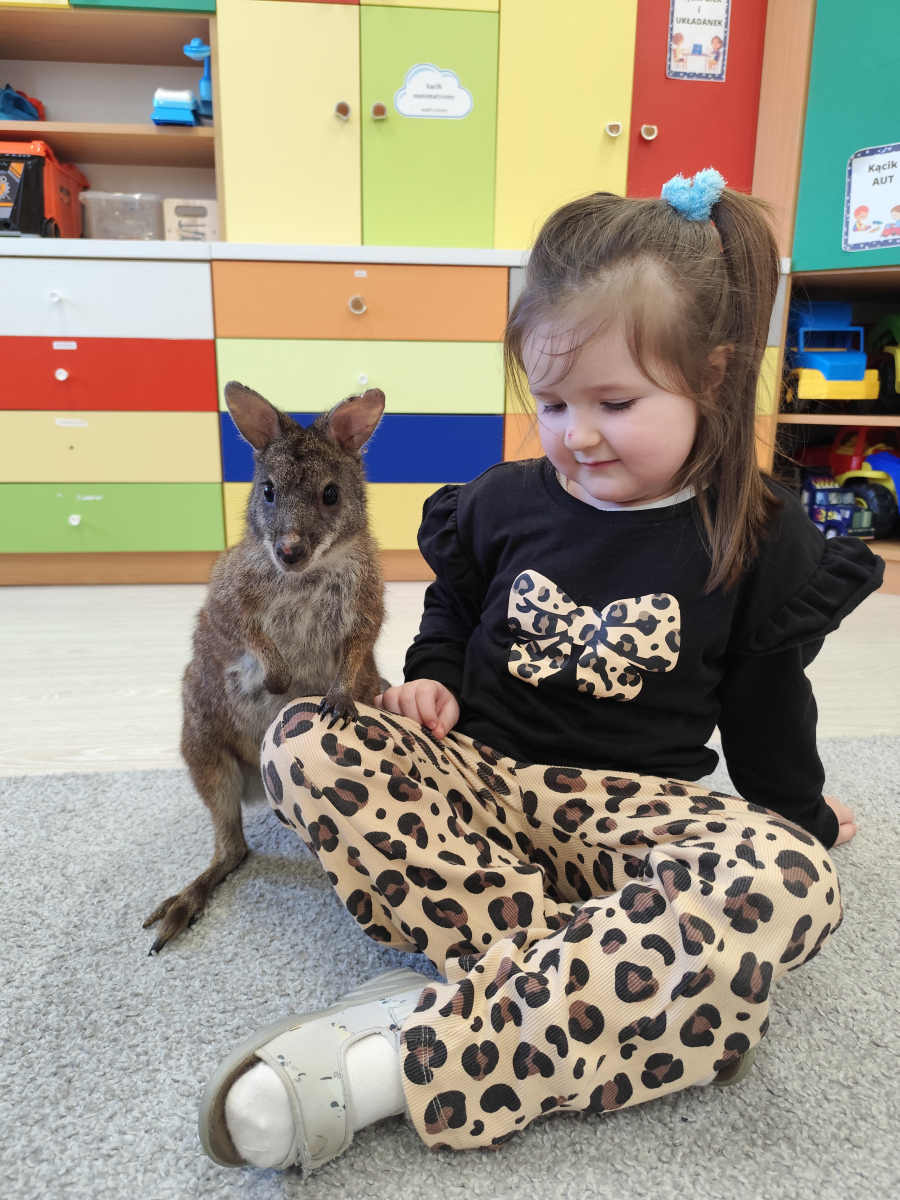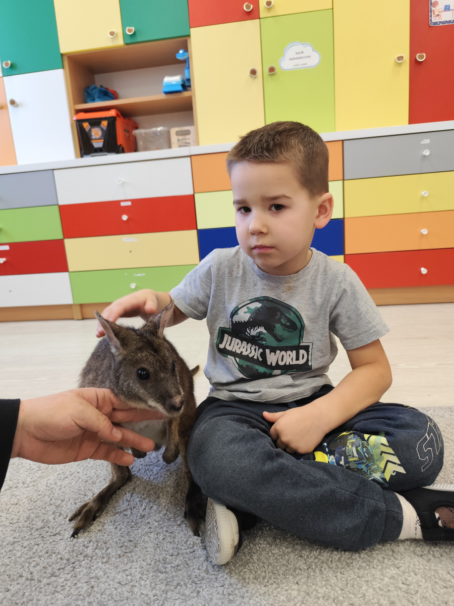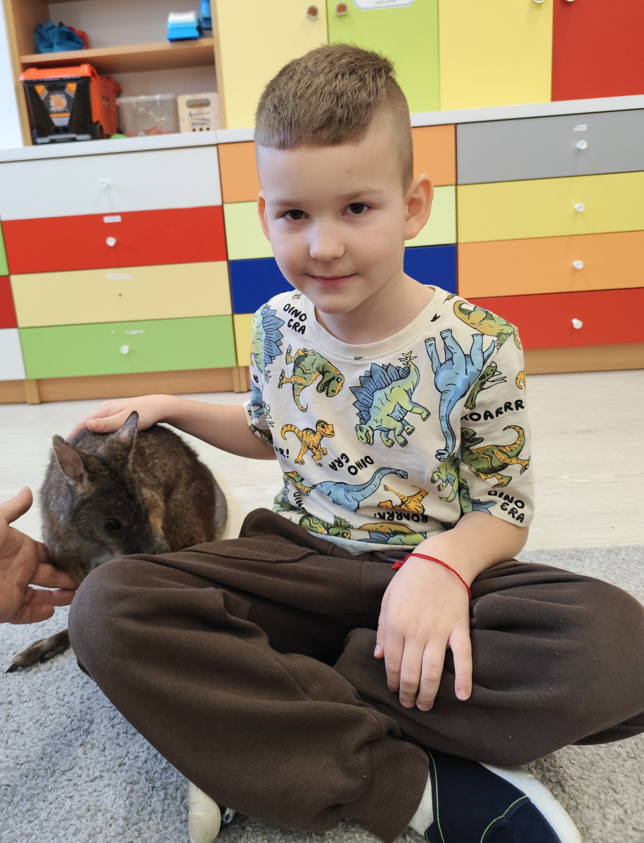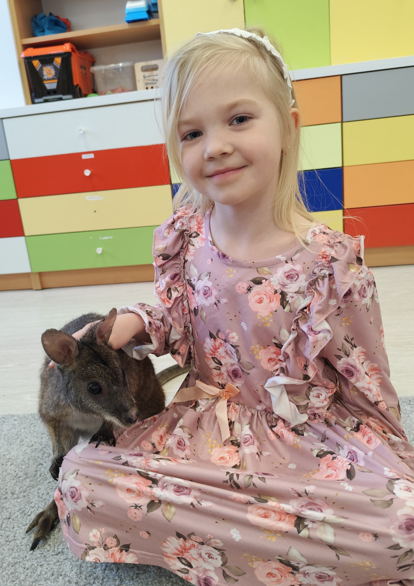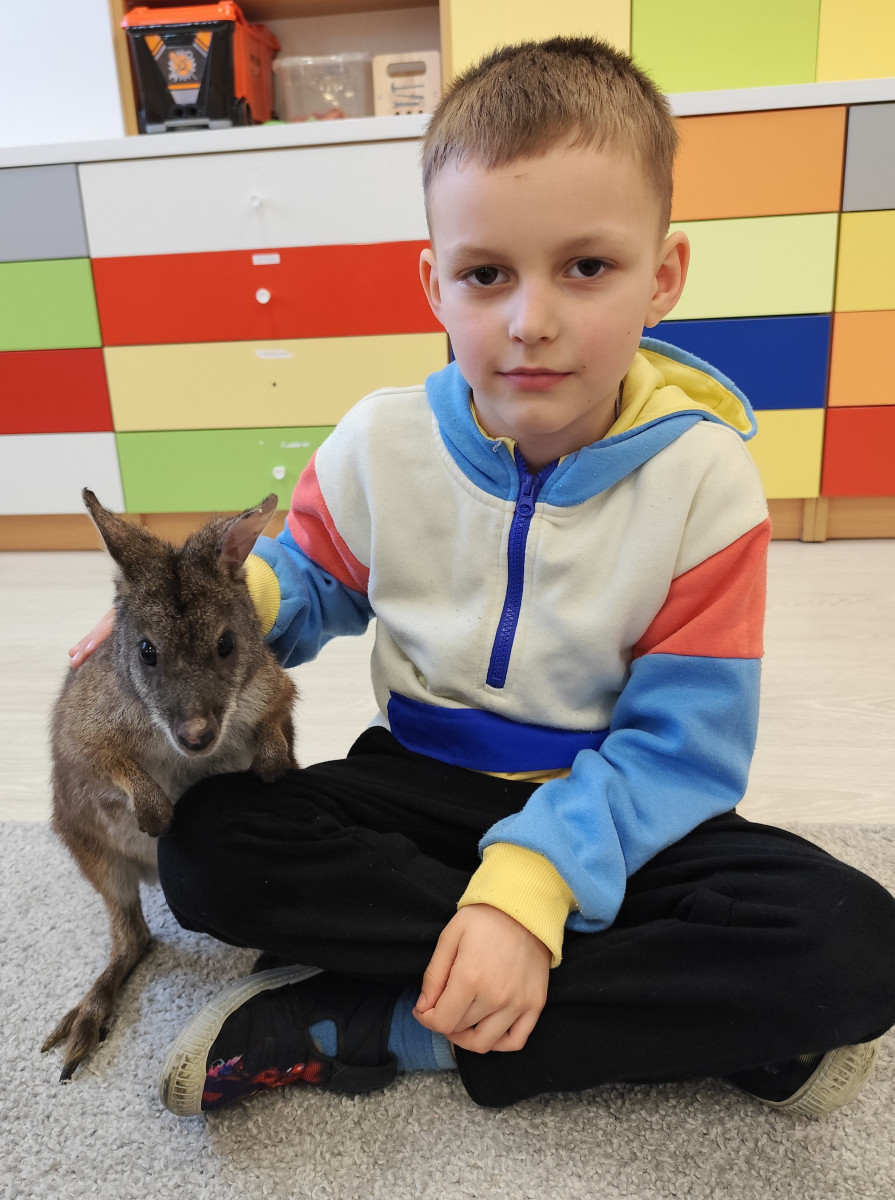 6 lutego nasze przedszkole odwiedził wyjątkowy gość – kangur Henio. Spotkanie wzbudziło wśród dzieci ogromne zainteresowanie i wiele radości. Przedszkolaki miały okazję z bliska zobaczyć kangura, dowiedzieć się wielu ciekawostek o jego życiu oraz zwyczajach. Nie zabrakło także wspólnych zdjęć, uśmiechów i niezapomnianych emocji. Dla wielu dzieci była to pierwsza okazja, aby zobaczyć tak niezwykłe zwierzę na żywo. To była bardzo ciekawa i radosna lekcja przyrody, która na długo pozostanie w pamięci naszych przedszkolaków! 🦘😊