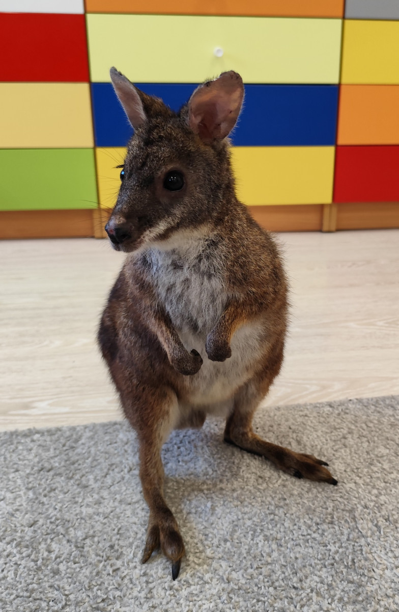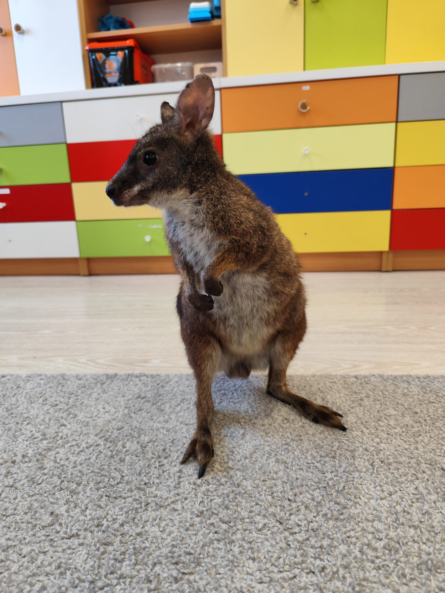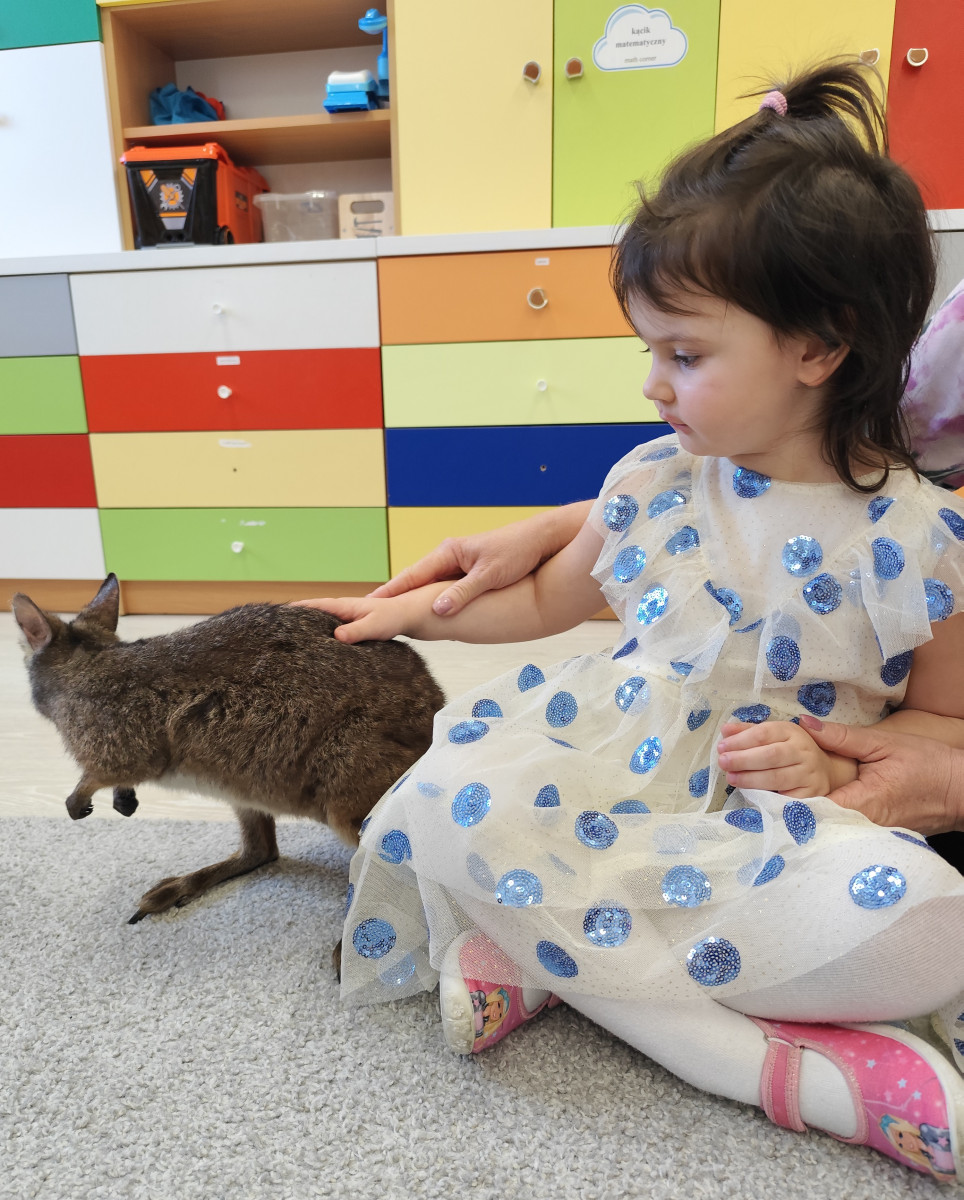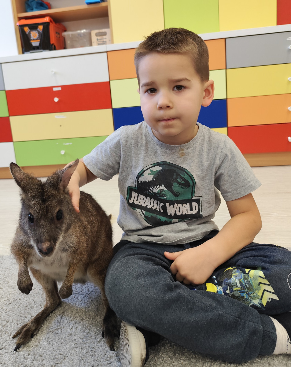 6 lutego nasze przedszkole odwiedził wyjątkowy gość – kangur Henio. Spotkanie wzbudziło wśród dzieci ogromne zainteresowanie i wiele radości. Przedszkolaki miały okazję z bliska zobaczyć kangura, dowiedzieć się wielu ciekawostek o jego życiu oraz zwyczajach. Nie zabrakło także wspólnych zdjęć, uśmiechów i niezapomnianych emocji. Dla wielu dzieci była to pierwsza okazja, aby zobaczyć tak niezwykłe zwierzę na żywo. To była bardzo ciekawa i radosna lekcja przyrody, która na długo pozostanie w pamięci naszych przedszkolaków! 🦘😊
