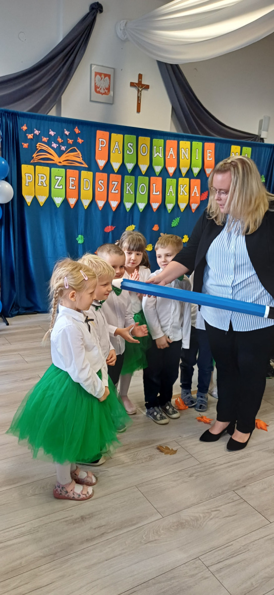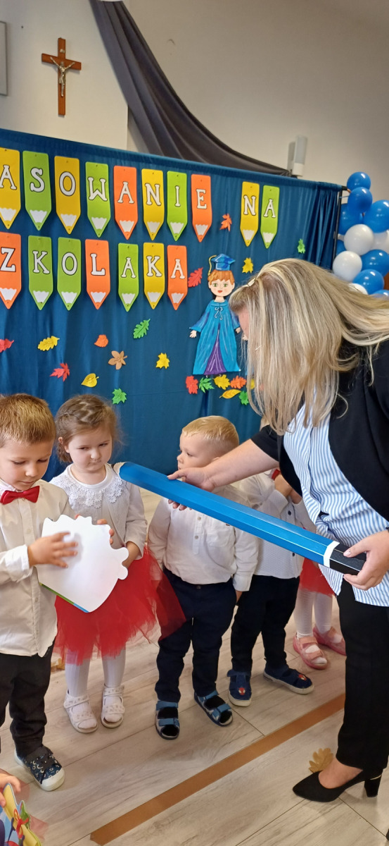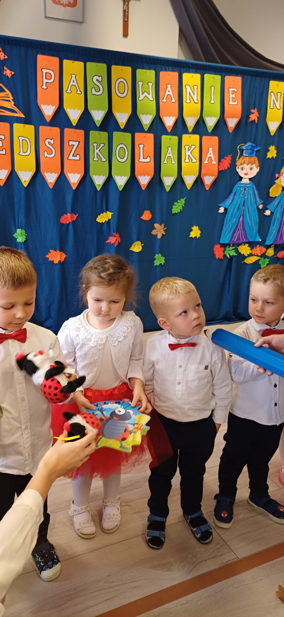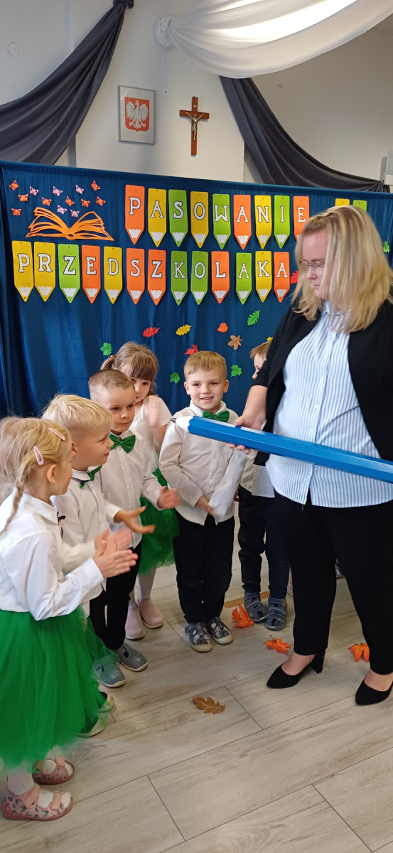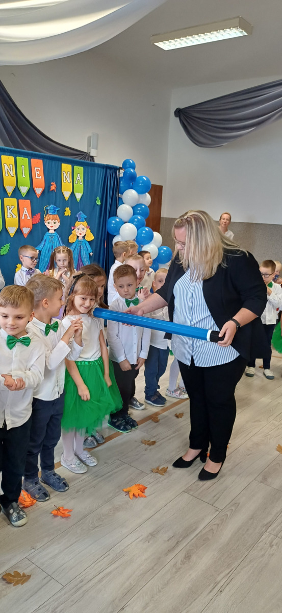 24 października w naszym przedszkolu działo się coś naprawdę magicznego. Nasze najmłodsze dzieci zostały oficjalnie przyjęte do grona przedszkolaków, a starszaki z dumą i uśmiechem wkroczyły w kolejny etap swojej przedszkolnej przygody. Były wierszyki, piosenki, tańce, a w powietrzu czuć było ogromne wzruszenie i radość. Najpiękniejszy moment? Oczywiście uroczyste „ŚLUBUJĘ!” i dotknięcie magicznym ołówkiem, które na zawsze pozostanie w pamięci dzieci (i nas – dorosłych ). Każde dziecko otrzymało pamiątkowy dyplom i mały upominek – symbol, że teraz naprawdę należy do naszej przedszkolnej rodziny. Duma i emocje wypełniały nasze serca. Kochane dzieci – życzymy Wam, by każdy dzień w przedszkolu był pełen uśmiechu, przyjaźni, zabawy i odkrywania świata z ciekawością i radością. Dziękujemy też rodzicom za obecność, wsparcie i współtworzenie tego pięknego dni.
