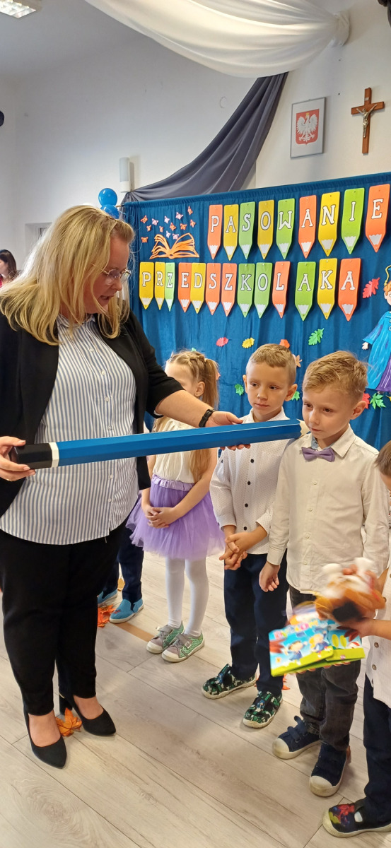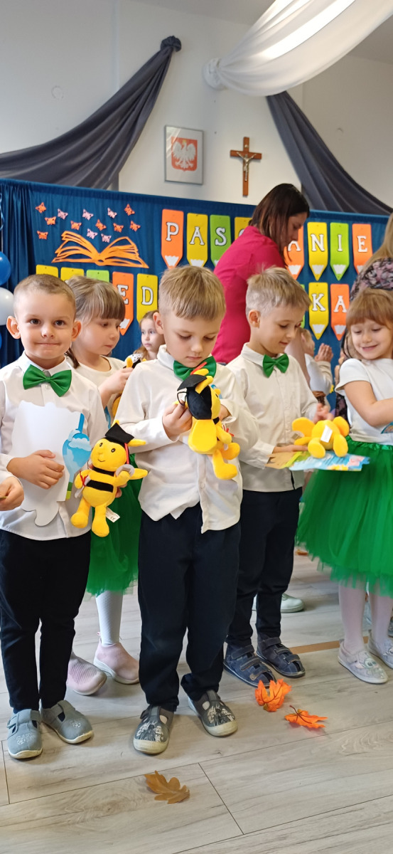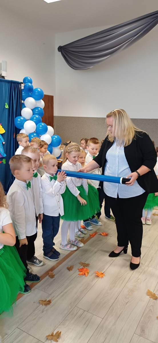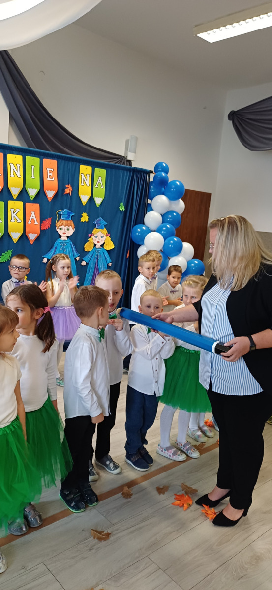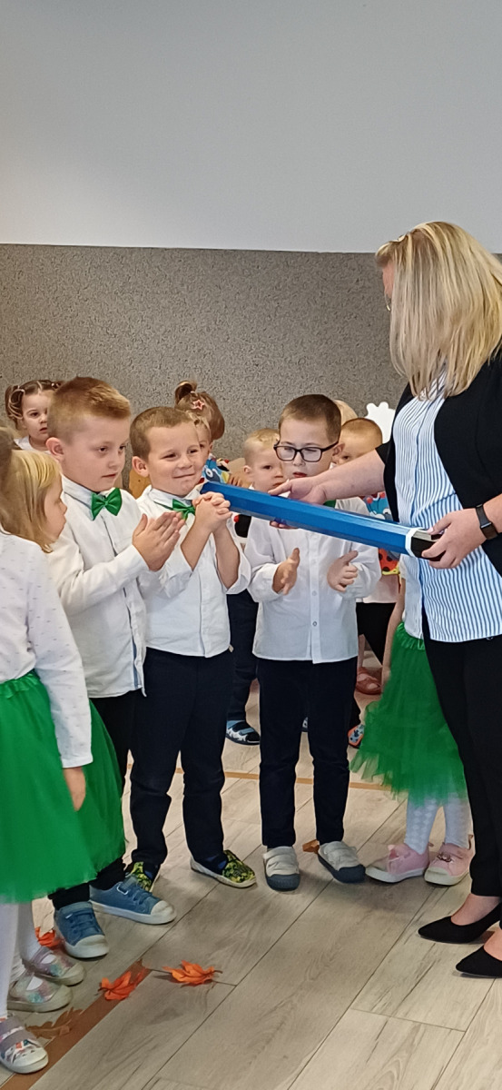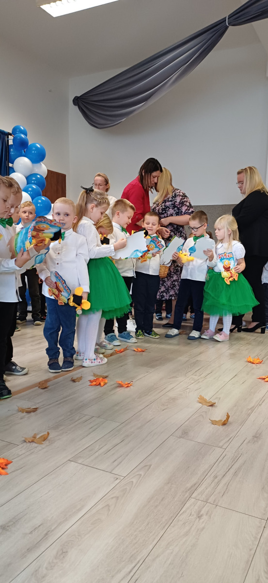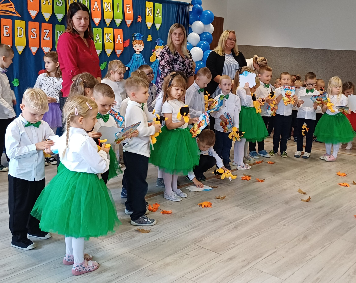 24 października w naszym przedszkolu działo się coś naprawdę magicznego. Nasze najmłodsze dzieci zostały oficjalnie przyjęte do grona przedszkolaków, a starszaki z dumą i uśmiechem wkroczyły w kolejny etap swojej przedszkolnej przygody. Były wierszyki, piosenki, tańce, a w powietrzu czuć było ogromne wzruszenie i radość. Najpiękniejszy moment? Oczywiście uroczyste „ŚLUBUJĘ!” i dotknięcie magicznym ołówkiem, które na zawsze pozostanie w pamięci dzieci (i nas – dorosłych ). Każde dziecko otrzymało pamiątkowy dyplom i mały upominek – symbol, że teraz naprawdę należy do naszej przedszkolnej rodziny. Duma i emocje wypełniały nasze serca. Kochane dzieci – życzymy Wam, by każdy dzień w przedszkolu był pełen uśmiechu, przyjaźni, zabawy i odkrywania świata z ciekawością i radością. Dziękujemy też rodzicom za obecność, wsparcie i współtworzenie tego pięknego dni.