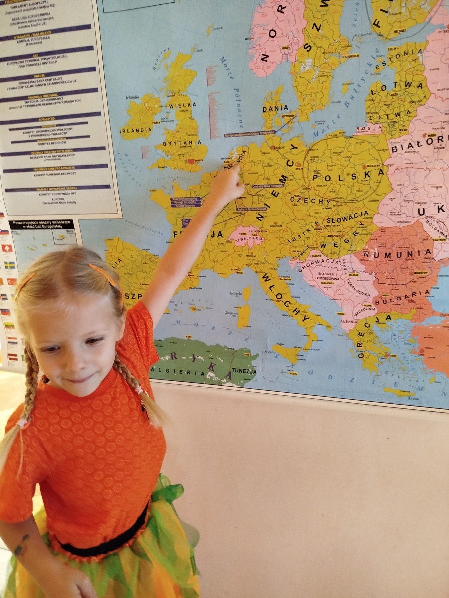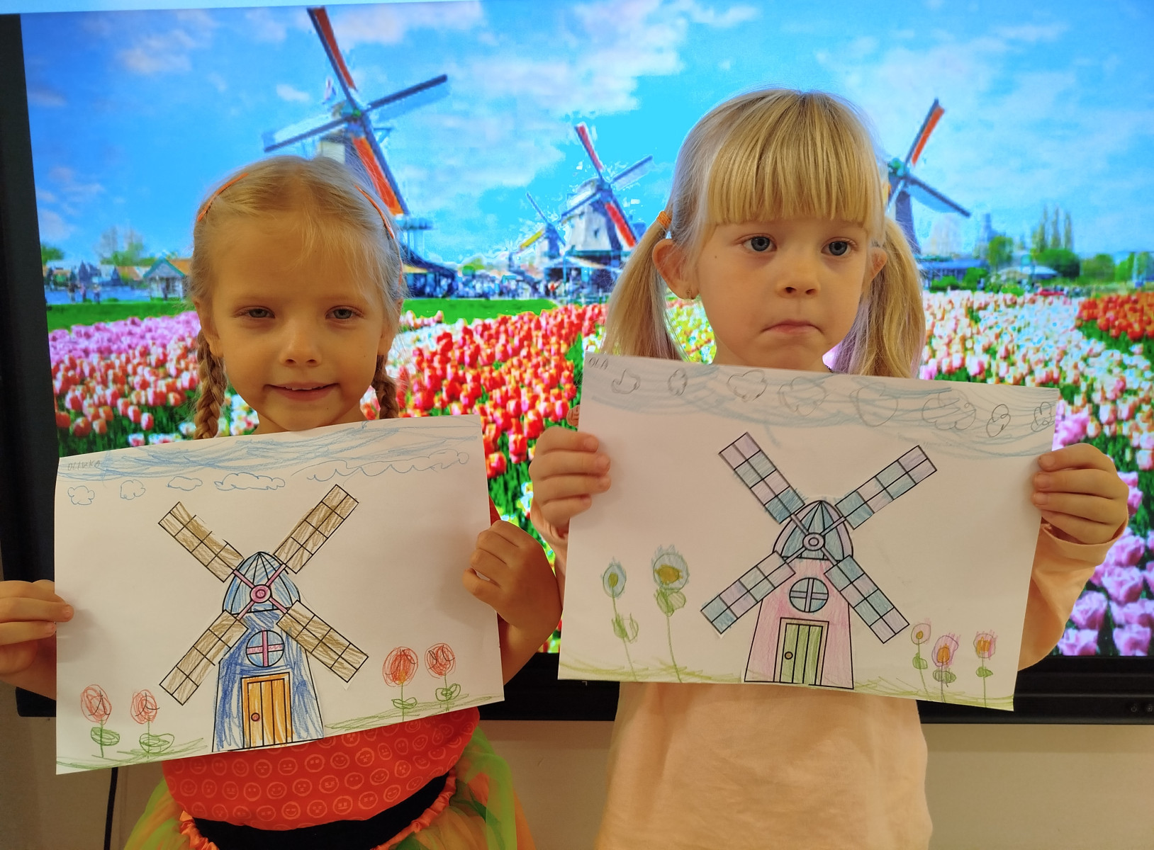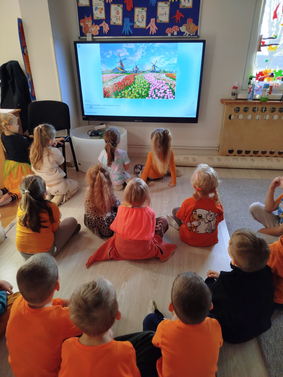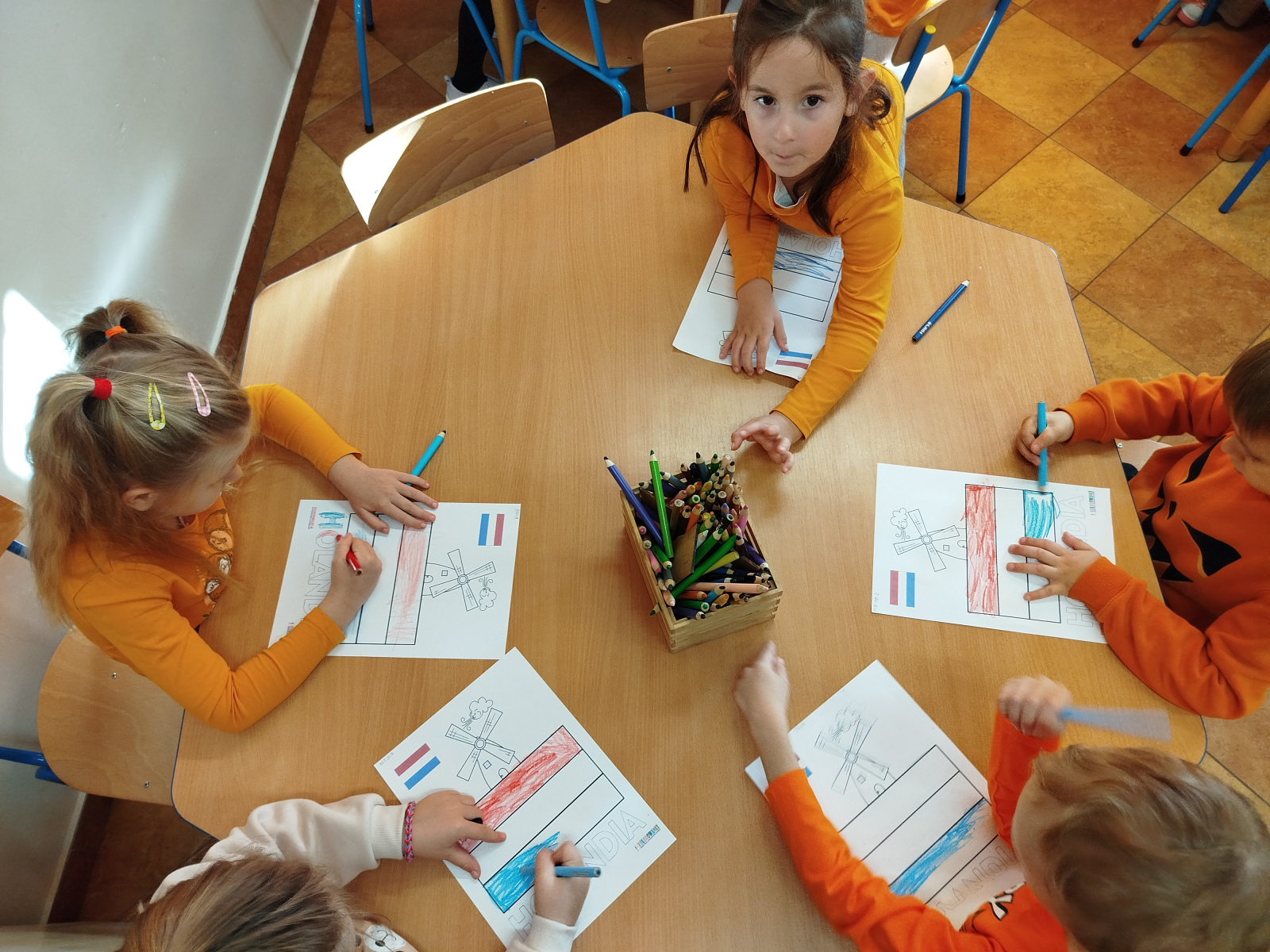 Dzieci starannie wykonały swoje prace, ćwicząc jednocześnie motorykę małą, koncentrację i dokładność. Efekty? Piękne, kolorowe flagi oraz wiatraki, z których każde dziecko było bardzo dumne! 🖍️✨ Nie zabrakło też zabaw ruchowych i rozmów o tym, co wyróżnia Holandię na mapie Europy. Dziękujemy za przygotowanie pomarańczowych strojów — stworzyliśmy prawdziwie holenderski klimat!