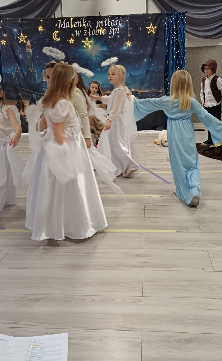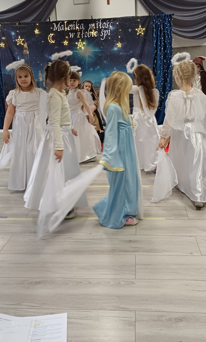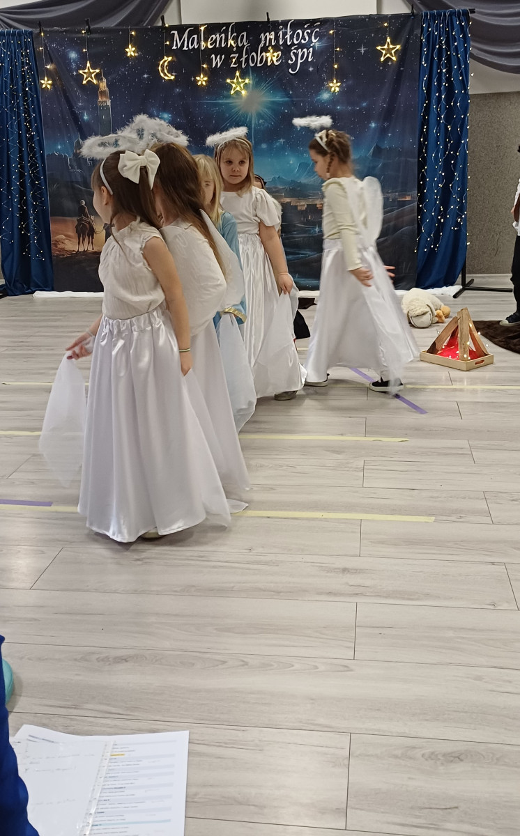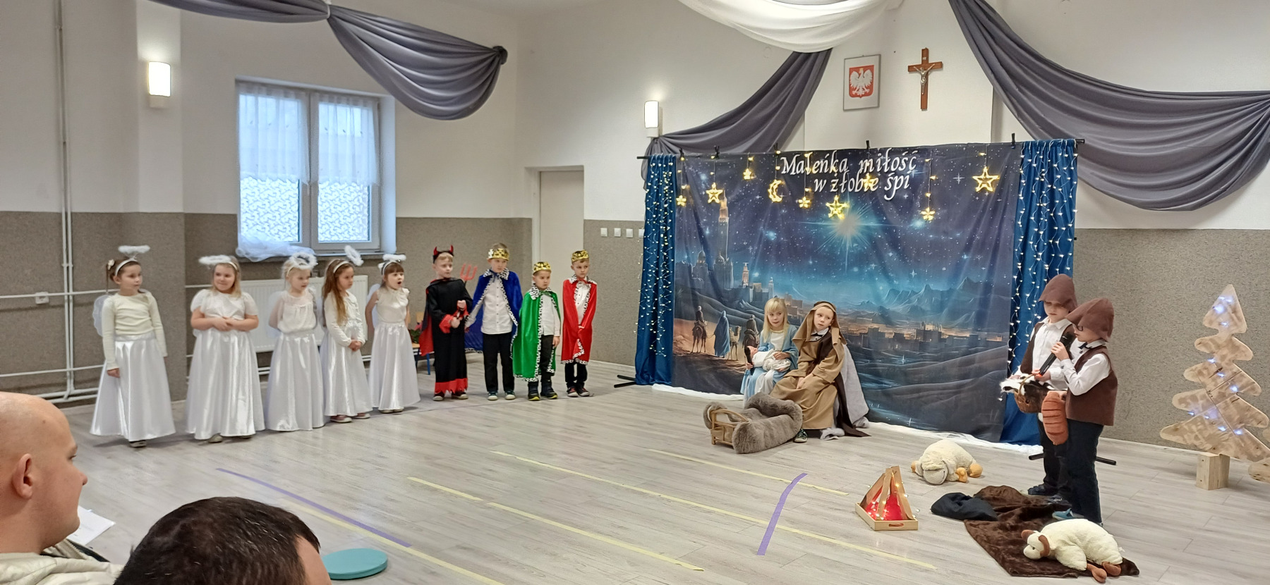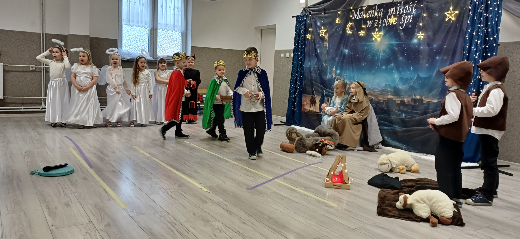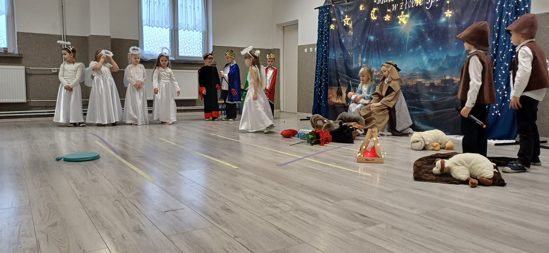 19 grudnia również w naszym przedszkolu odbyła się Uroczystość Jasełek, która od wielu lat wpisana jest do kalendarza uroczystości organizowanych w naszym przedszkolu. Wszyscy czekamy na Boże Narodzenie, domowa krzątanina, zakupy, porządki, zapach pierników i świerkowych gałązek, błyszczące kolorami tęczy świecidełka towarzyszą grudniowym nastrojom. Okres ten uwielbiają dzieci , które przygotowują ozdoby choinkowe, dekoracje świąteczne i uczą się kolęd, pastorałek, wierszy. Atmosferę Świąt dodatkowo oddały przedstawienia Jasełkowe w wykonaniu dzieci z wszystkich grup. W specjalnie przygotowanych kostiumach oraz w pięknej scenografii nawiązującej do Betlejem przedstawili sceny narodzin Chrystusa. Mali aktorzy z dużym przejęciem i poświęceniem wiernie odtworzyli swoje role.
