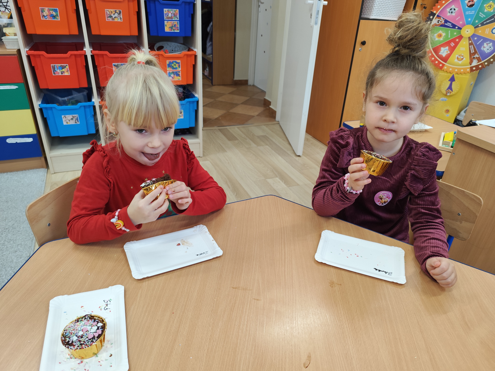 Maluchy mieszały, dekorowały, próbowały aromatycznych, piernikowych babeczek, a przede wszystkim – świetnie się bawiły. 🎨👩🍳