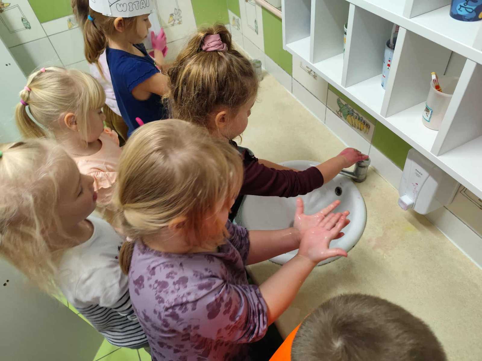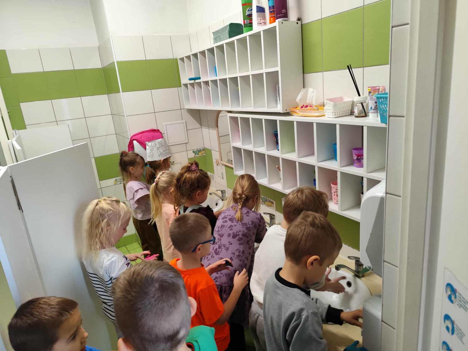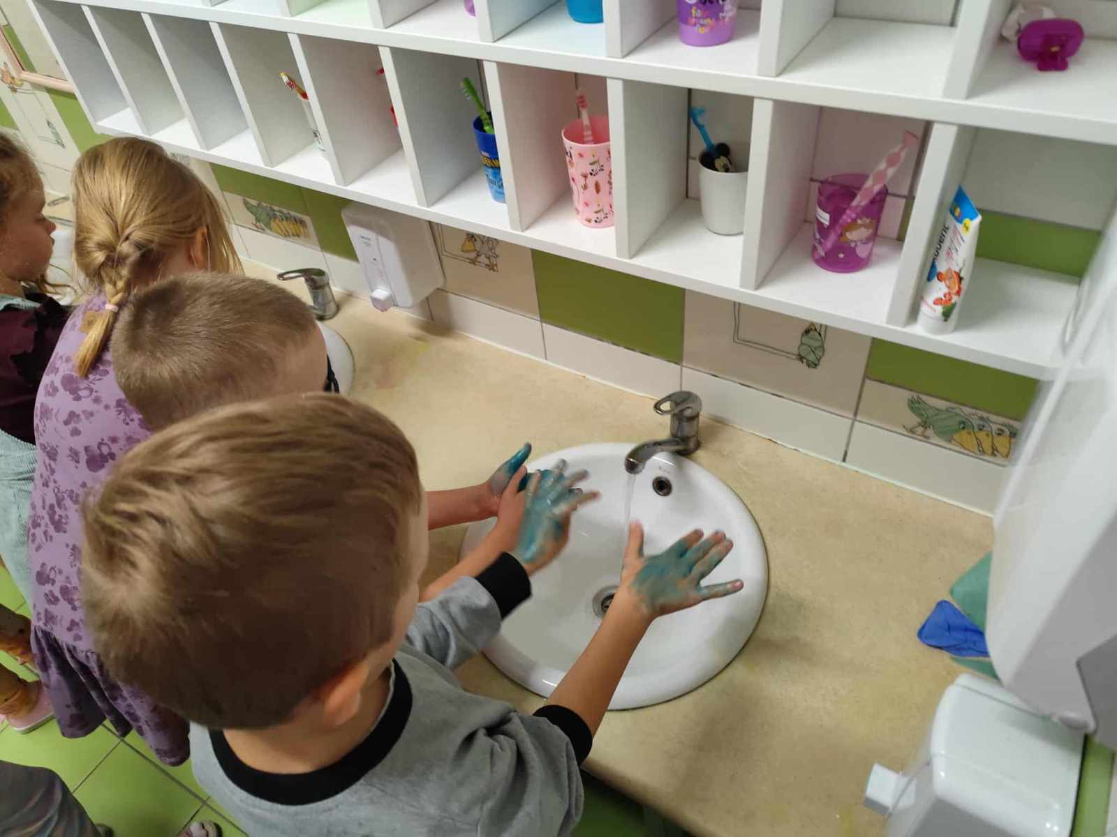 15 października nasze przedszkolaki zamieniły się w małych ekspertów od higieny! Z okazji Światowego Dnia Mycia Rąk rozmawialiśmy o tym, dlaczego mycie rąk jest takie ważne i kiedy należy to robić. Dzieci uczyły się prawidłowej techniki mycia rąk – była piana, dużo śmiechu i kolorowe plakaty! Bo czyste ręce to zdrowe ręce! Dziękujemy naszym dzielnym przedszkolakom za zaangażowanie i wspólną zabawę edukacyjną!
