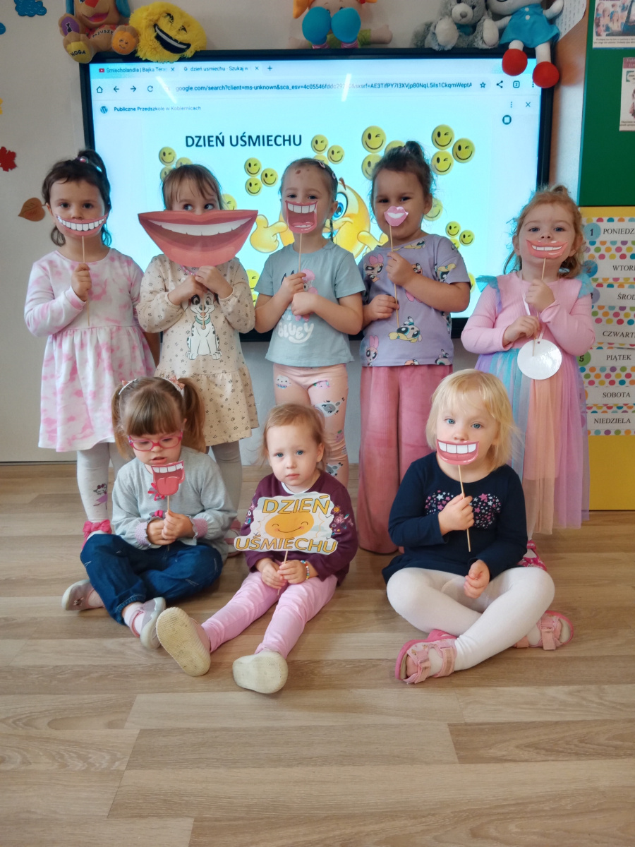 06 pażdziernika w naszym przedszkolu było jeszcze więcej radości niż zwykle! Świętowaliśmy Światowy Dzień Uśmiechu — dzień, który przypomina nam, jak wielką moc ma uśmiech dziecka! Były tańce, zabawy, śmiech bez końca i mnóstwo pozytywnej energii. Nasze sale zamieniły się w kolorowe krainy radości! Uśmiech to najpiękniejszy język, który rozumie każdy!