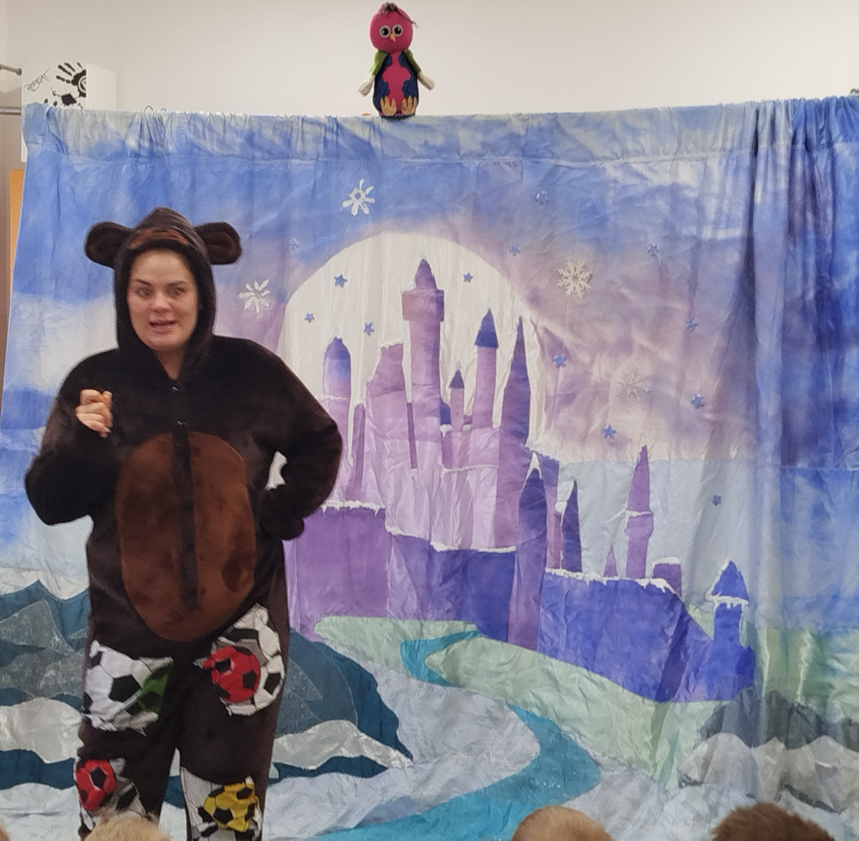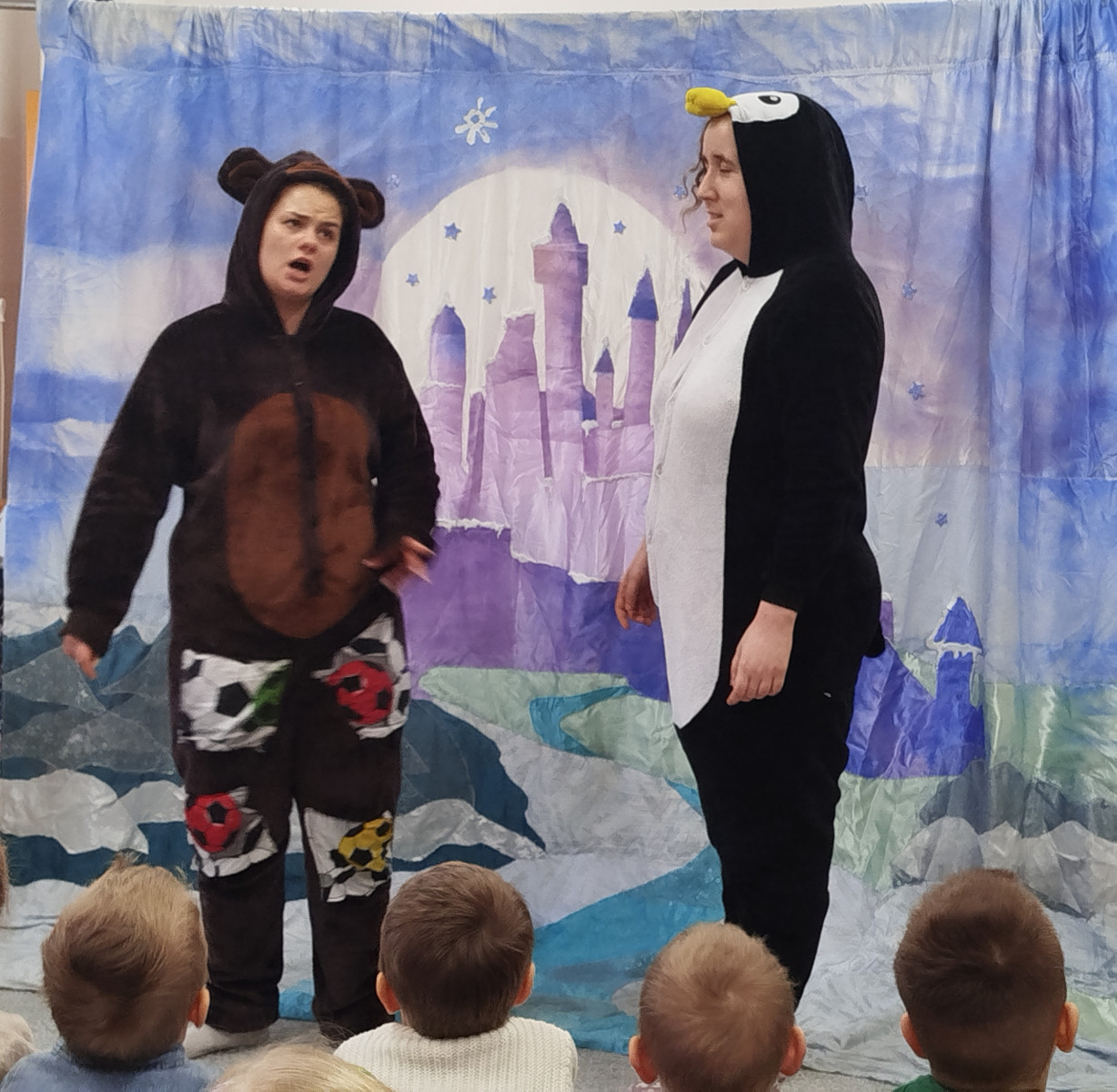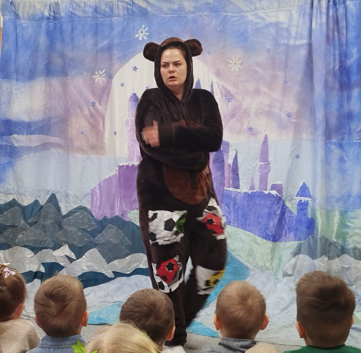 Dzieci z ogromnym zaangażowaniem śledziły przygody bohaterów, którzy pokazali nam, że zima wcale nie jest straszna – wystarczy ciepła czapka, dobry humor i odrobina odwagi! Było dużo śmiechu, wspólnego śpiewania i radosnych emocji 🎶😊 Spektakl przypomniał nam także, jak ważne jest odpowiednie ubieranie się zimą oraz aktywne spędzanie czasu na świeżym powietrzu. Dziękujemy artystom za wspaniałe przedstawienie i już nie możemy się doczekać kolejnych spotkań z teatrem! 🎭✨