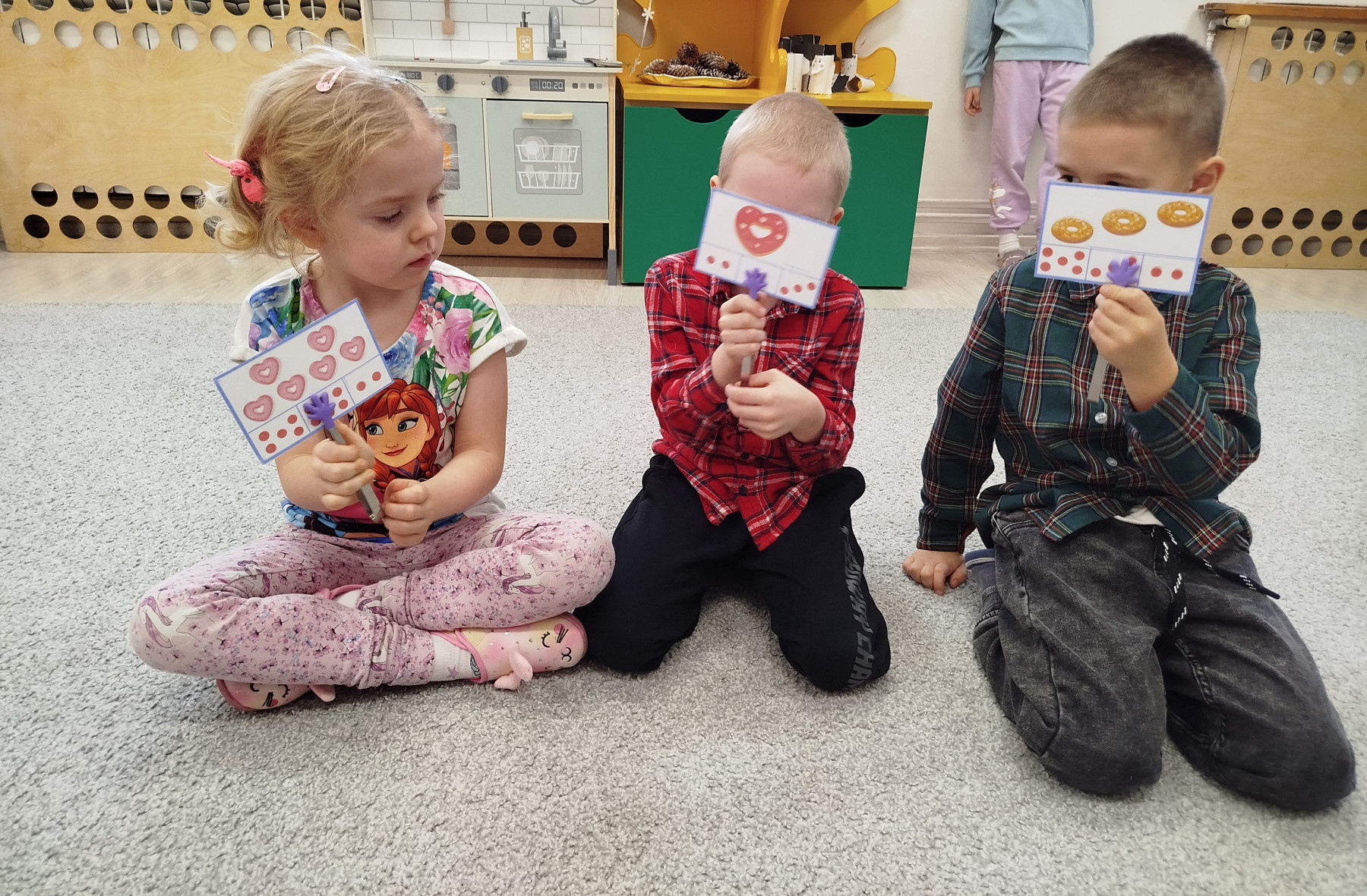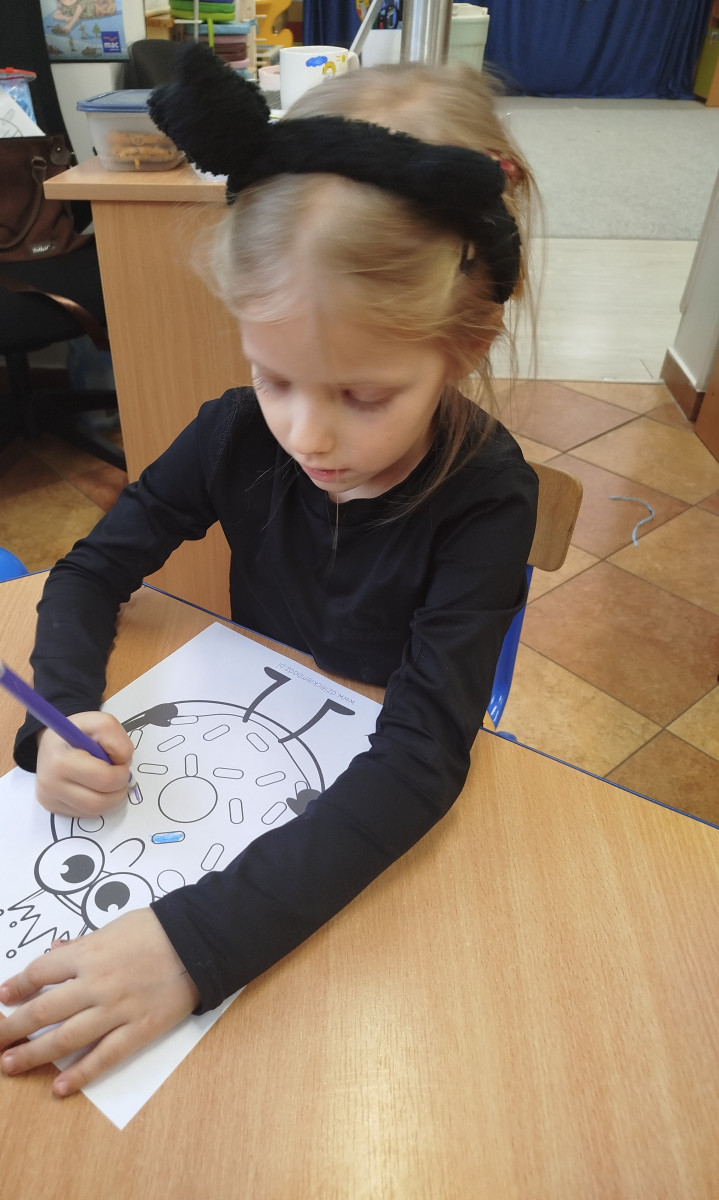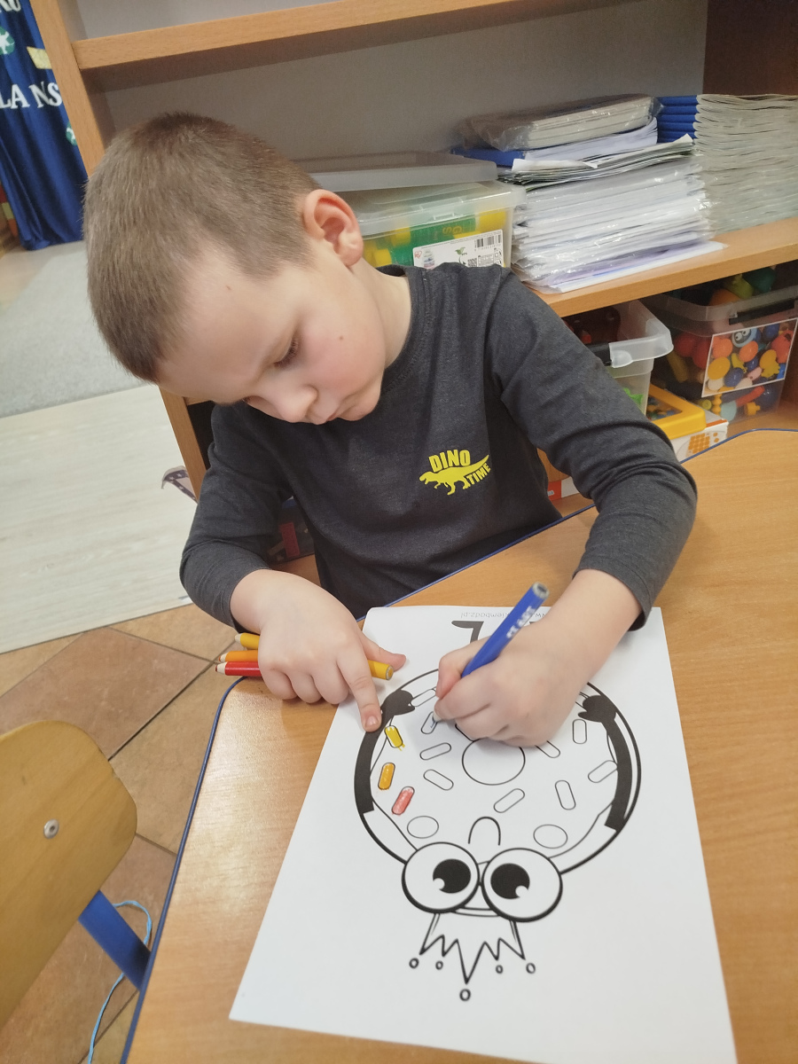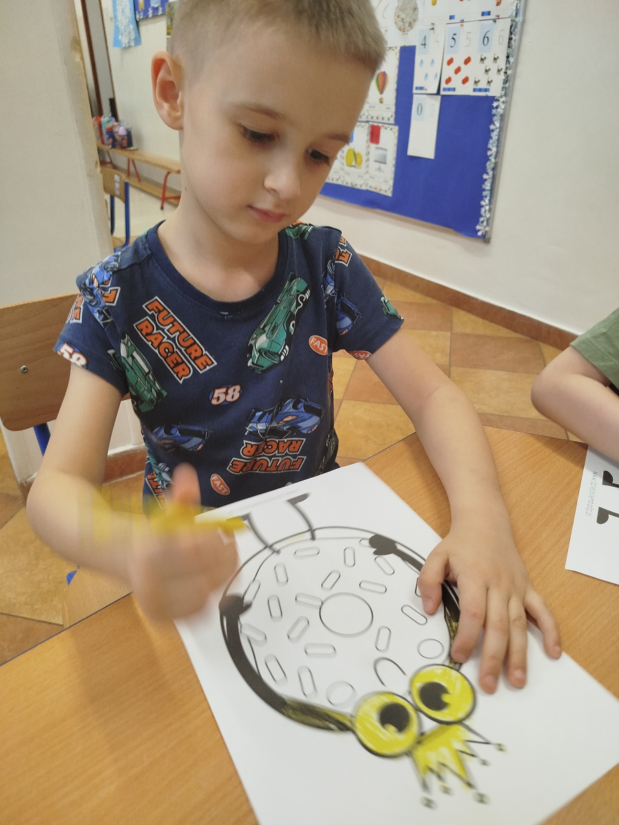 Nasze Przedszkolaki wyruszyły na poszukiwania pączków 🕵️♀️🕵️♂️ – odnajdywały je zgodnie z opisem, ćwicząc uważne słuchanie i logiczne myślenie. Następnie układały pączki według podanych sekwencji – było kolorowo, słodko i bardzo matematycznie! 🎨🔢 Na koniec czekało na nas nie lada wyzwanie ruchowe – dzieci naśladowały „pozycje pączka” z kart, świetnie się przy tym bawiąc i rozwijając koordynację ruchową 🤸♀️🤸♂️