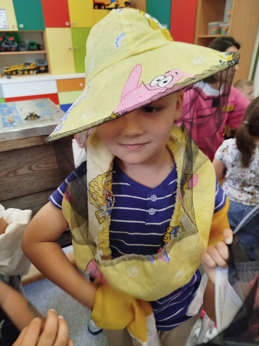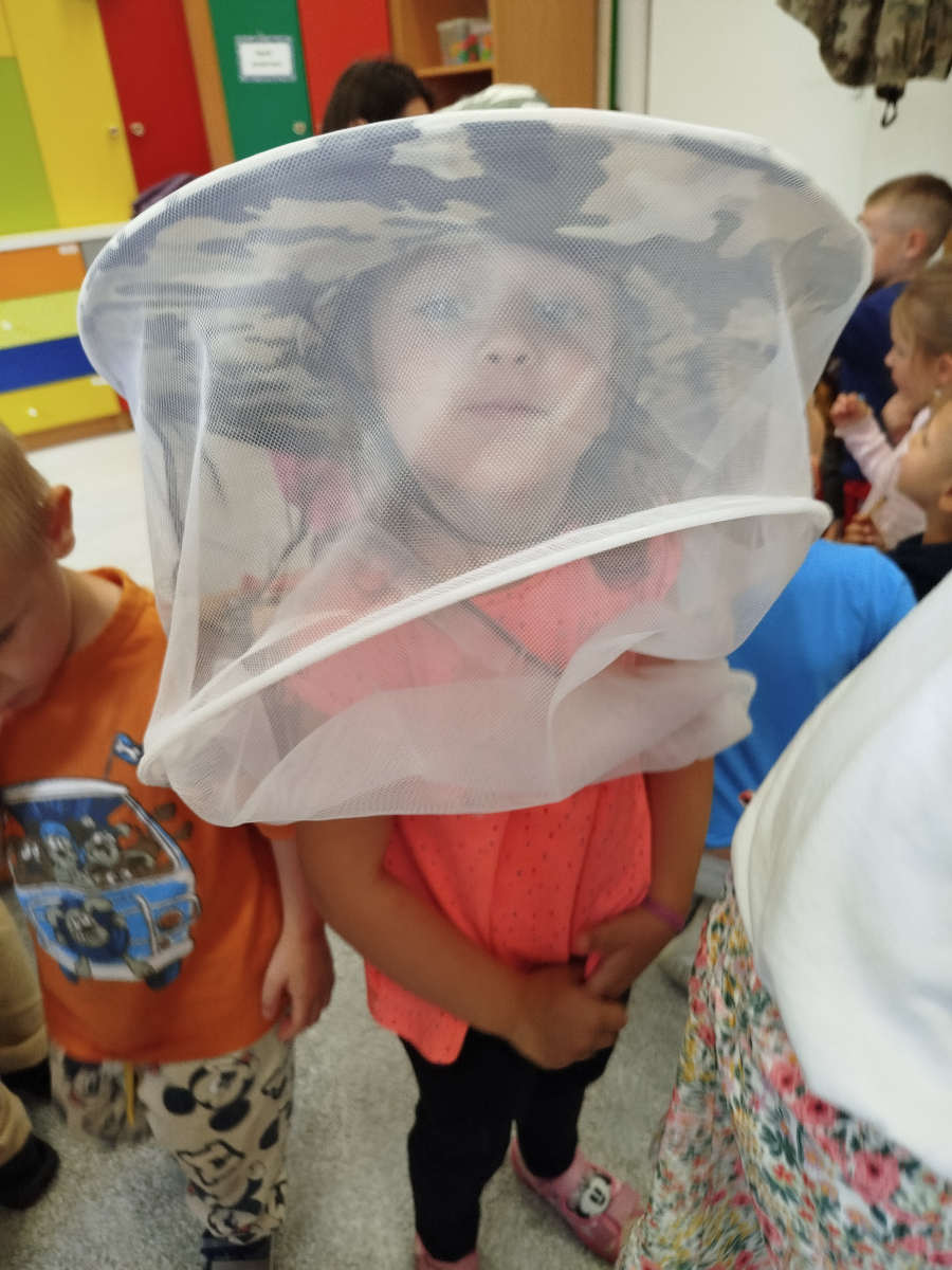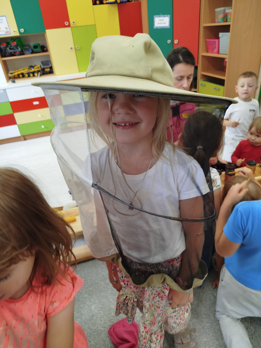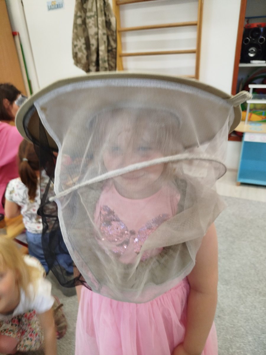 9 maja dzieci ze wszystkich grup w przedszkolu, uczestniczyły w warsztatach pszczelarskich. Zajęcia te miały na celu zapoznanie dzieci z życiem pszczół i ich ogromną rolą jaką pełnią w środowisku naturalnym. Podczas warsztatów przedszkolaki poznały pracę pszczelarza, dowiedziały się jak wybiera się miód z ula. Dowiedziały się jak wygląda podział ról i organizacja życia w pszczelej rodzinie. Poznały zasady bezpiecznego kontaktu z owadami. Przedszkolaki miały okazję spróbować różnych rodzajów miodu oraz oglądały świece.