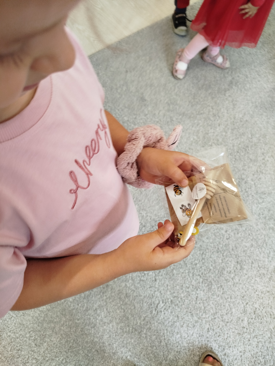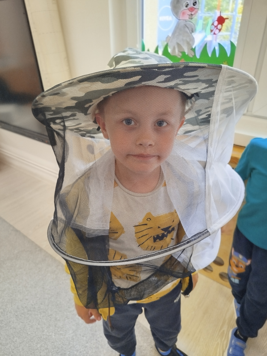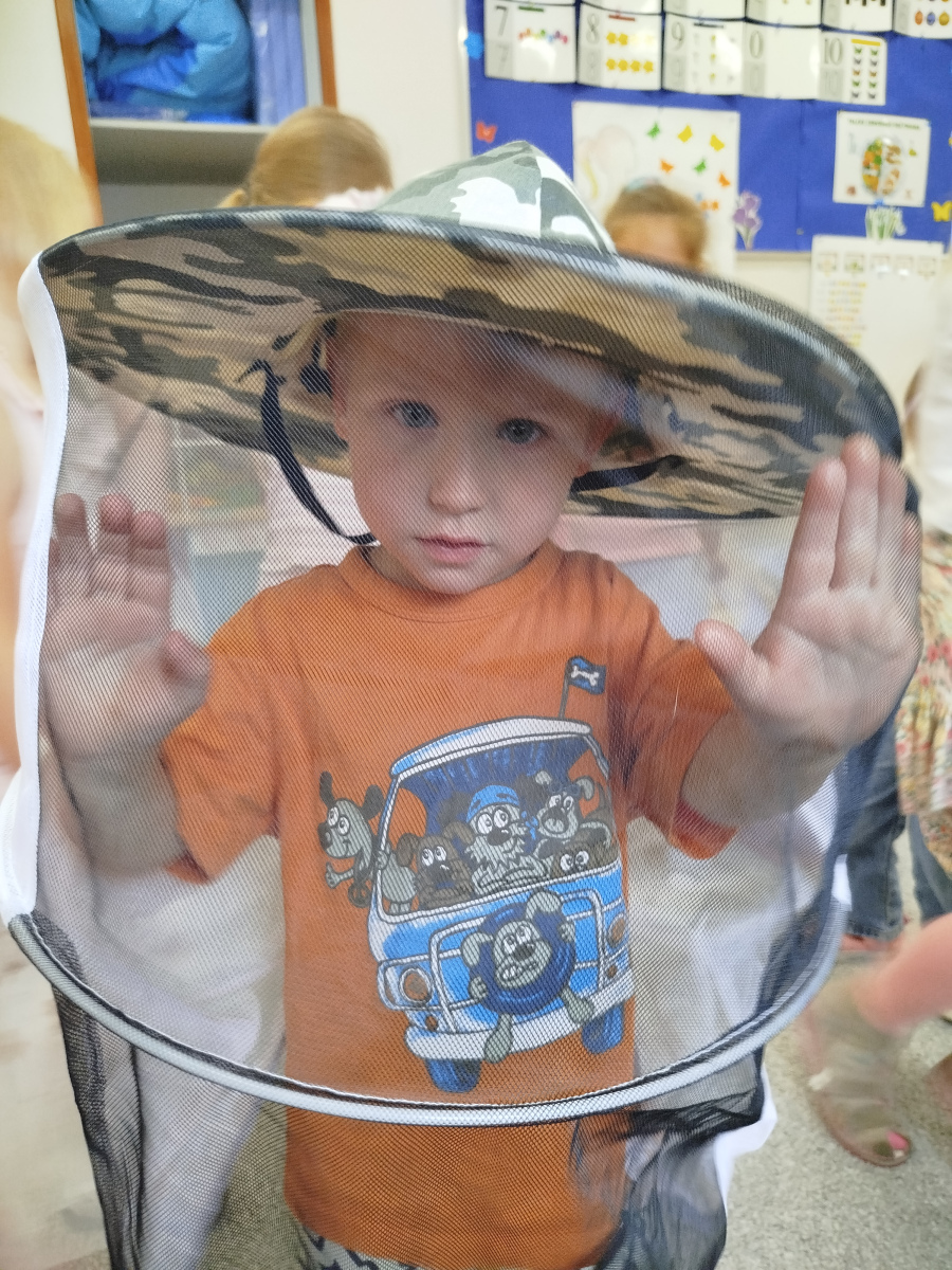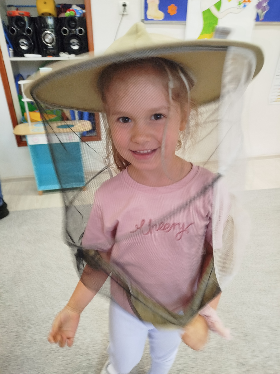 9 maja dzieci ze wszystkich grup w przedszkolu, uczestniczyły w warsztatach pszczelarskich. Zajęcia te miały na celu zapoznanie dzieci z życiem pszczół i ich ogromną rolą jaką pełnią w środowisku naturalnym. Podczas warsztatów przedszkolaki poznały pracę pszczelarza, dowiedziały się jak wybiera się miód z ula. Dowiedziały się jak wygląda podział ról i organizacja życia w pszczelej rodzinie. Poznały zasady bezpiecznego kontaktu z owadami. Przedszkolaki miały okazję spróbować różnych rodzajów miodu oraz oglądały świece.
