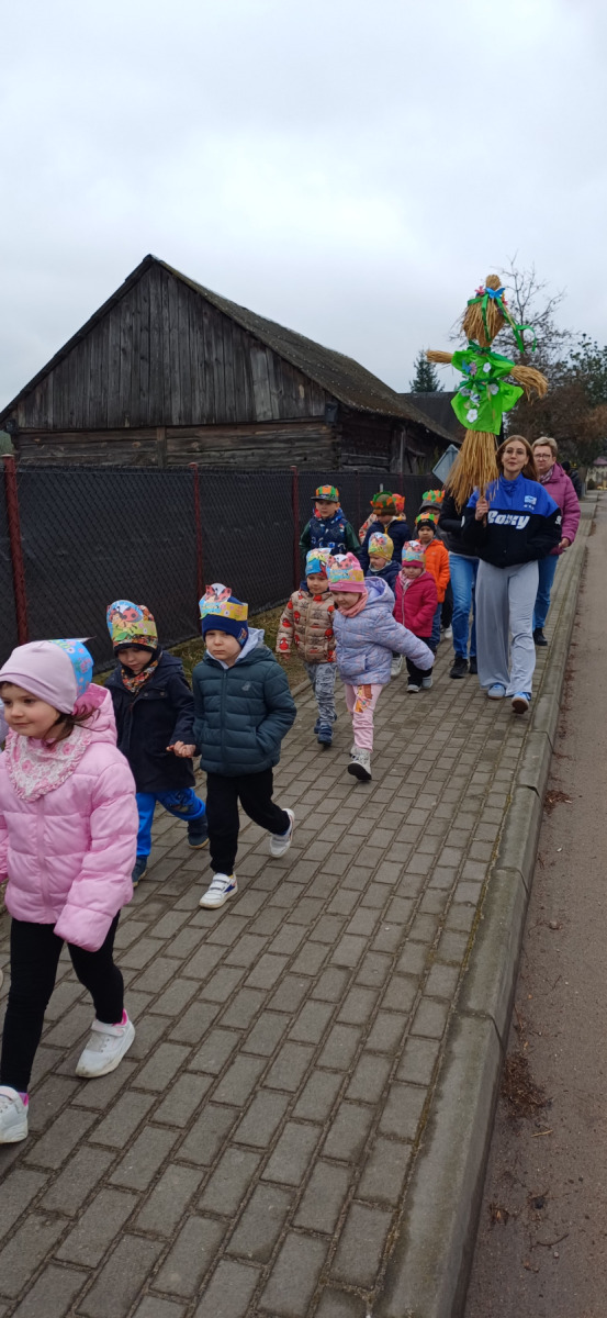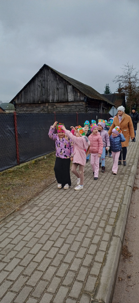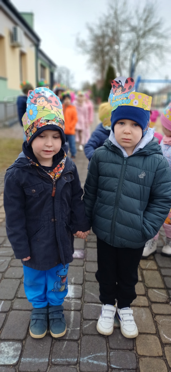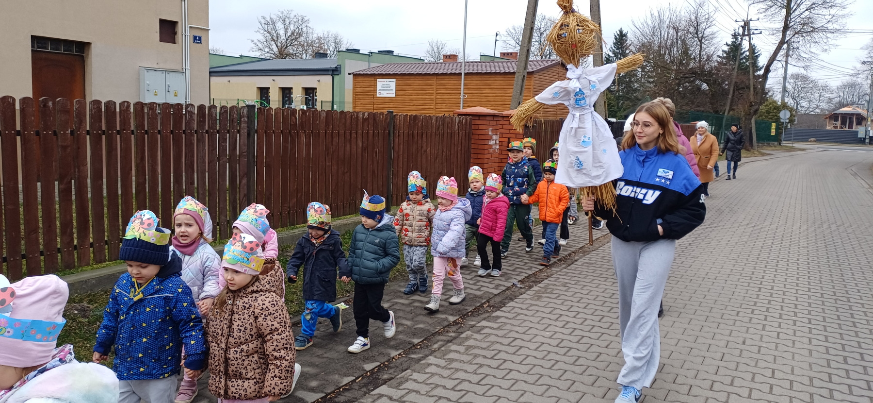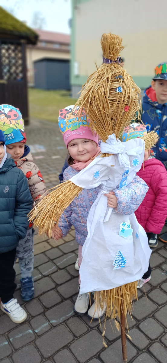 Najwięcej uśmiechów wywołał korowód z Marzanną! 👧👦 Dzieci przeszły przez wieś, śpiewając wiosenne piosenki 🎵🌸 i witając Wiosnę jak należy! 🌱🌞 Radość, śmiech i pierwsze wiosenne promienie słońca – tak wyglądał nasz Dzień Wiosny! 🌸🐝💛
