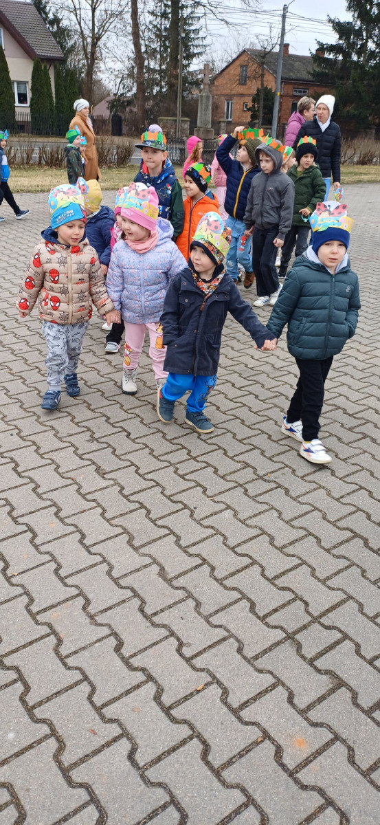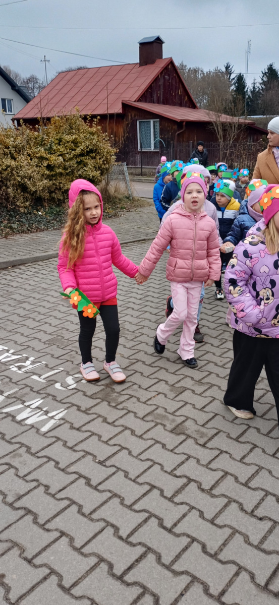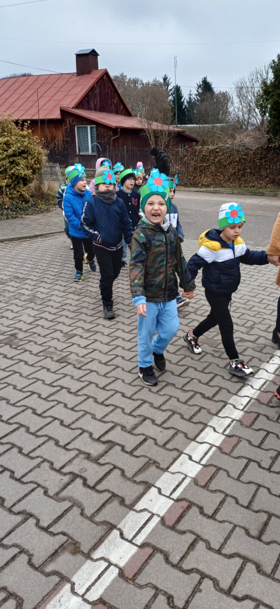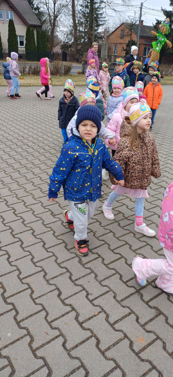 Najwięcej uśmiechów wywołał korowód z Marzanną! 👧👦 Dzieci przeszły przez wieś, śpiewając wiosenne piosenki 🎵🌸 i witając Wiosnę jak należy! 🌱🌞 Radość, śmiech i pierwsze wiosenne promienie słońca – tak wyglądał nasz Dzień Wiosny! 🌸🐝💛