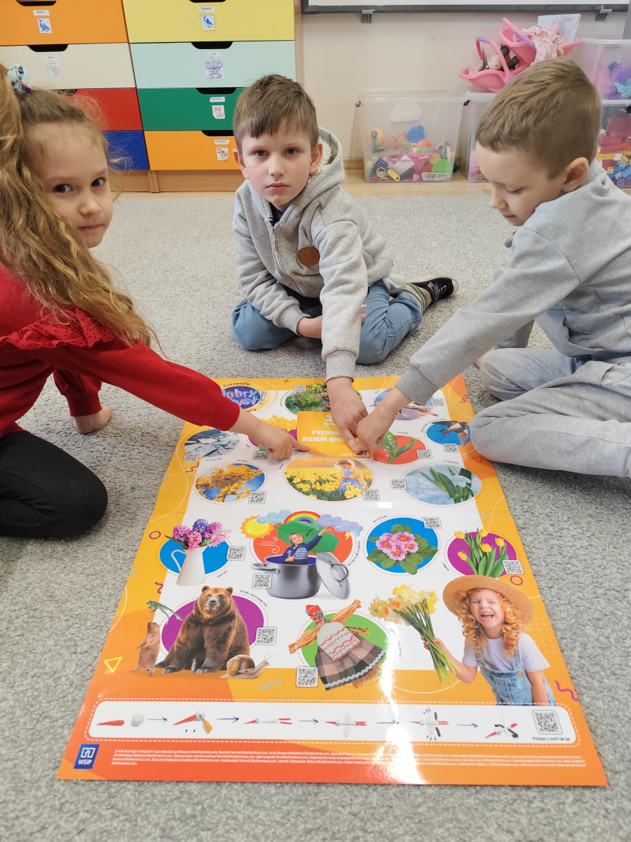 20 marca w naszym przedszkolu było kolorowo i radośnie! 🐝💛 Grupa Pszczółki przygotowała piękny plakat Pani Wiosny 🌸, a wszystkie dzieci poznały zwiastuny wiosny i wysłuchały wiersza „Przyjście Wiosny” Jana Brzechwy 📖🎶.Nie zabrakło też twórczych działań – przedszkolaki wykonały piękne prace plastyczne: wiosenne kwiaty 🎨🌼, które teraz zdobią nasze przedszkole!