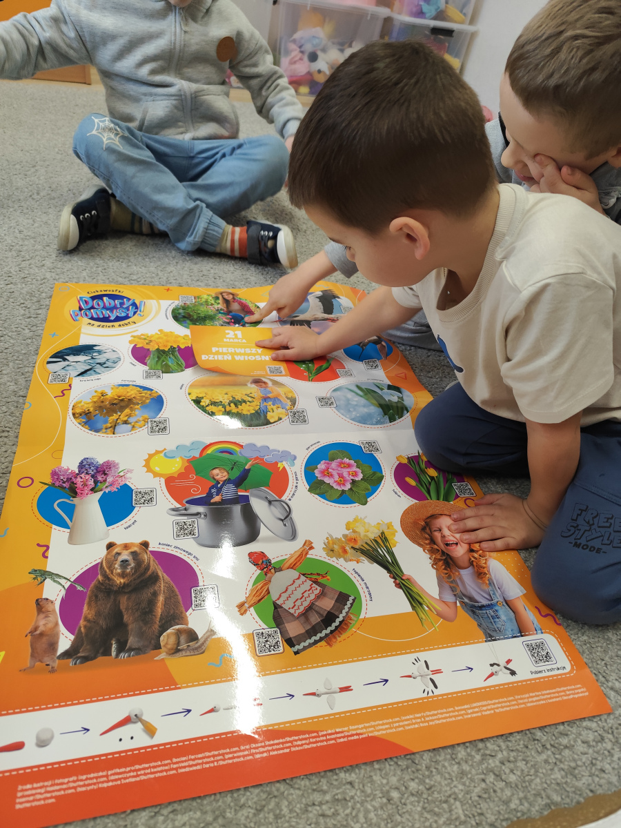 20 marca w naszym przedszkolu było kolorowo i radośnie! 🐝💛 Grupa Pszczółki przygotowała piękny plakat Pani Wiosny 🌸, a wszystkie dzieci poznały zwiastuny wiosny i wysłuchały wiersza „Przyjście Wiosny” Jana Brzechwy 📖🎶.Nie zabrakło też twórczych działań – przedszkolaki wykonały piękne prace plastyczne: wiosenne kwiaty 🎨🌼, które teraz zdobią nasze przedszkole!