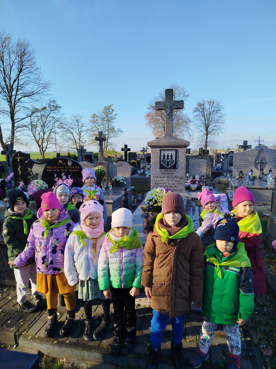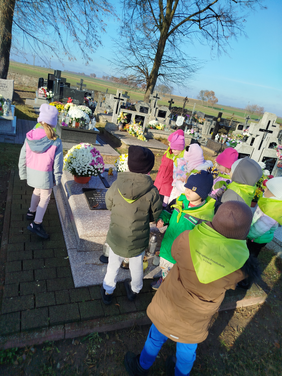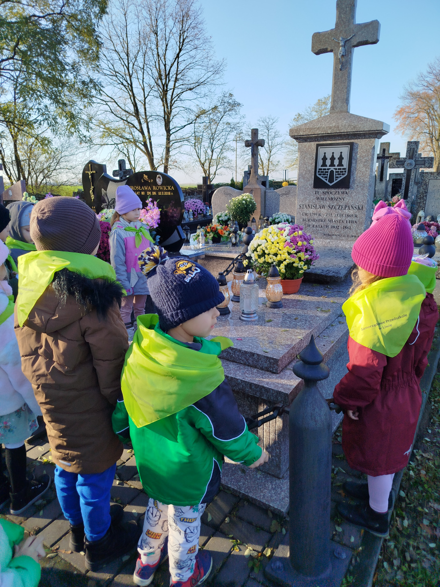 4 listopada przedszkolaki z grupy ,,Sówki’’ odwiedzili cmentarz w Liwie. Wyjście przedszkolaków na cmentarz to okazja do nauki o tradycjach związanych ze świętem zmarłych oraz pielęgnowanie pamięci o tych, którzy odeszli, a w szczególności o bohaterach narodowych.