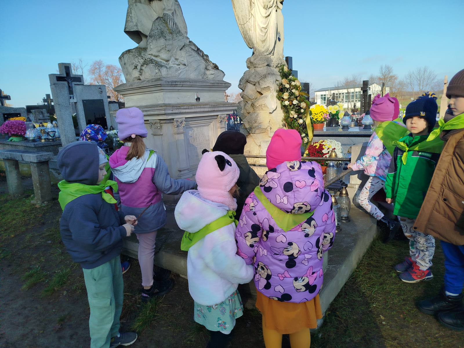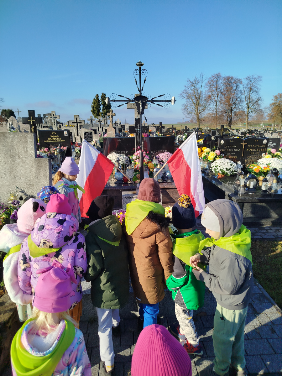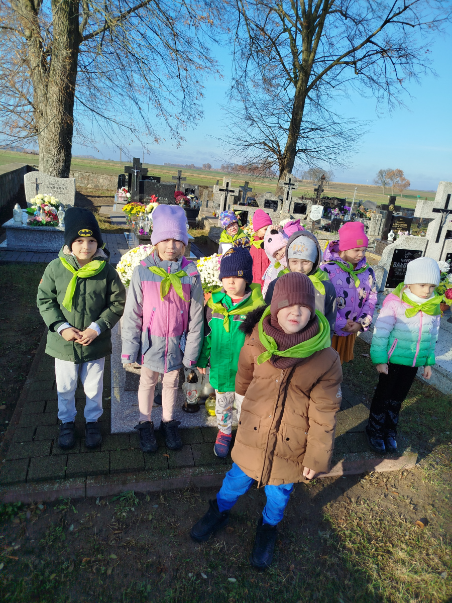 4 listopada przedszkolaki z grupy ,,Sówki’’ odwiedzili cmentarz w Liwie. Wyjście przedszkolaków na cmentarz to okazja do nauki o tradycjach związanych ze świętem zmarłych oraz pielęgnowanie pamięci o tych, którzy odeszli, a w szczególności o bohaterach narodowych.