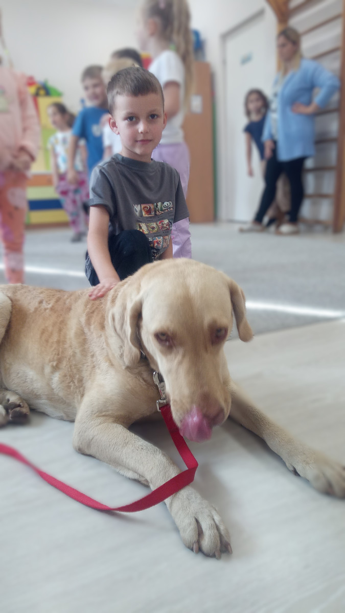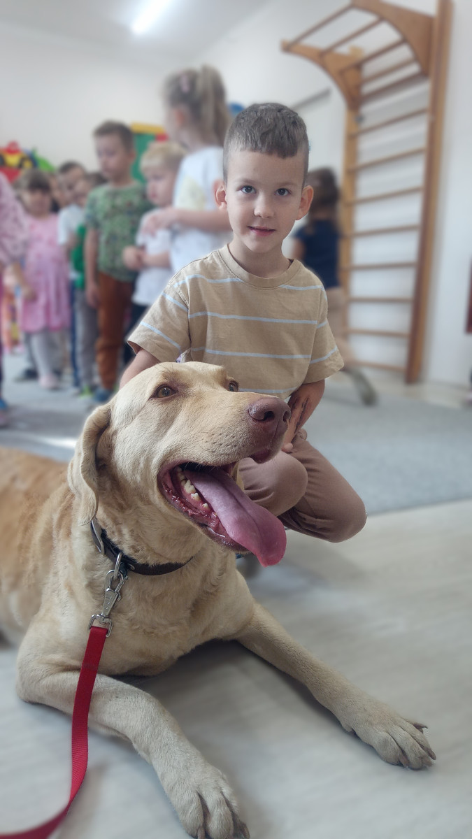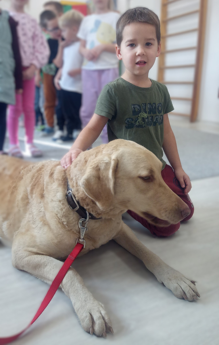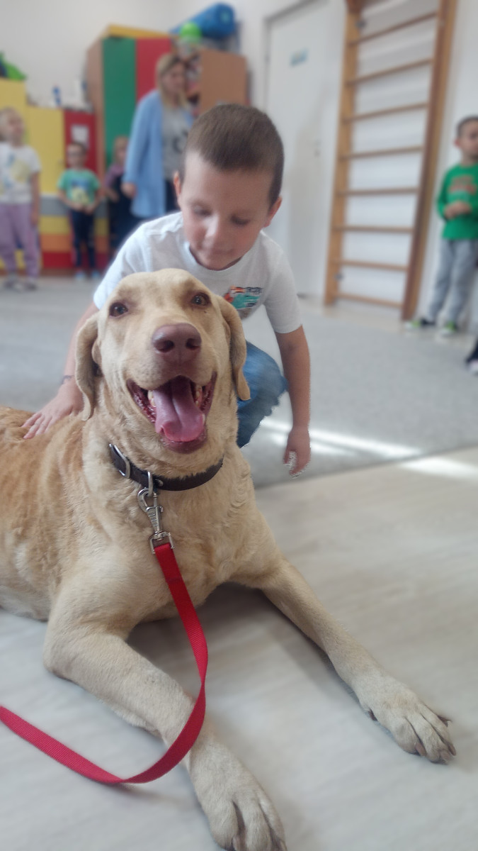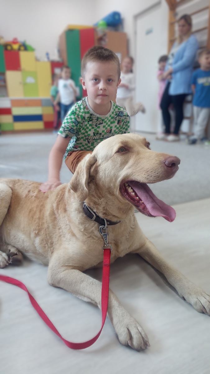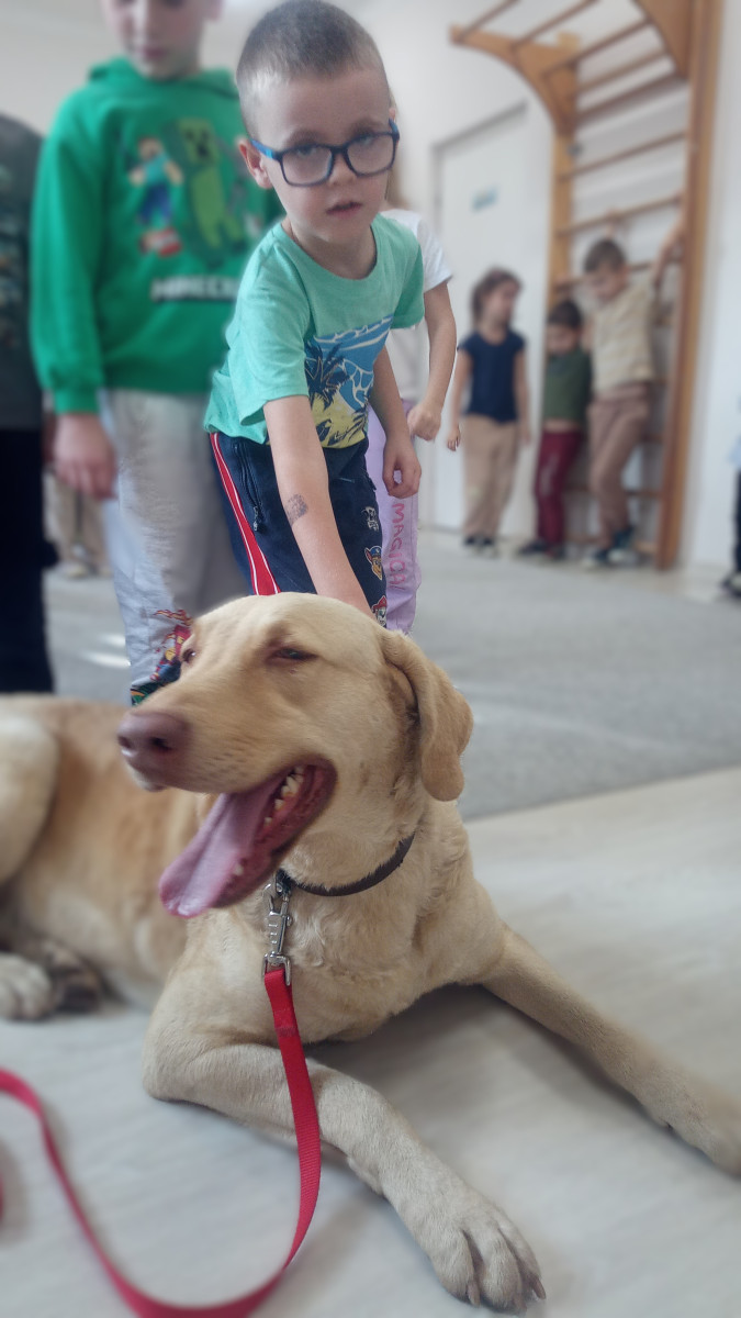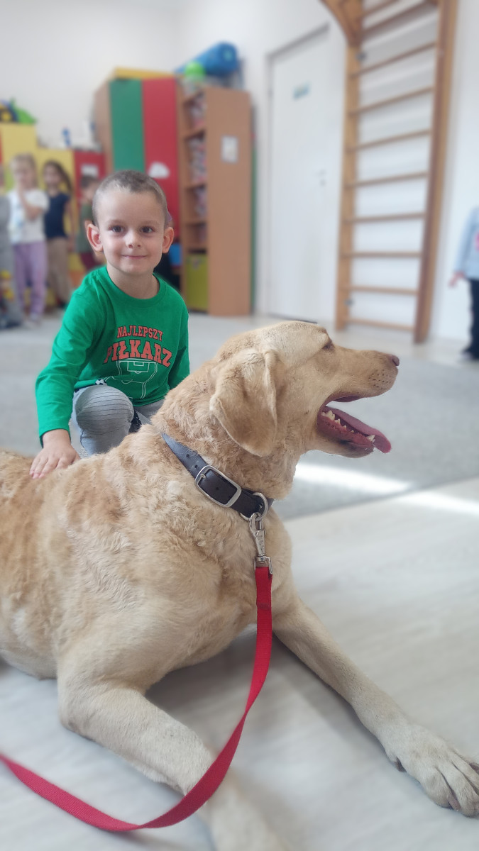 30 października nasze przedszkole odwiedził Pan Maciek Osiński – technik weterynarii. Podczas spotkania dzieci dowiedziały się, na czym polega praca weterynarza, jak dbać o zdrowie i dobre samopoczucie zwierząt domowych oraz jak rozpoznawać ich potrzeby. Największą atrakcją była wizyta Zjawy – przedszkolaki z ogromnym zainteresowaniem słuchały Pana Maćka i chętnie zadawały pytania. Dziękujemy Panu Maćkowi za ciekawe zajęcia, poświęcony czas i mnóstwo pozytywnej energii! To była niezwykle pouczająca i inspirująca lekcja o odpowiedzialności i miłości do zwierząt.