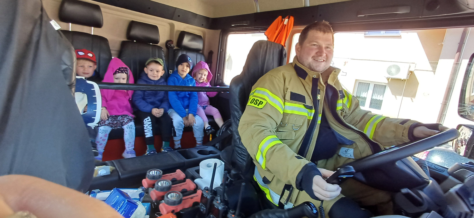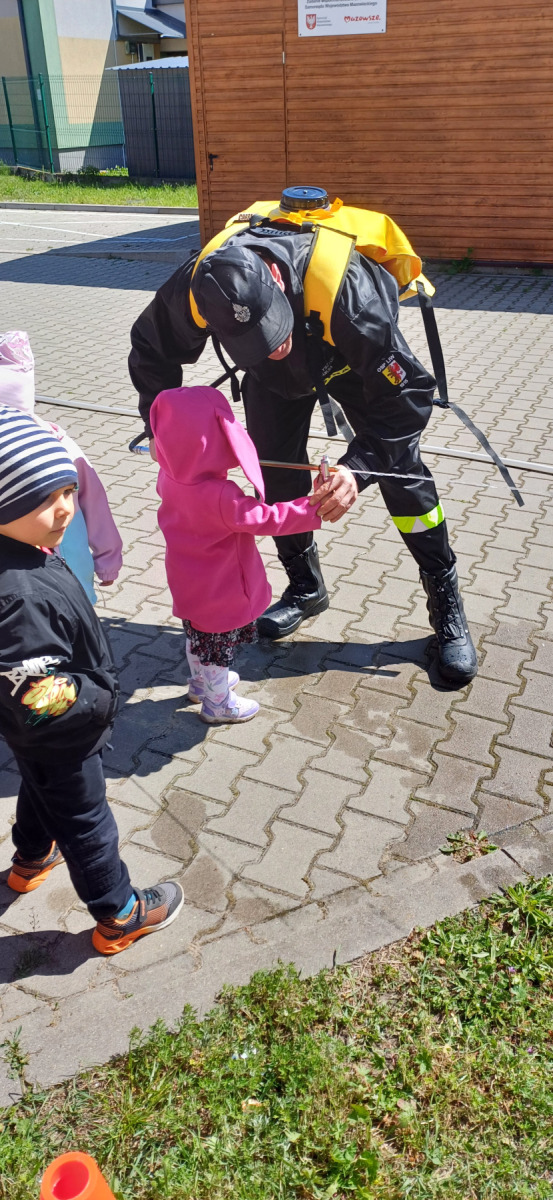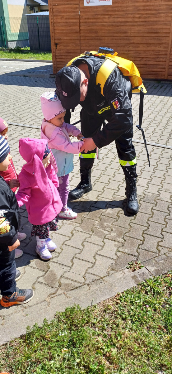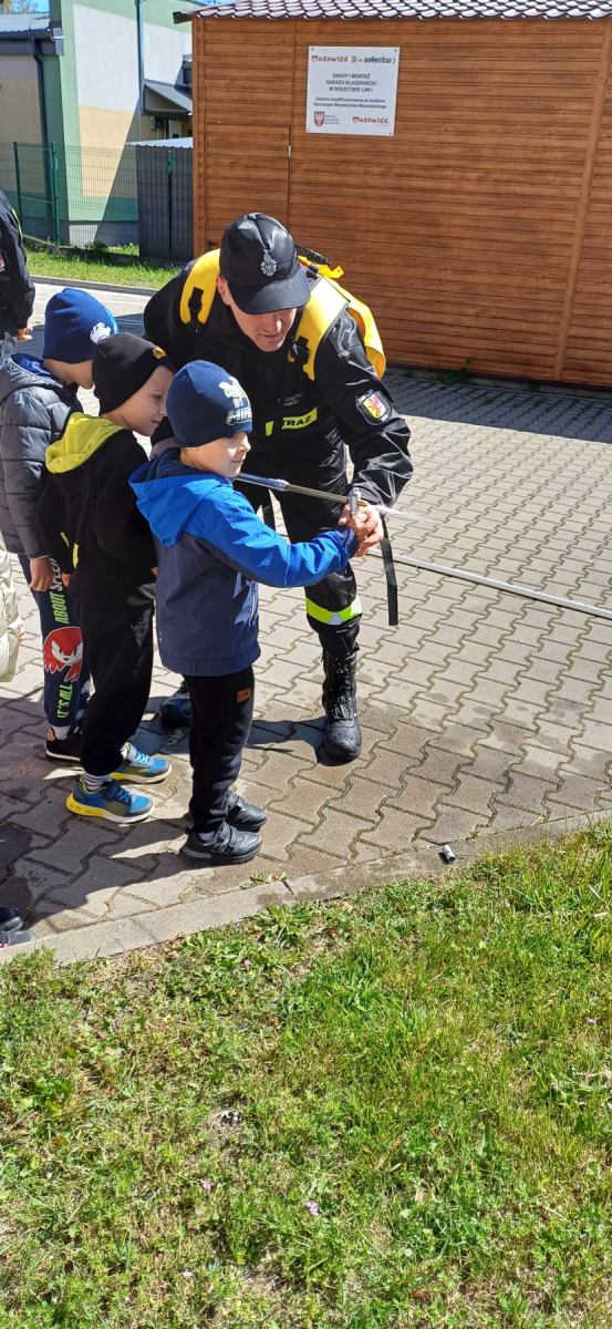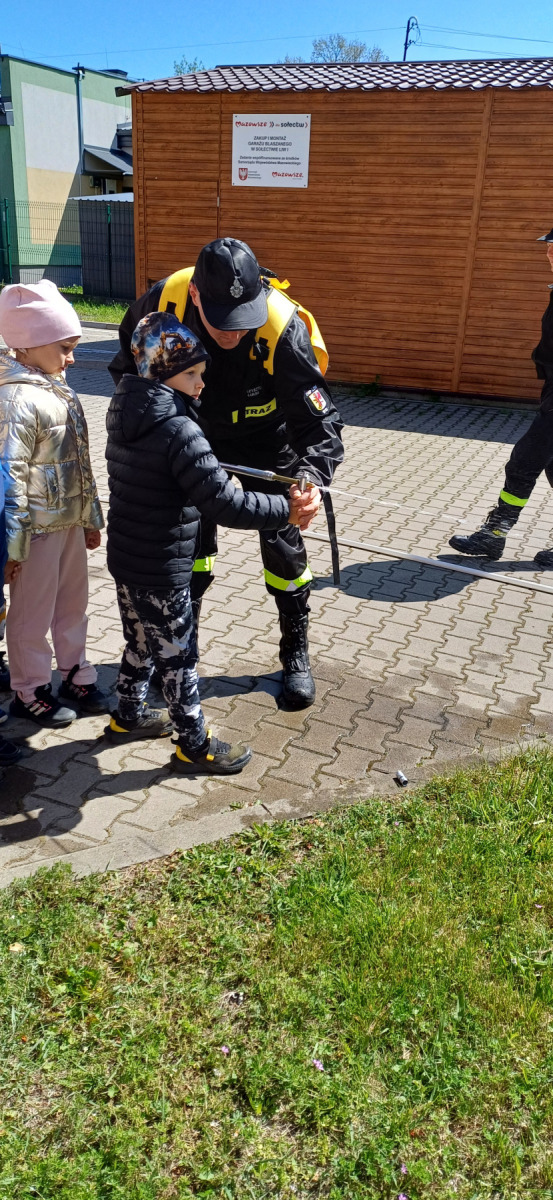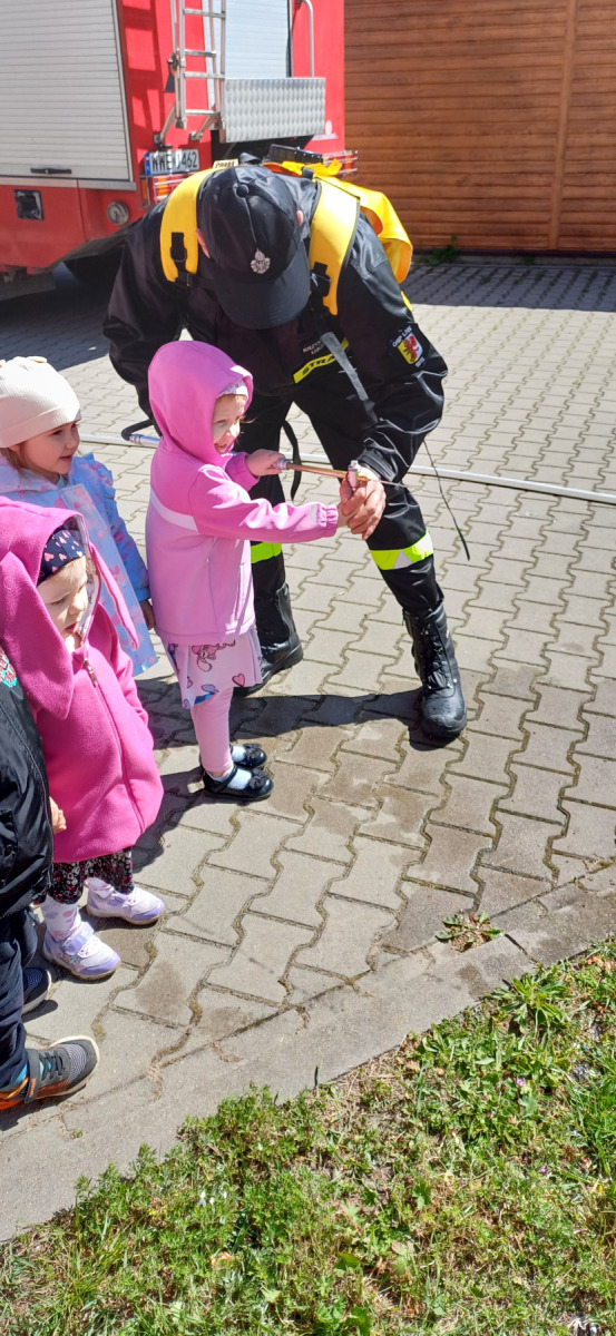 7 maja nasze przedszkolaki miały okazję spotkać się ze strażakami Ochotniczej Straży Pożarnej w Liwie. Przedszkolaki dowiedziały się o trudnej i niebezpiecznej pracy strażaków, która nie polega tylko na gaszeniu pożarów, ale również na udzielaniu pomocy ludziom podczas powodzi, usuwaniu skutków wypadków samochodowych oraz wichur. Dzieci miały okazję zobaczyć specjalistyczne wozy strażackie wraz z całym wyposażeniem, sprzęt gaśniczy i ratunkowy oraz strój w jaki ubierają się strażacy do akcji. Dużą atrakcją było przymierzanie hełmów oraz możliwość przejechania się samochodem strażackim. Wizyta w straży pożarnej to doskonała forma edukacyjnego uświadomienia dzieci o zasadach bezpieczeństwa oraz właściwego zachowania się w przypadku pożaru, wypadku i innych zagrożeń. Dziękujemy strażakom za miłe i pouczające spotkanie. Życzymy wszystkim dalszej efektywnej służby i skutecznej realizacji nawet najtrudniejszych zadań.