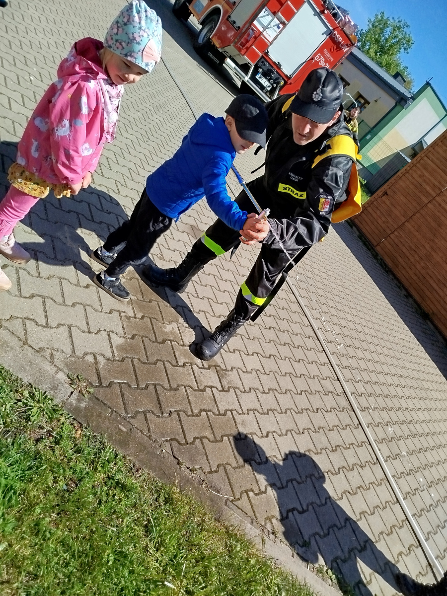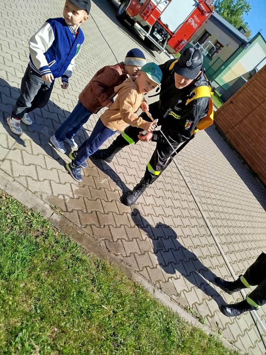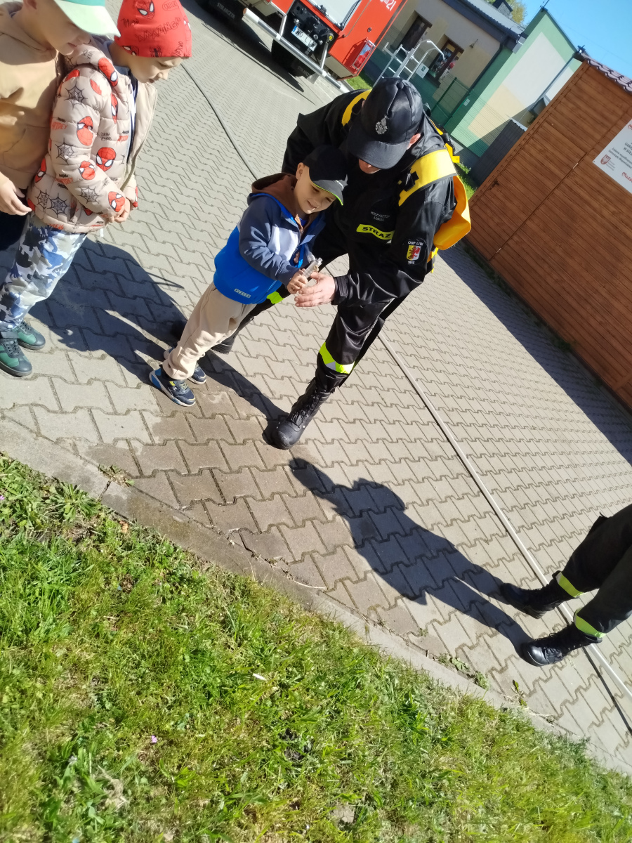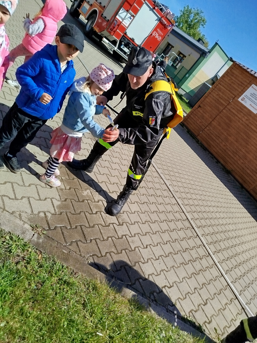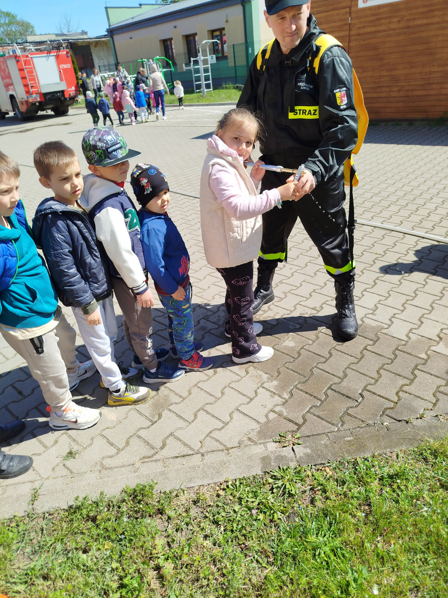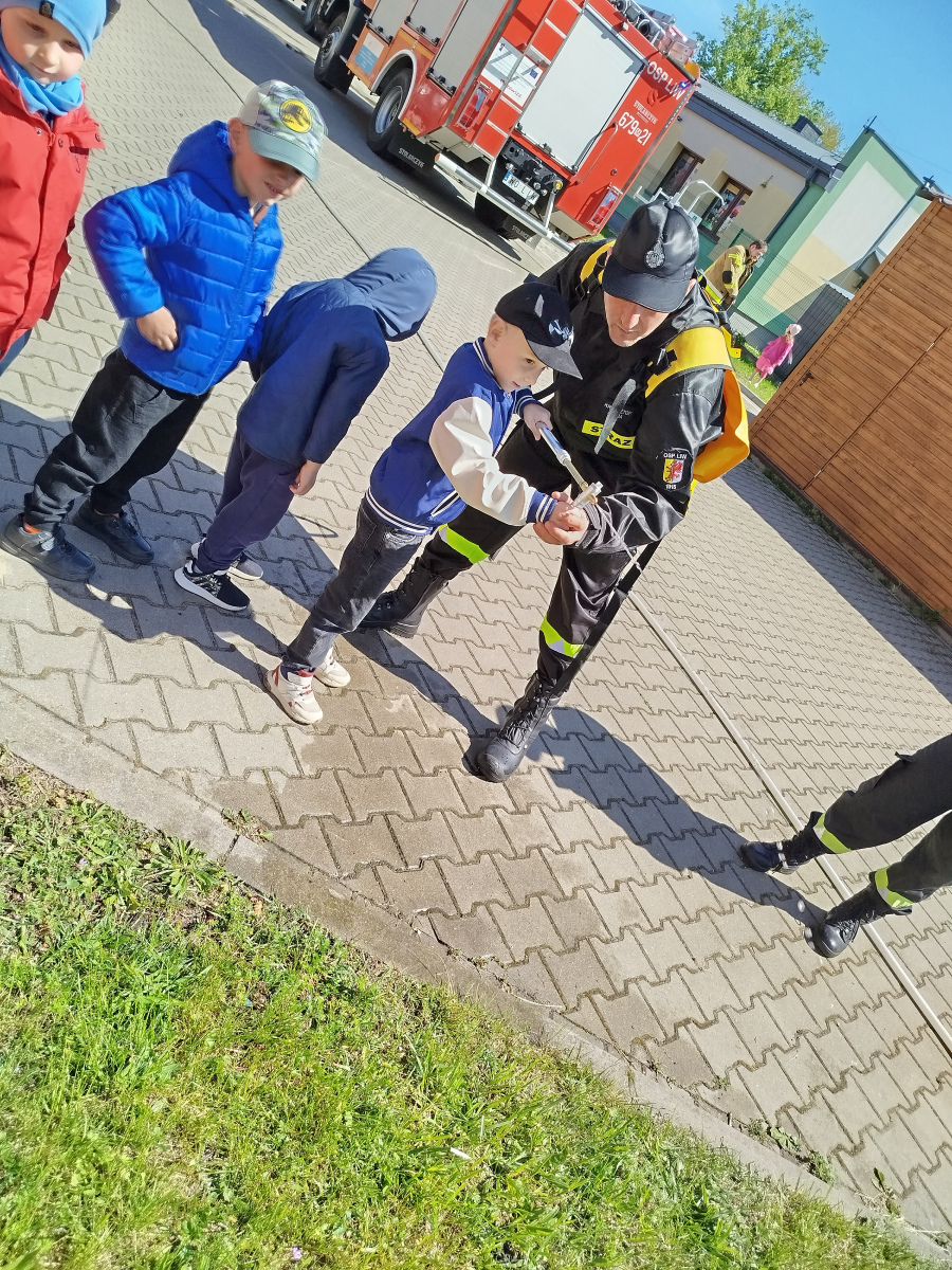 7 maja nasze przedszkolaki miały okazję spotkać się ze strażakami Ochotniczej Straży Pożarnej w Liwie. Przedszkolaki dowiedziały się o trudnej i niebezpiecznej pracy strażaków, która nie polega tylko na gaszeniu pożarów, ale również na udzielaniu pomocy ludziom podczas powodzi, usuwaniu skutków wypadków samochodowych oraz wichur. Dzieci miały okazję zobaczyć specjalistyczne wozy strażackie wraz z całym wyposażeniem, sprzęt gaśniczy i ratunkowy oraz strój w jaki ubierają się strażacy do akcji. Dużą atrakcją było przymierzanie hełmów oraz możliwość przejechania się samochodem strażackim. Wizyta w straży pożarnej to doskonała forma edukacyjnego uświadomienia dzieci o zasadach bezpieczeństwa oraz właściwego zachowania się w przypadku pożaru, wypadku i innych zagrożeń. Dziękujemy strażakom za miłe i pouczające spotkanie. Życzymy wszystkim dalszej efektywnej służby i skutecznej realizacji nawet najtrudniejszych zadań.