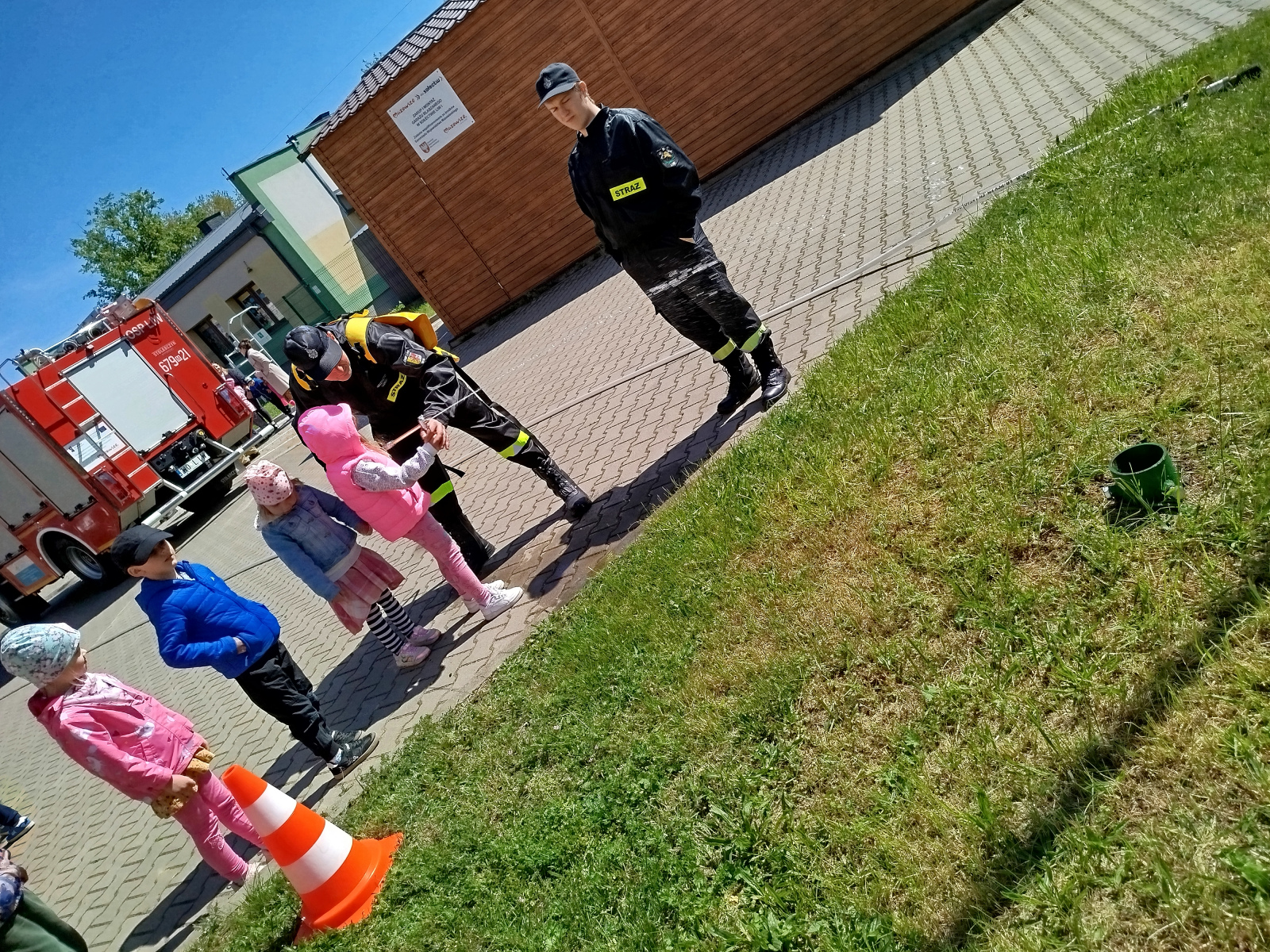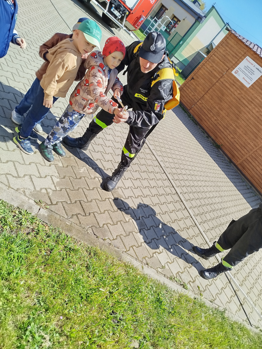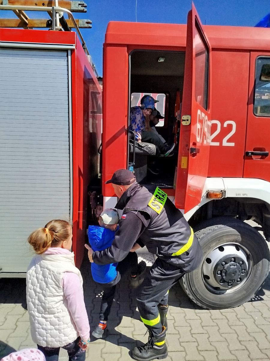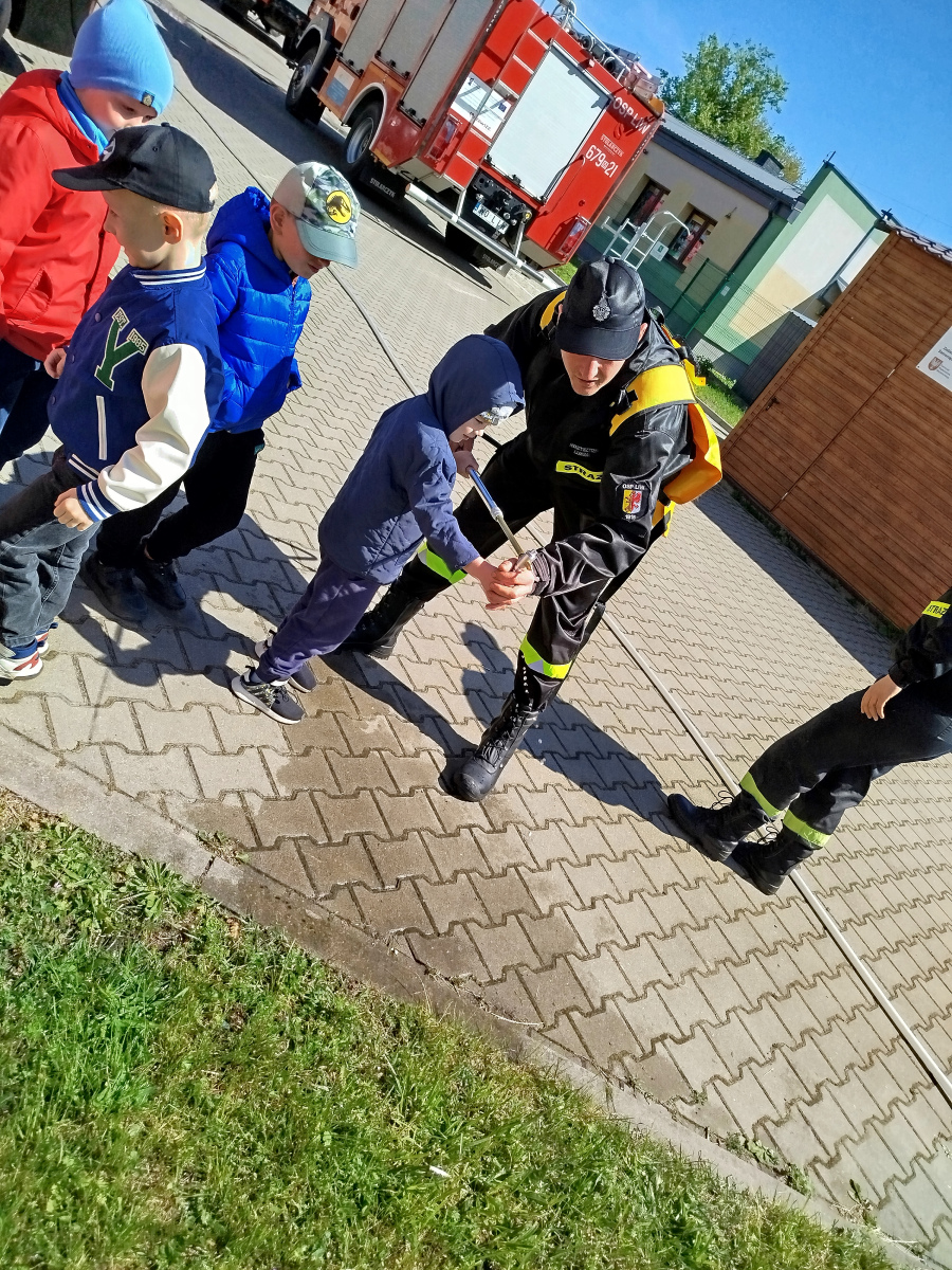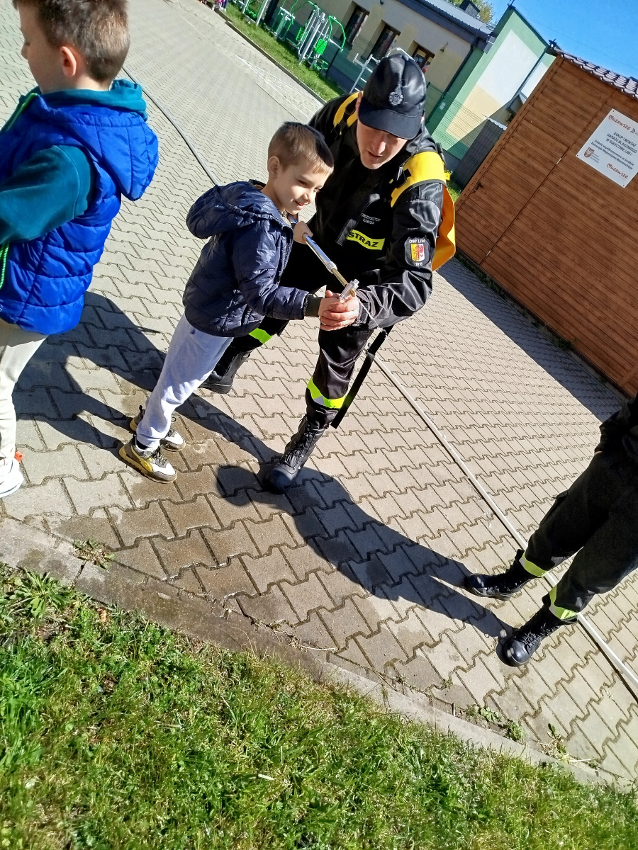 7 maja nasze przedszkolaki miały okazję spotkać się ze strażakami Ochotniczej Straży Pożarnej w Liwie. Przedszkolaki dowiedziały się o trudnej i niebezpiecznej pracy strażaków, która nie polega tylko na gaszeniu pożarów, ale również na udzielaniu pomocy ludziom podczas powodzi, usuwaniu skutków wypadków samochodowych oraz wichur. Dzieci miały okazję zobaczyć specjalistyczne wozy strażackie wraz z całym wyposażeniem, sprzęt gaśniczy i ratunkowy oraz strój w jaki ubierają się strażacy do akcji. Dużą atrakcją było przymierzanie hełmów oraz możliwość przejechania się samochodem strażackim. Wizyta w straży pożarnej to doskonała forma edukacyjnego uświadomienia dzieci o zasadach bezpieczeństwa oraz właściwego zachowania się w przypadku pożaru, wypadku i innych zagrożeń. Dziękujemy strażakom za miłe i pouczające spotkanie. Życzymy wszystkim dalszej efektywnej służby i skutecznej realizacji nawet najtrudniejszych zadań.